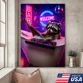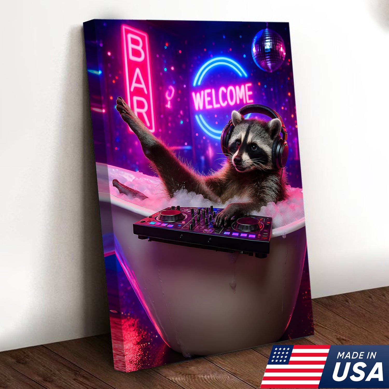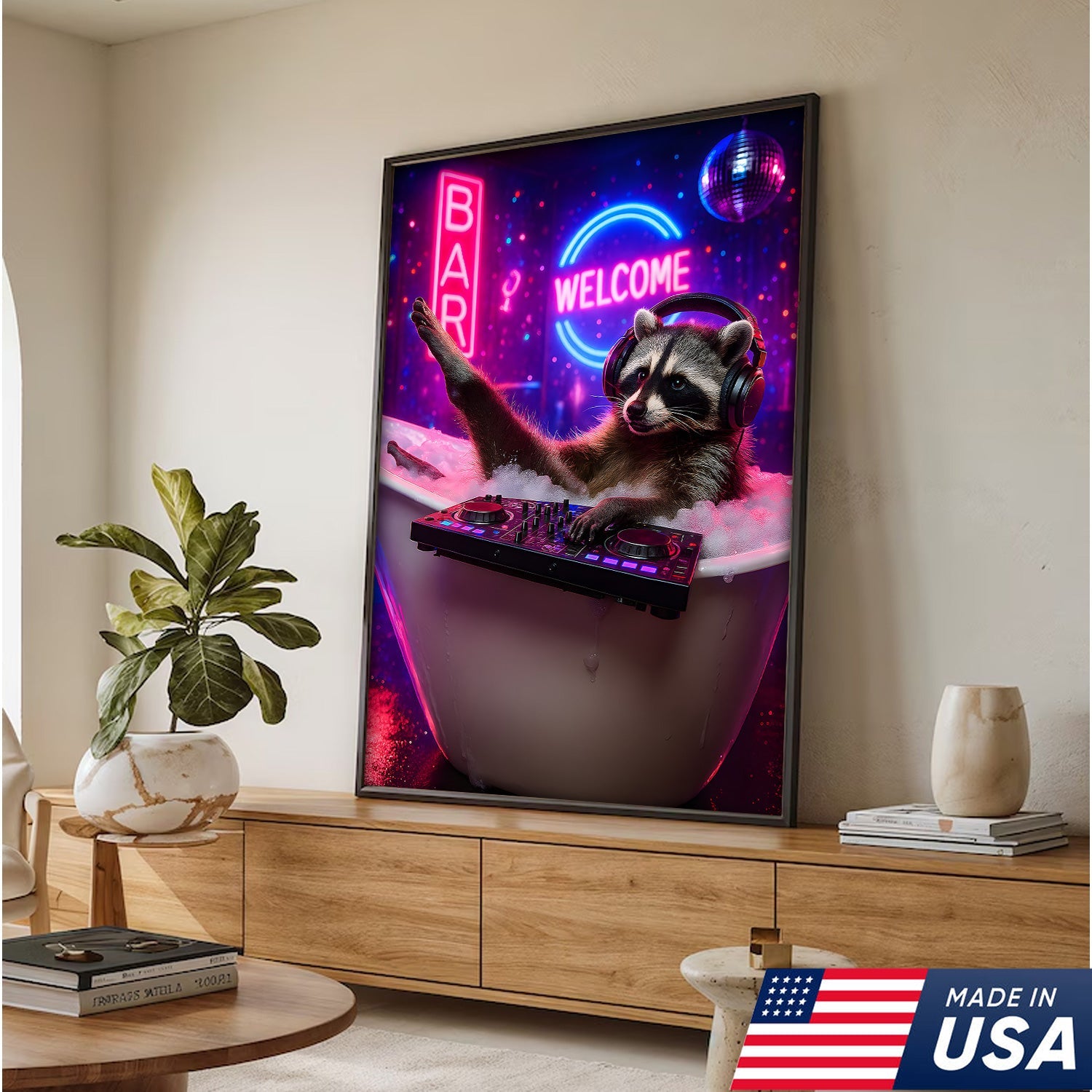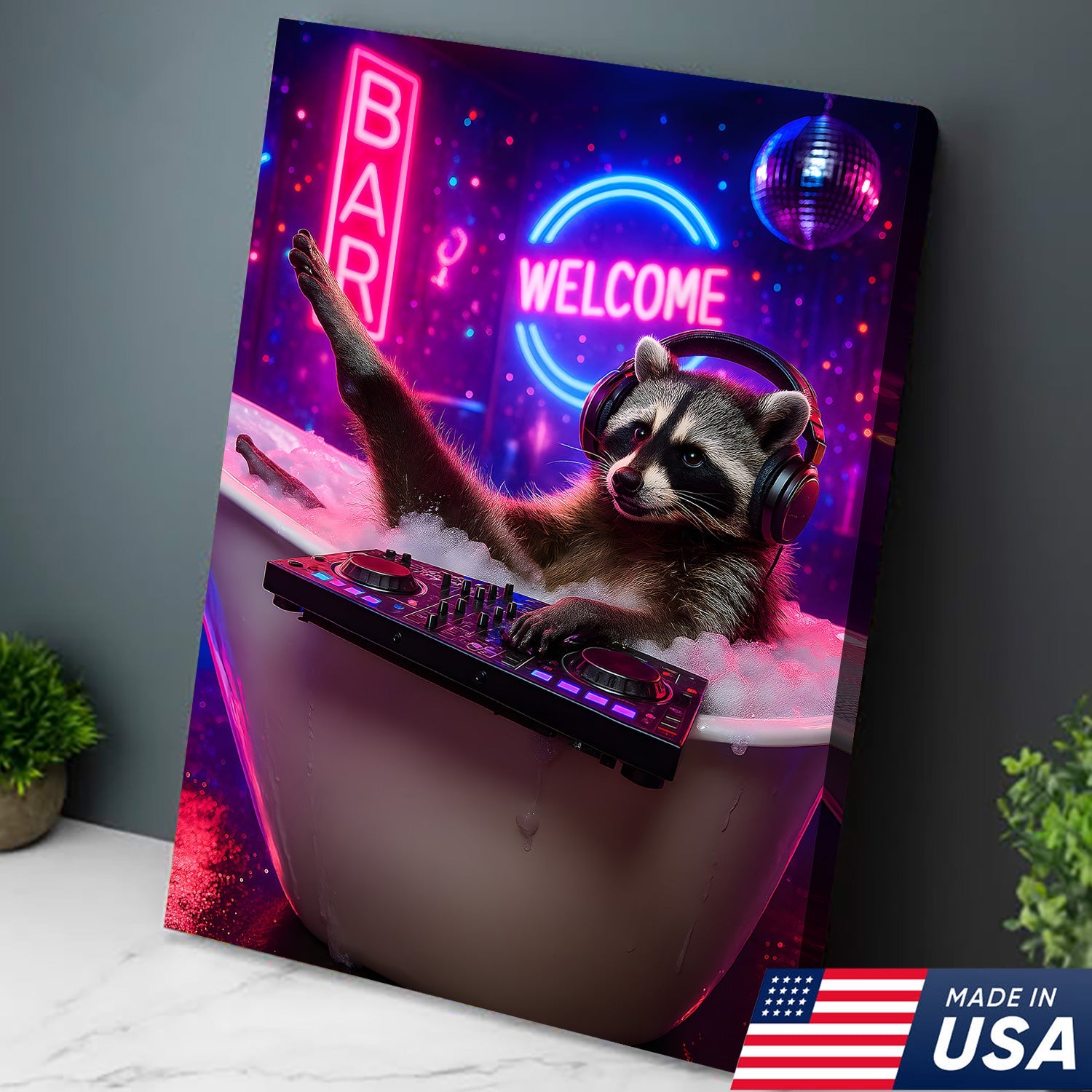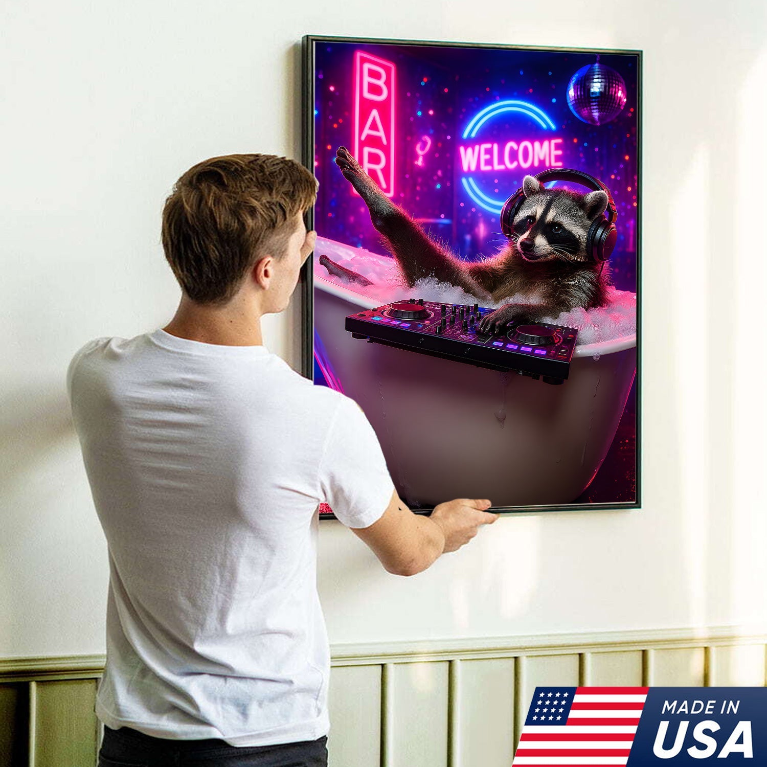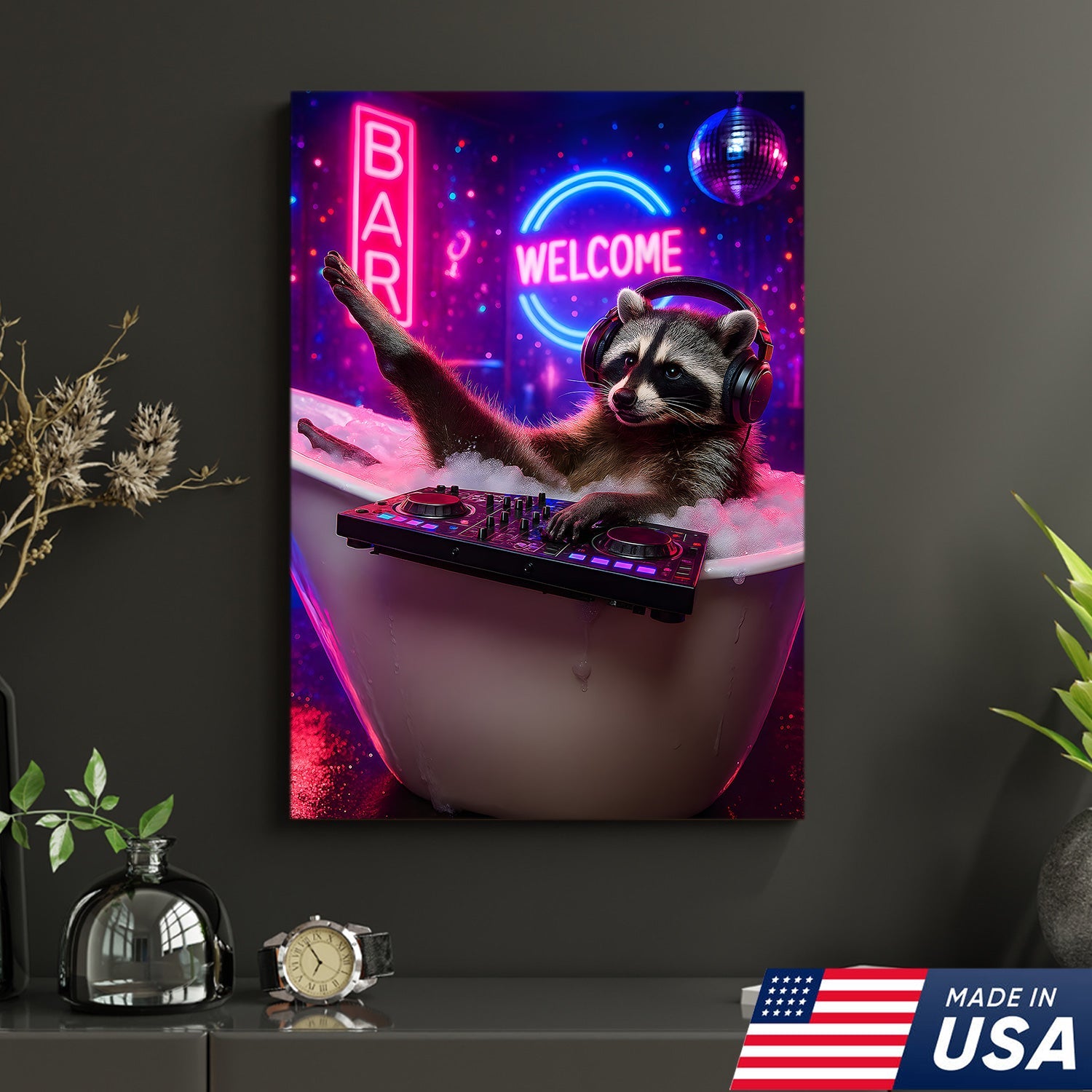 Funny DJ Raccoon Wall Art – Unique Gift for Hunters, Wildlife Lovers & Cabin Bar Decor