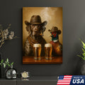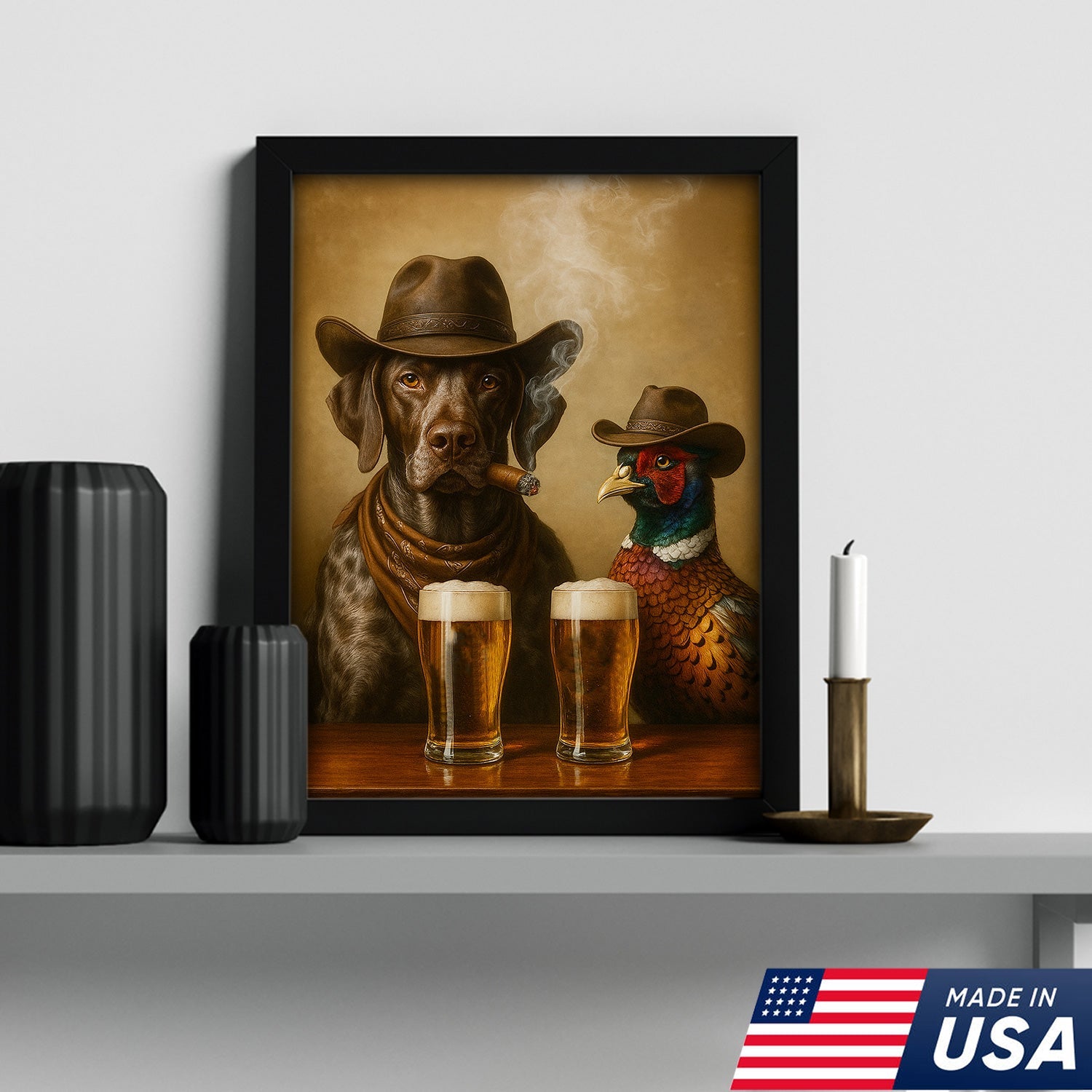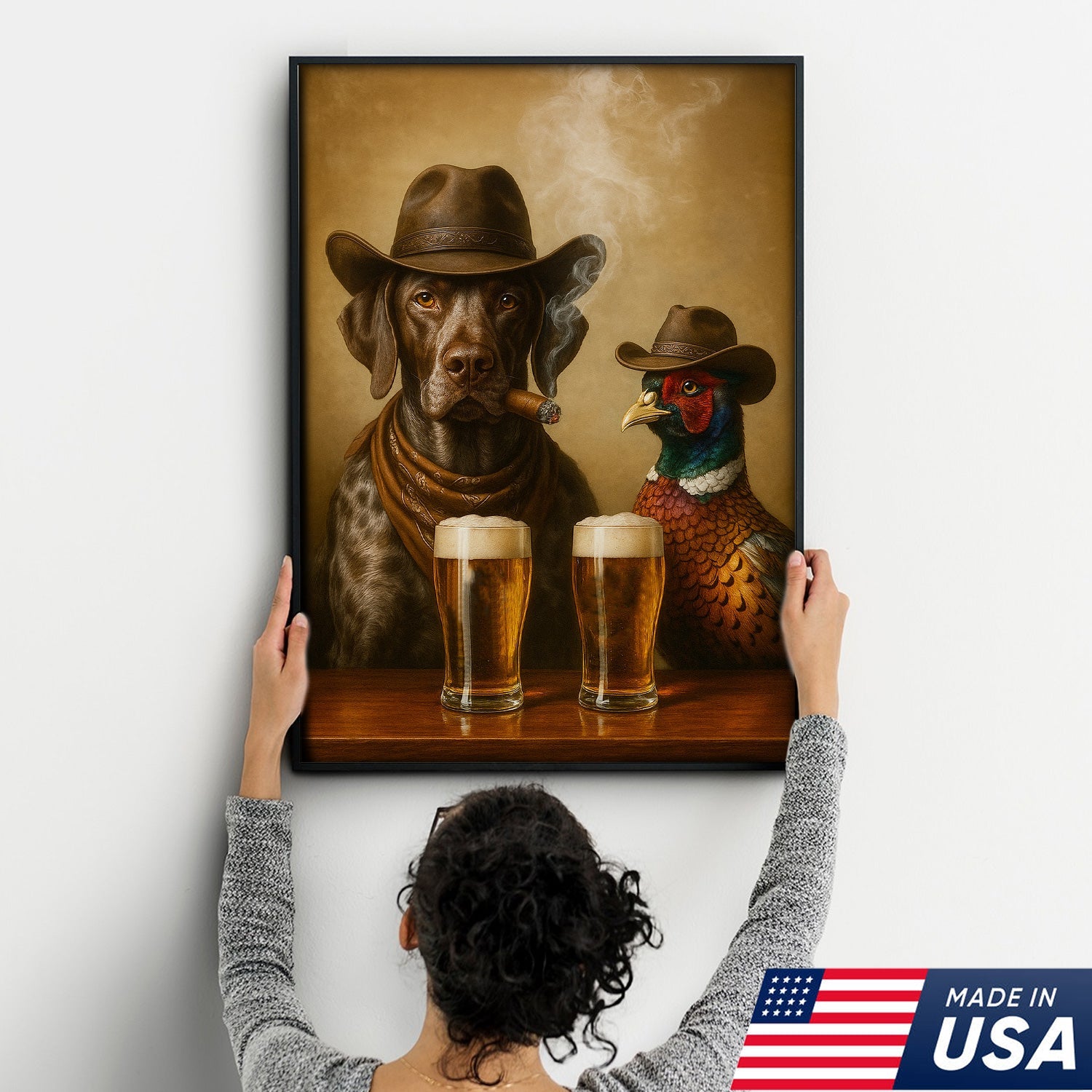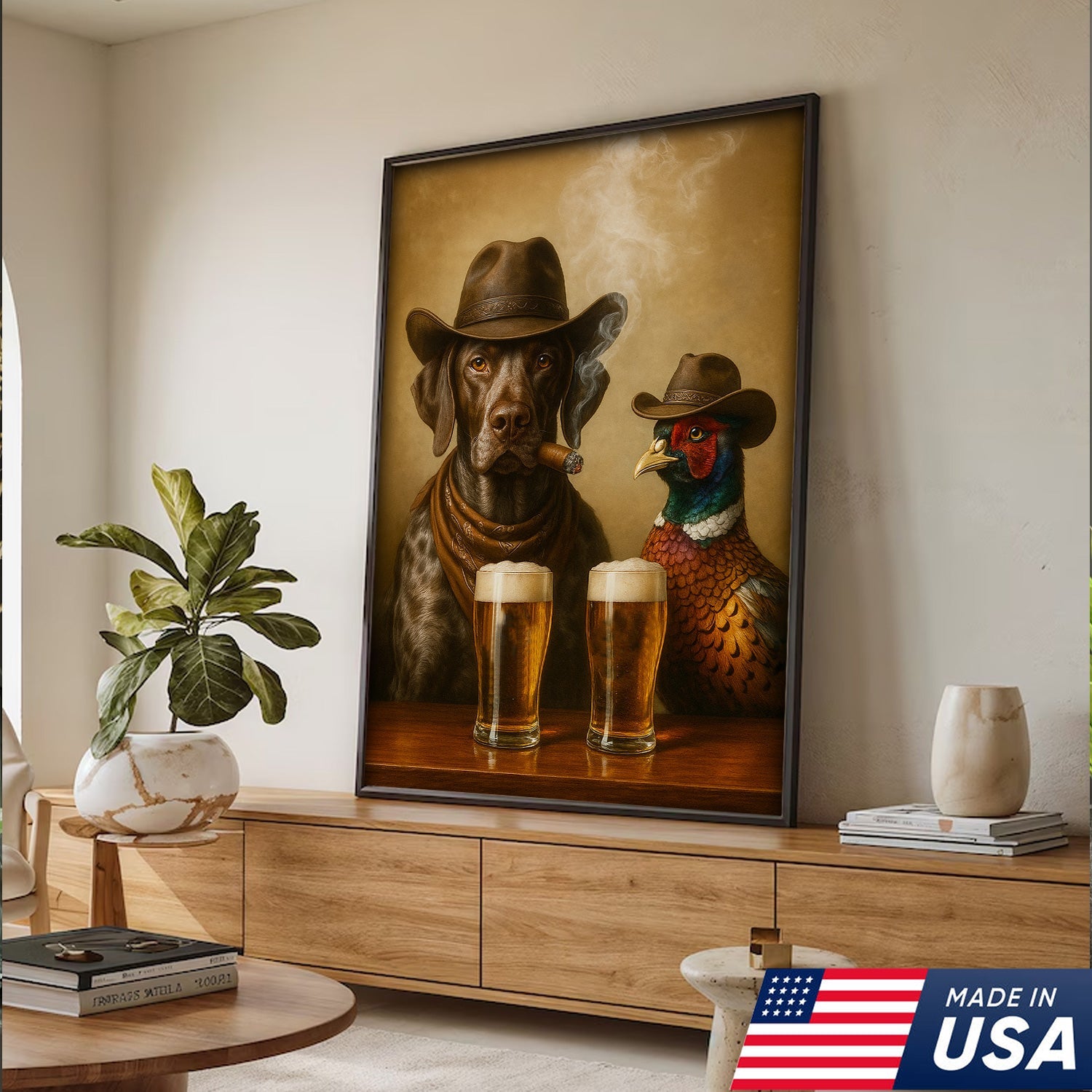Funny Dog & Pheasant Beer Canvas Wall Art – Cowboy Hunting Bar Decor Gift for Hunters & Outdoorsmen