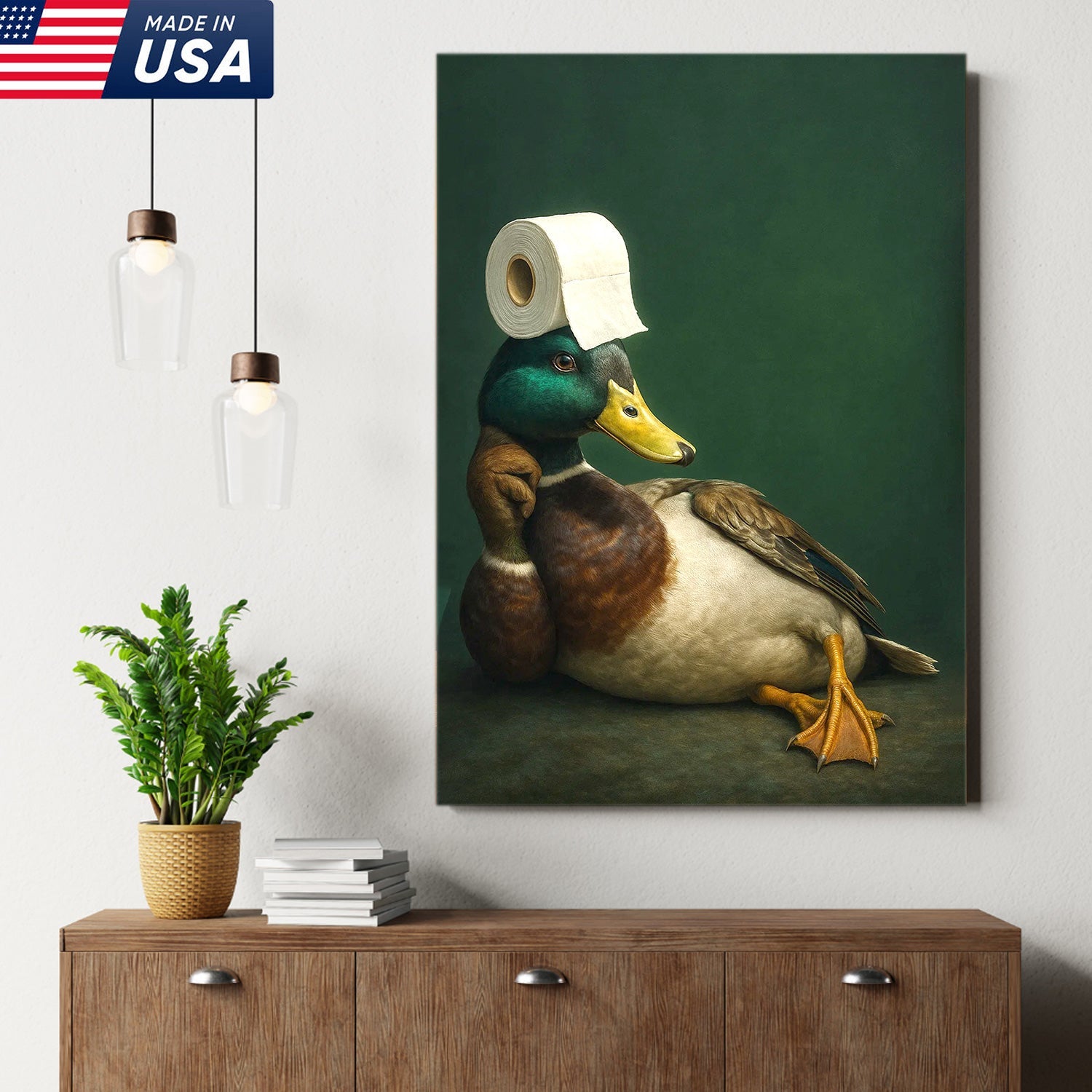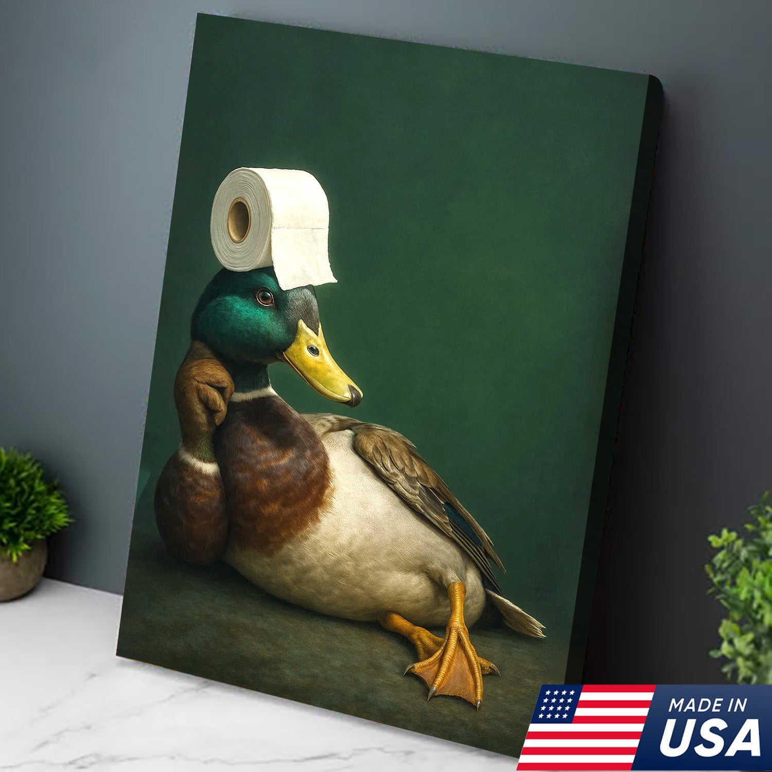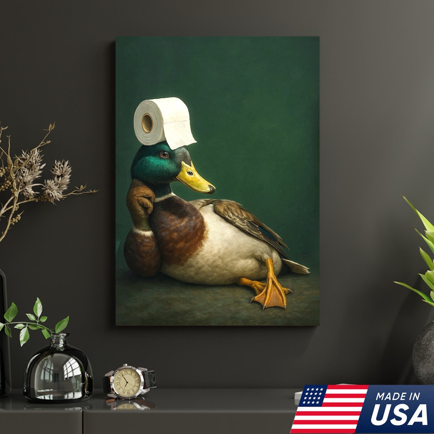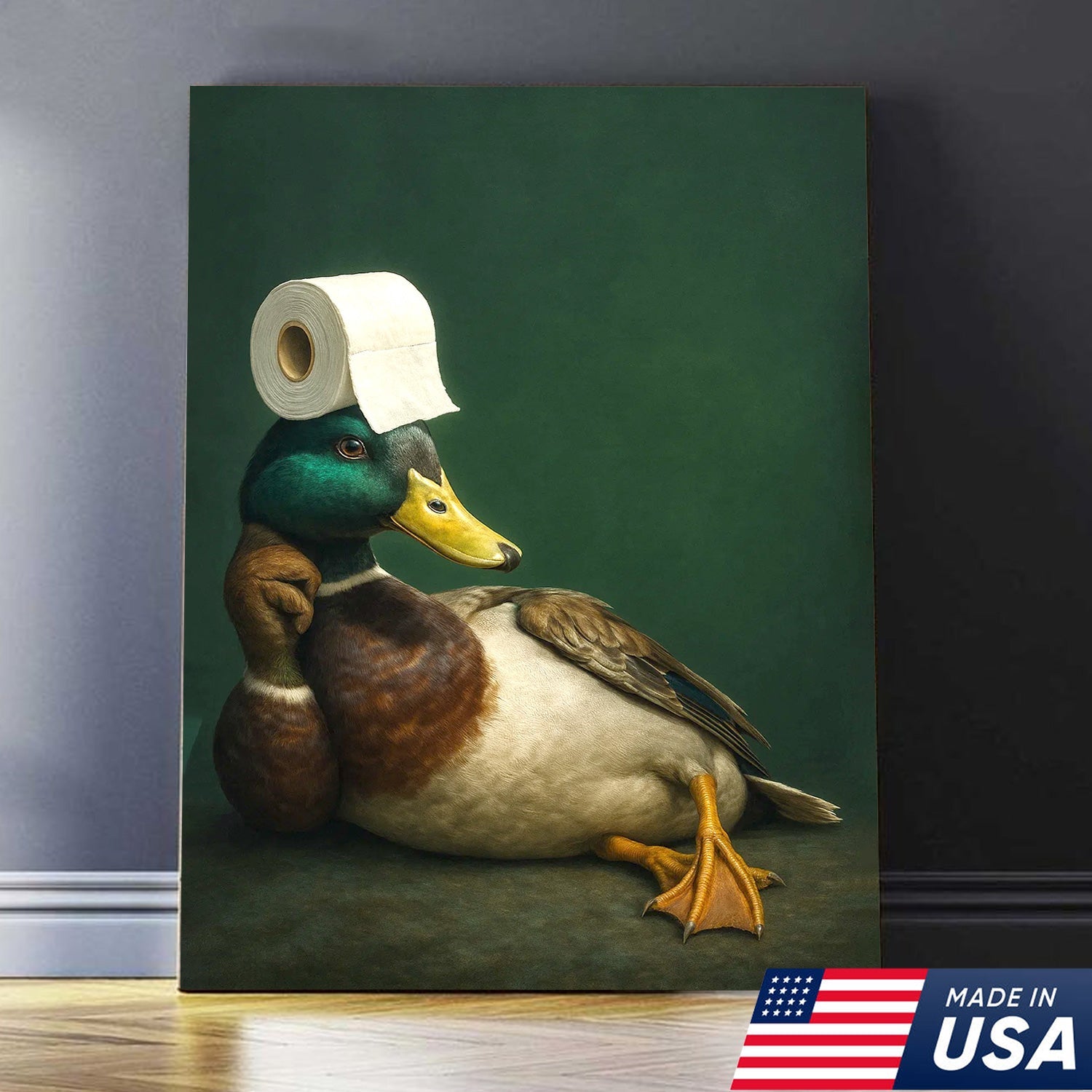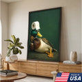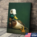Funny Duck Bathroom Canvas Wall Art – Quirky Rustic Lodge Decor – Mallard Humor Gift Idea