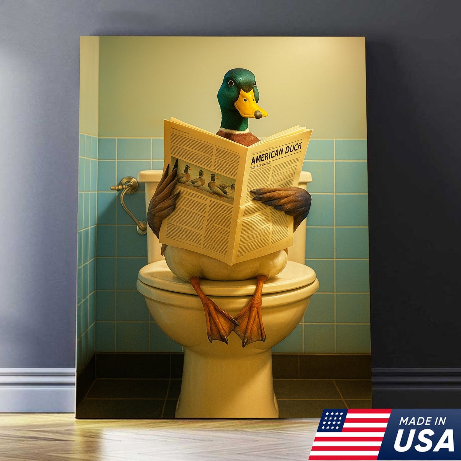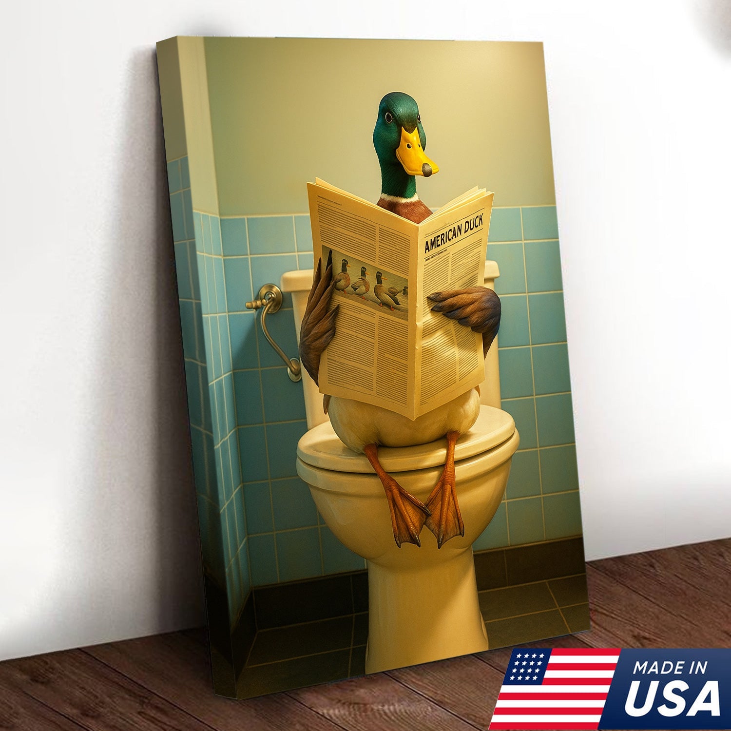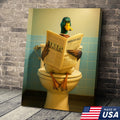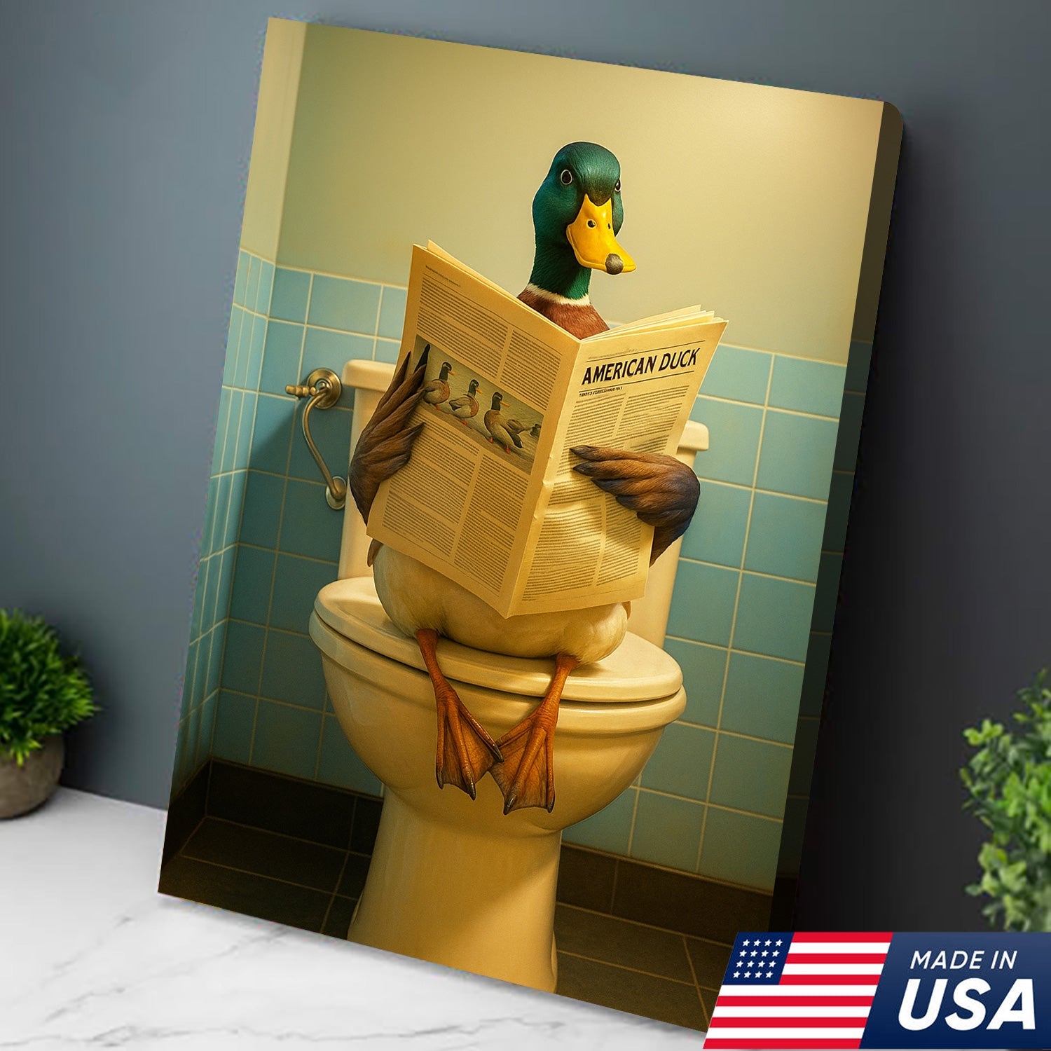 Funny Duck Bathroom Wall Art Canvas – Mallard Reading Newspaper Canvas Decor