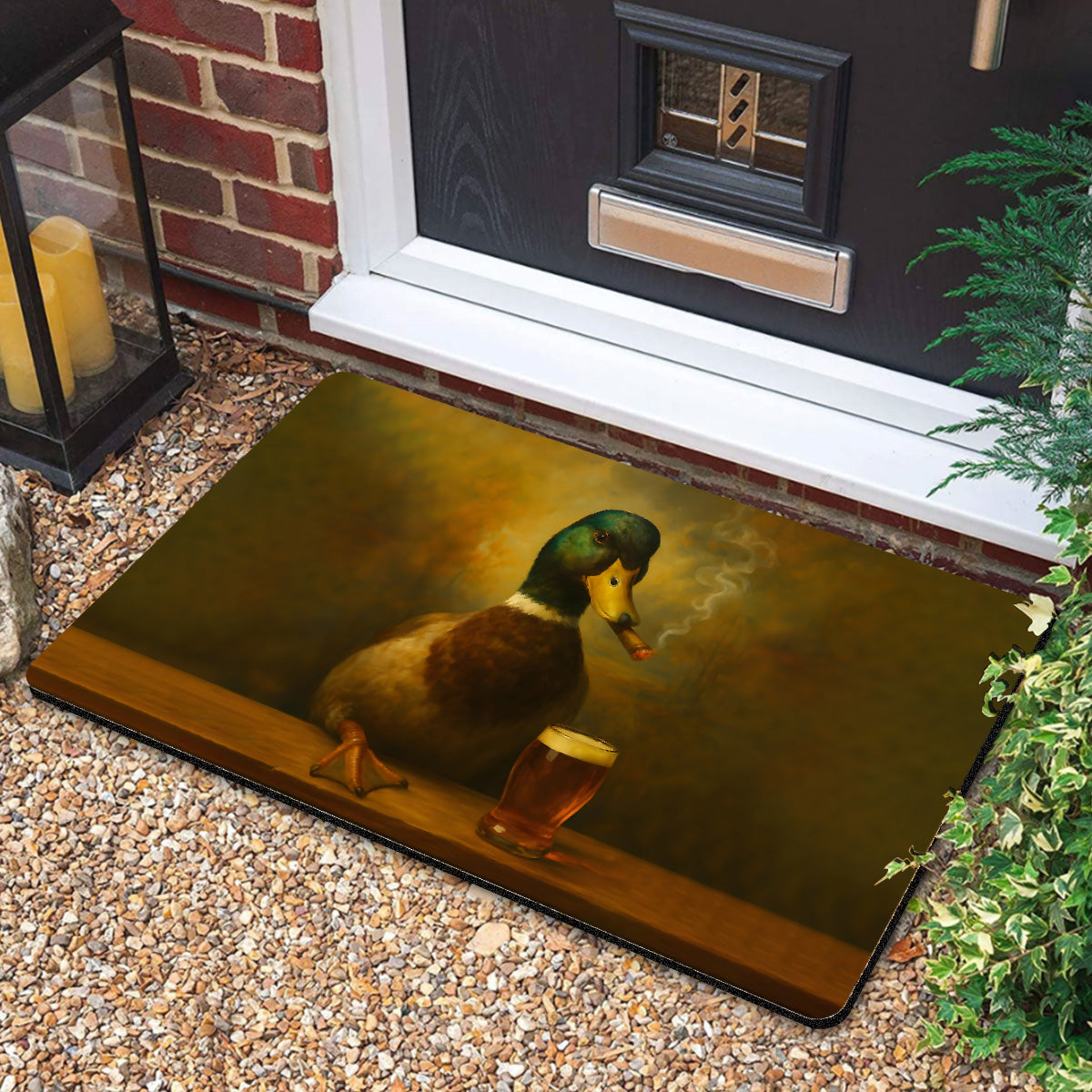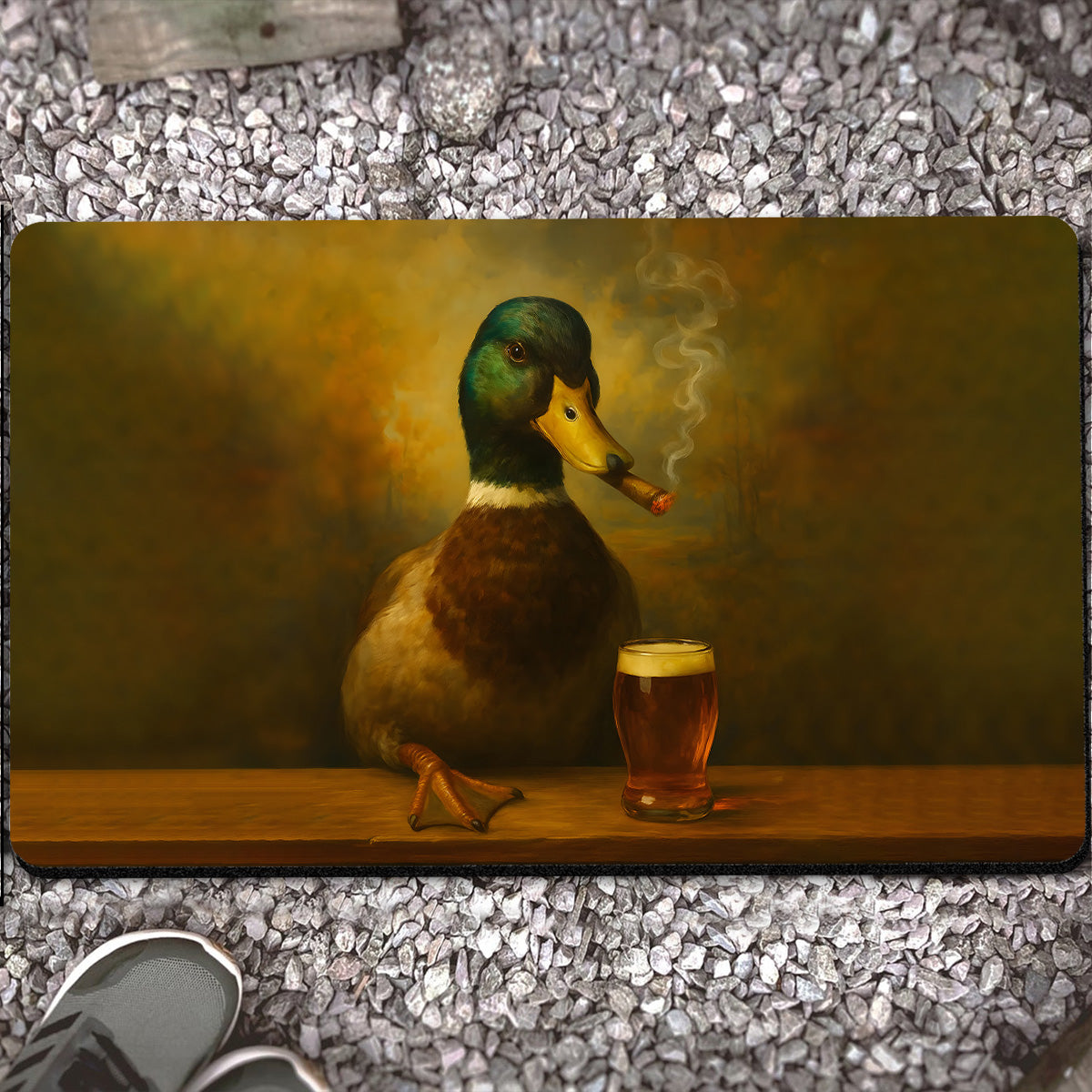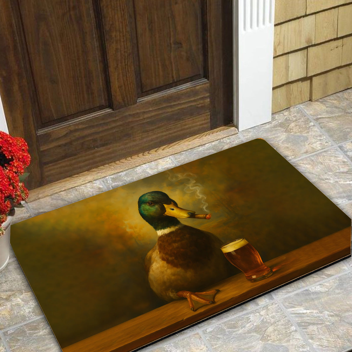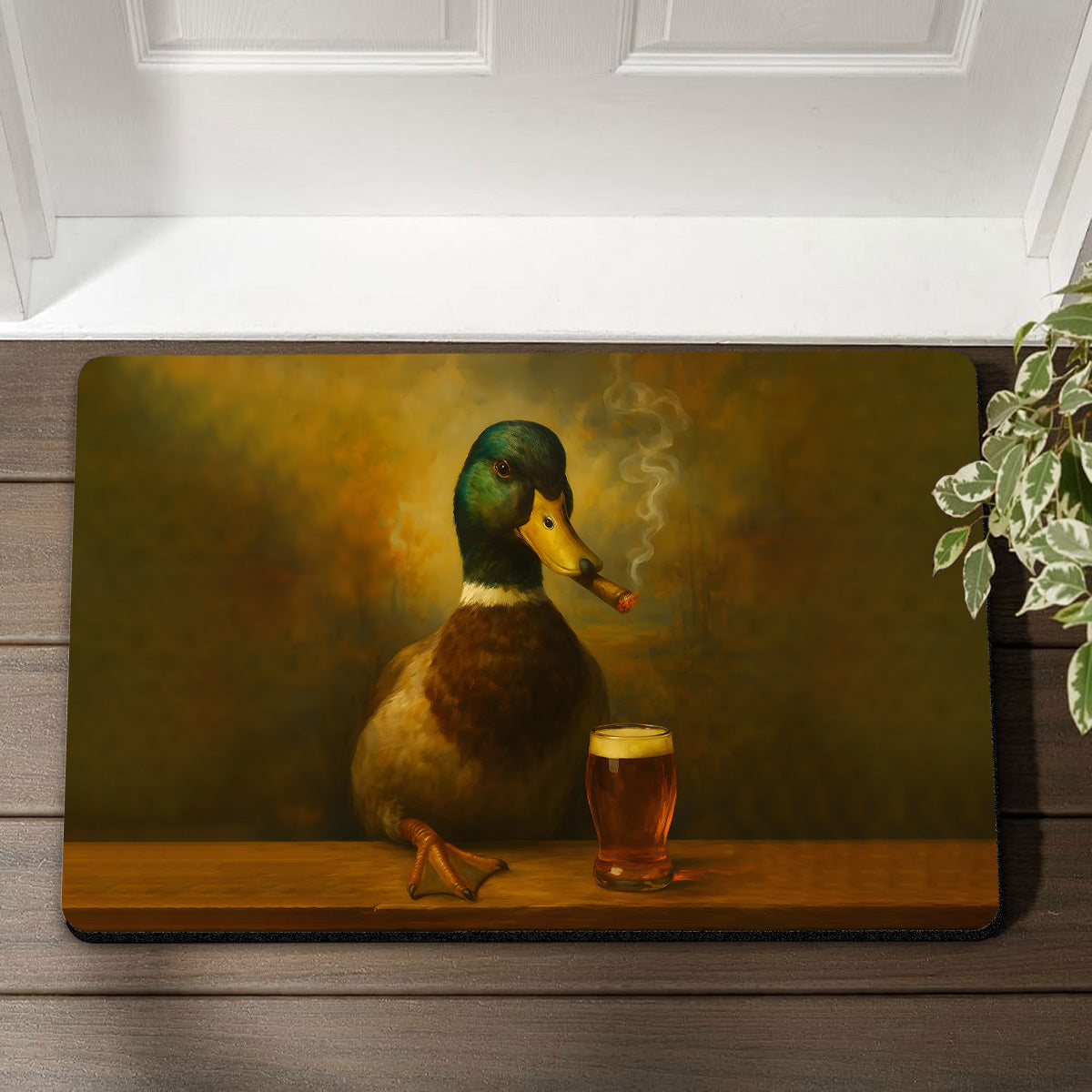 Funny Duck Barware Doormat – Hunting Lodge Rug with Drinking Glasses & Smoking-related Decor, Outdoor Cabin Decor Gift