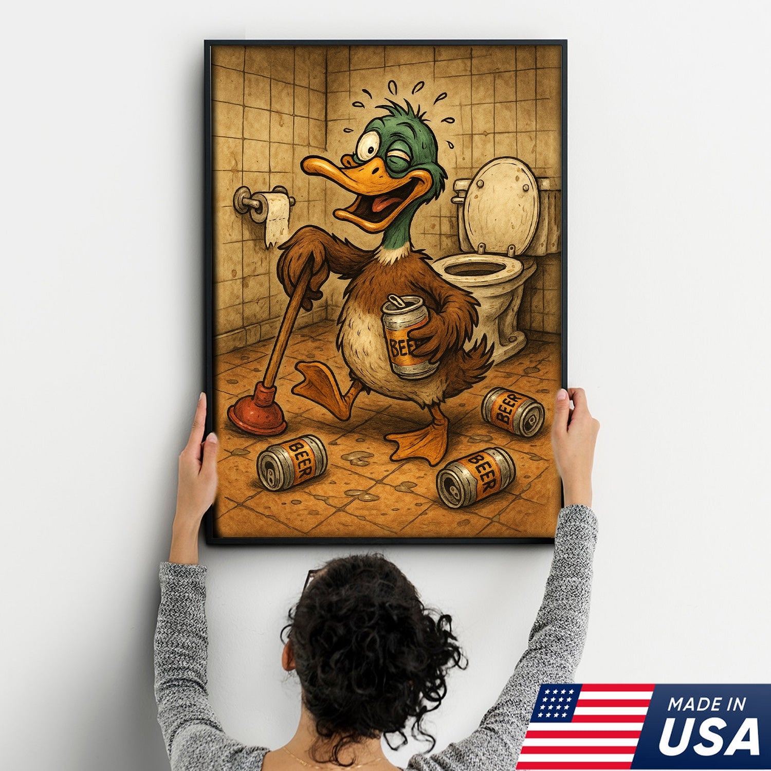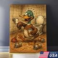 Funny Duck Canvas Wall Art – Hilarious Bathroom Decor with Soda Cans and Plunger for Rustic Cabin & Home