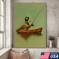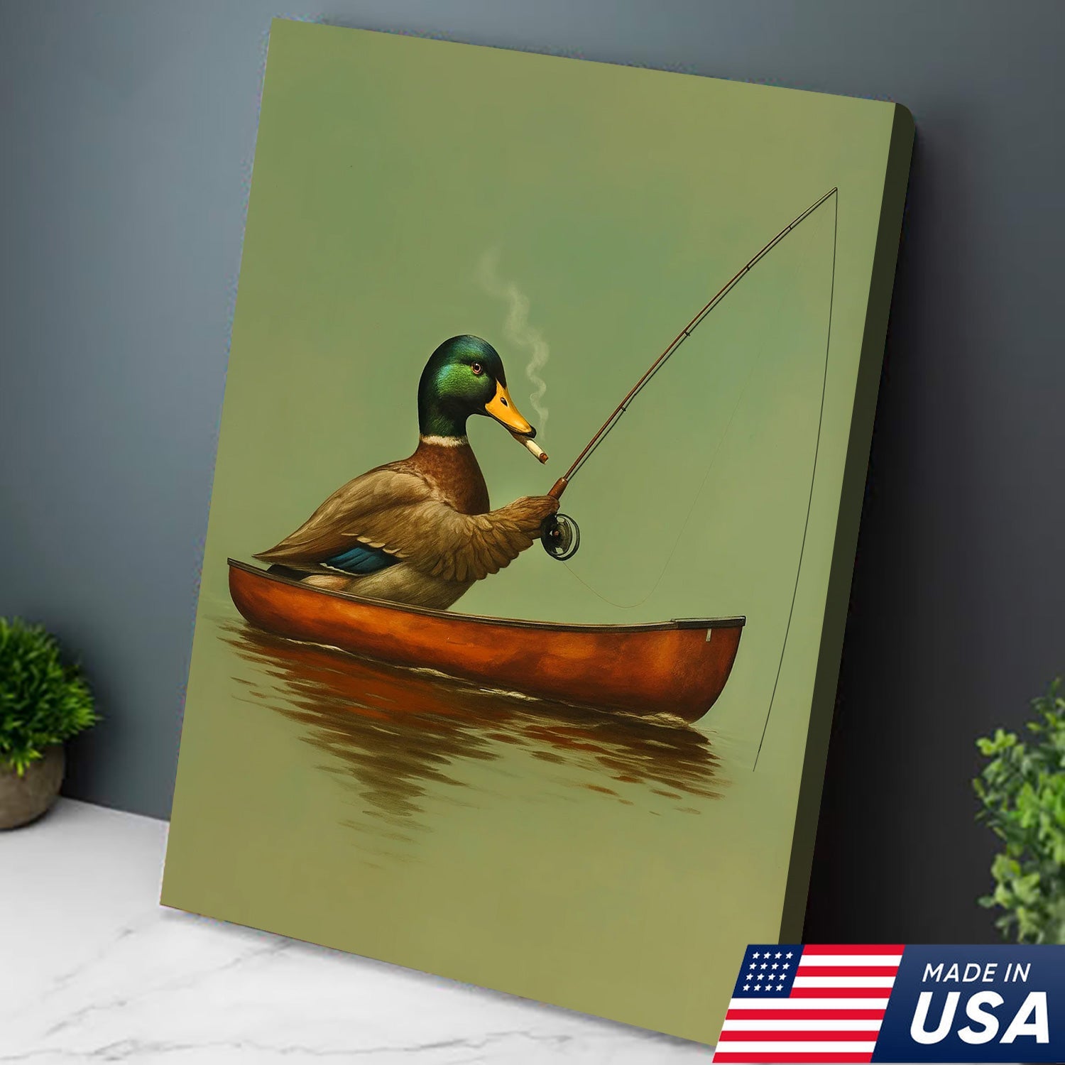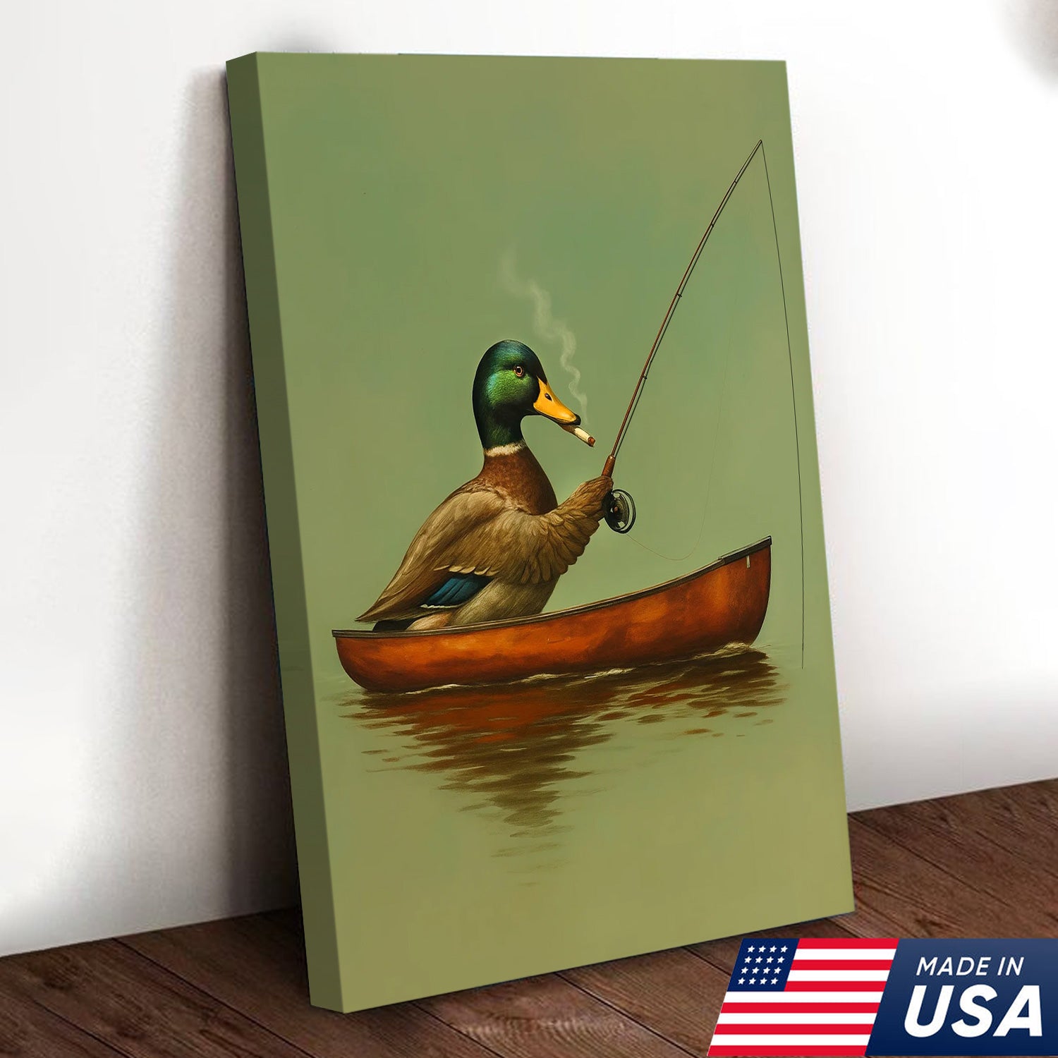 Funny Duck Fishing Canvas, Funny Hunting Wall Art for Fisherman & Hunter Gift Decor
