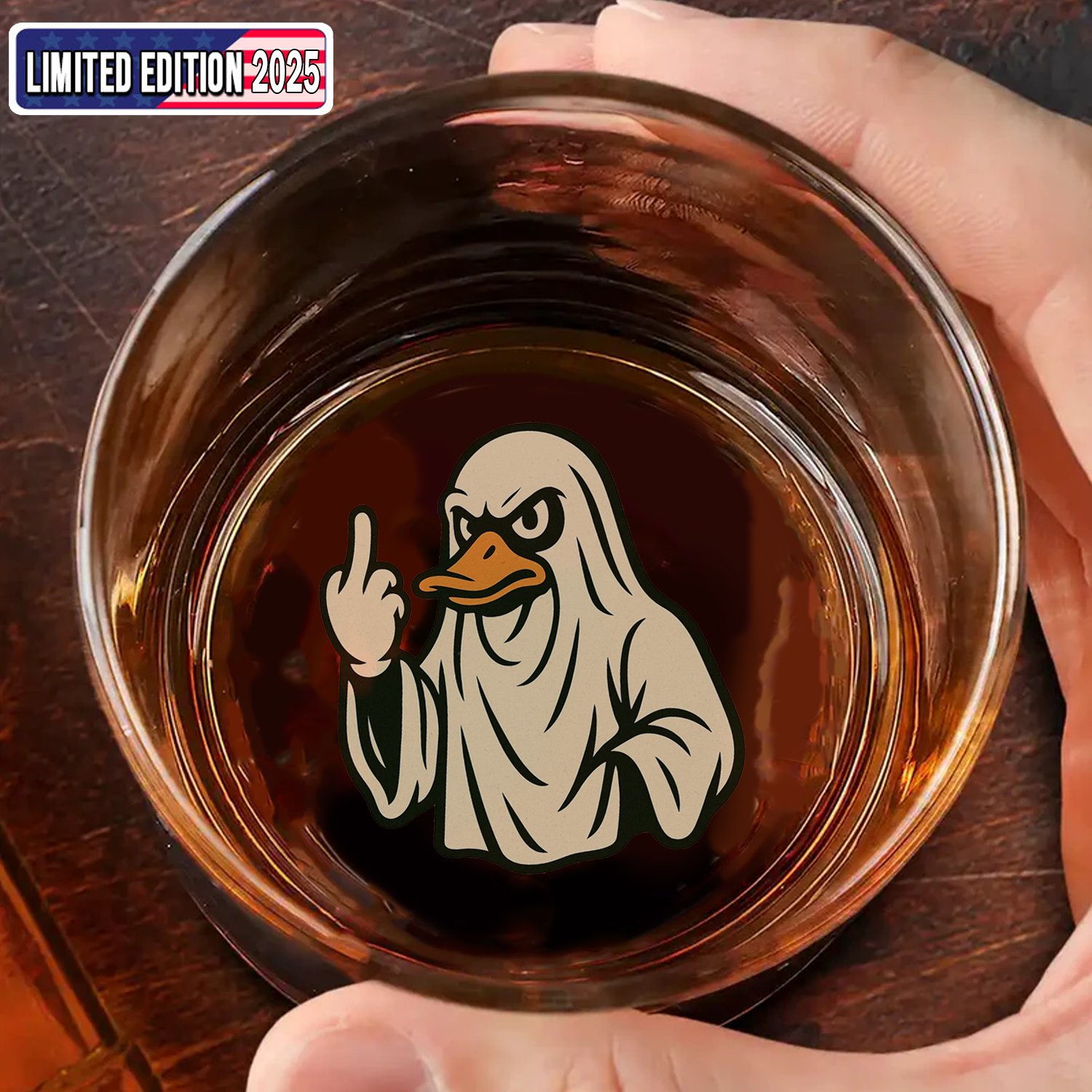 Funny Duck Halloween Whiskey Glass – Unique Drinking Gift for Hunters, Men, and Drinking Lovers