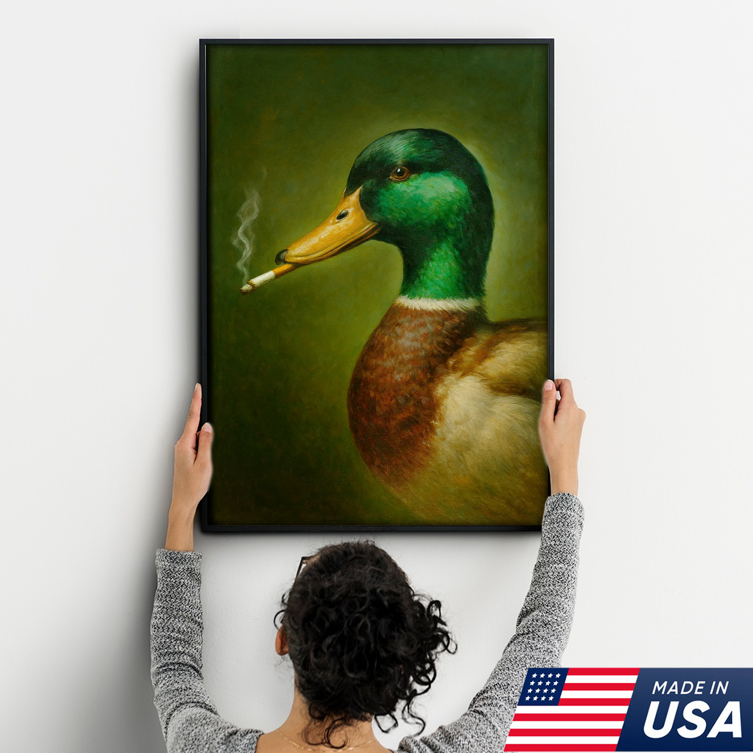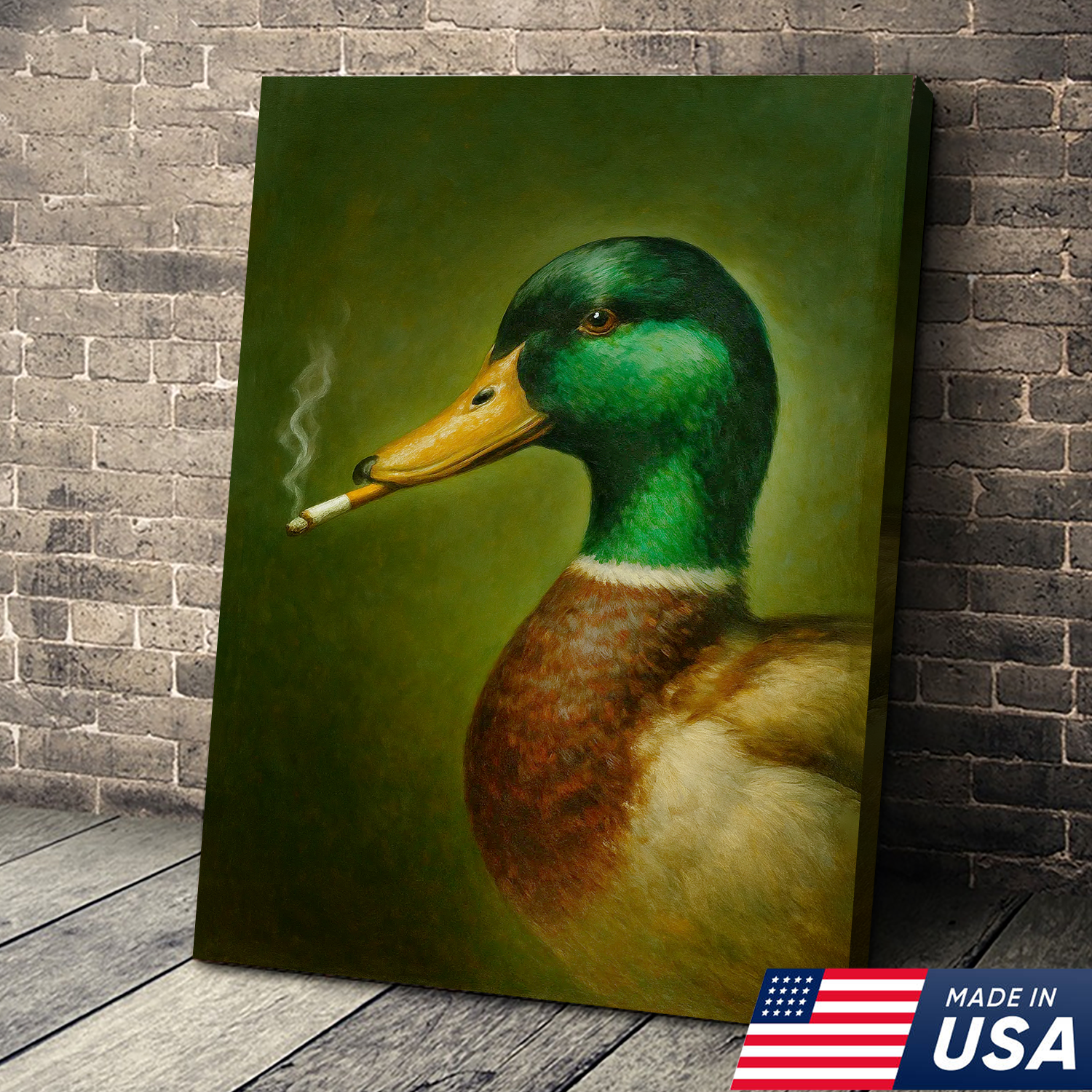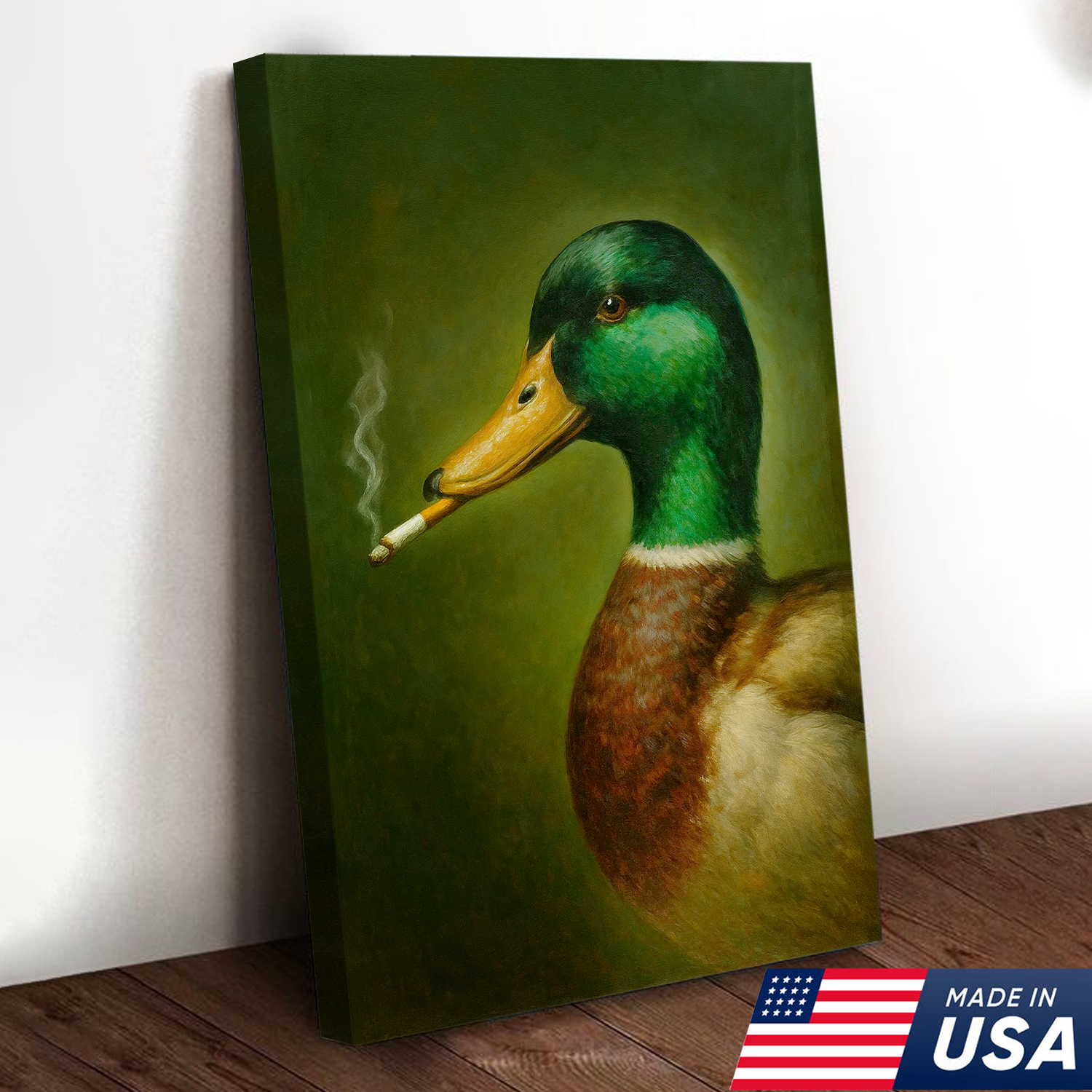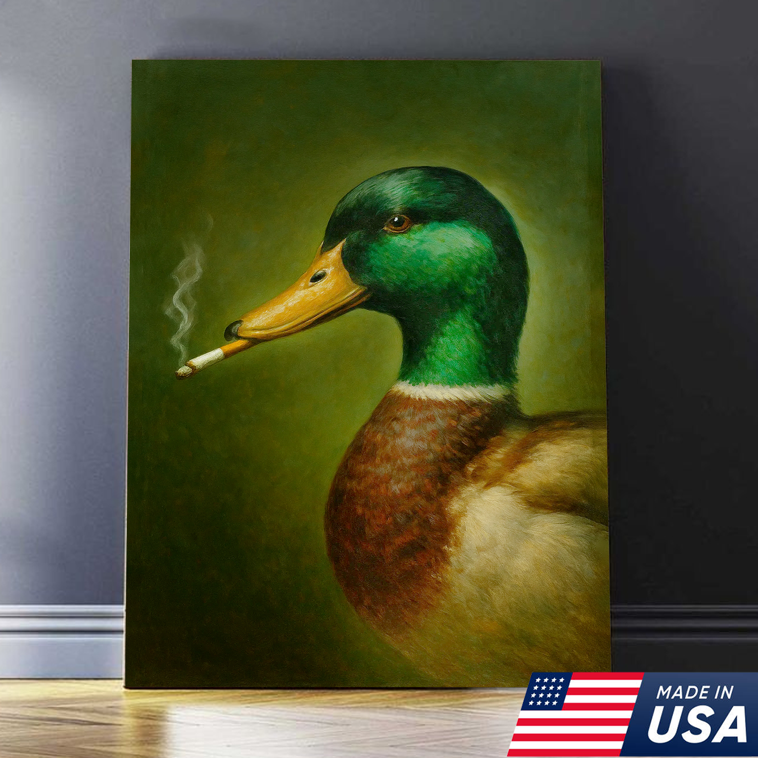Funny Duck Smoking Canvas Wall Art, Rustic Hunting Lodge Decor, Gift for Hunters & Outdoorsmen
