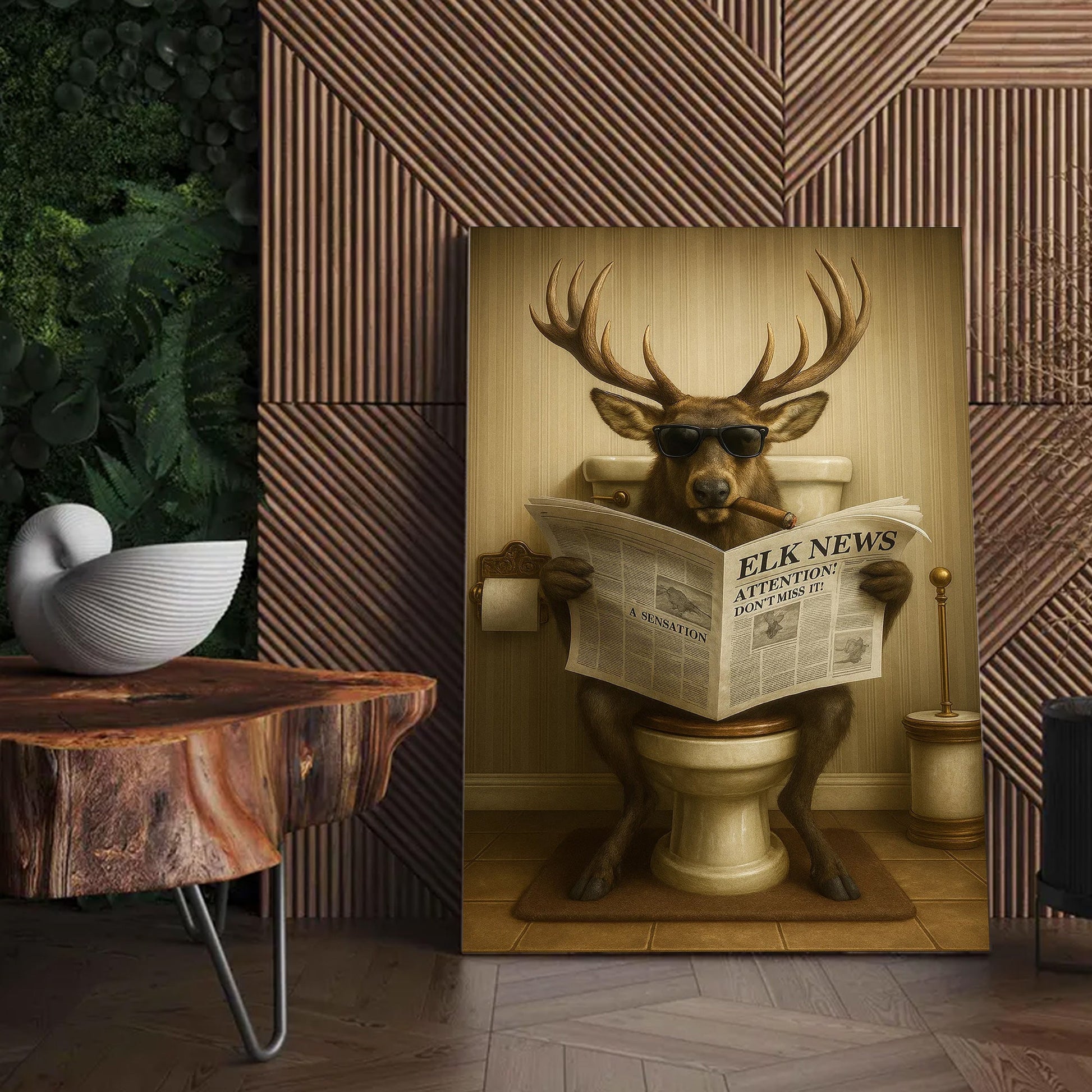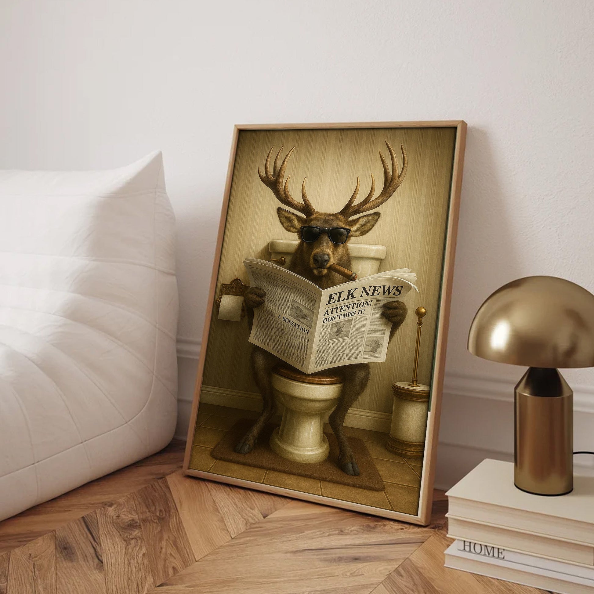 Funny Elk Bathroom Wall Art – Hunting Lodge Decor for Men - Wildlife Animal Poster - Unique Dad Gift for Hunters & Outdoorsmen