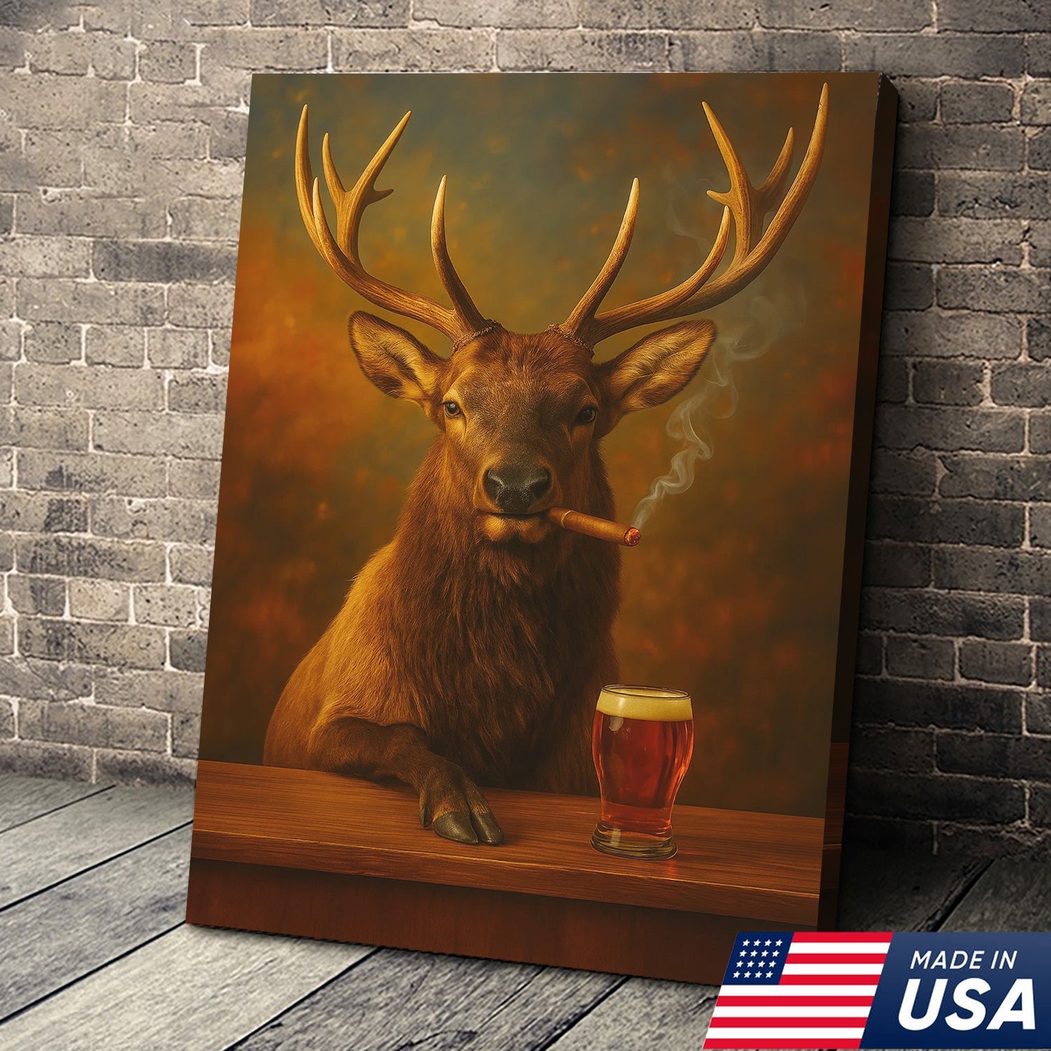 Funny Elk Drinking Cocktail Glasses & Smoking Canvas Wall Art - Rustic Hunting Perfect Gift for Hunters & Cocktail Glasses Lovers