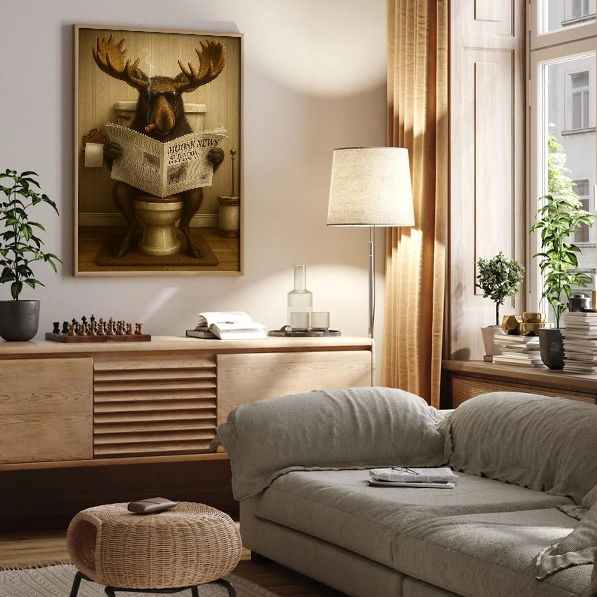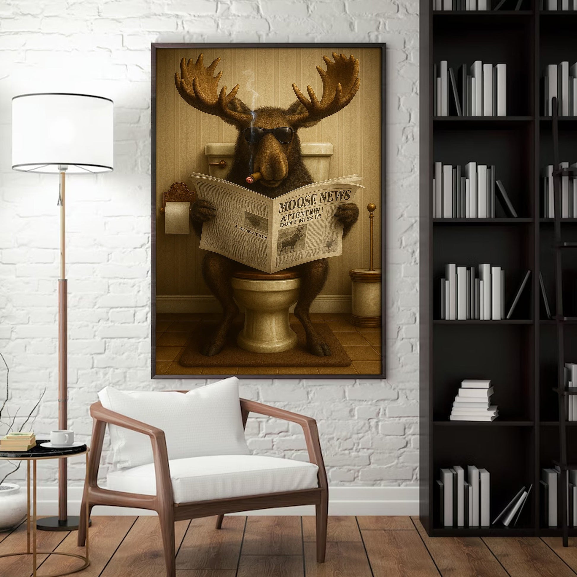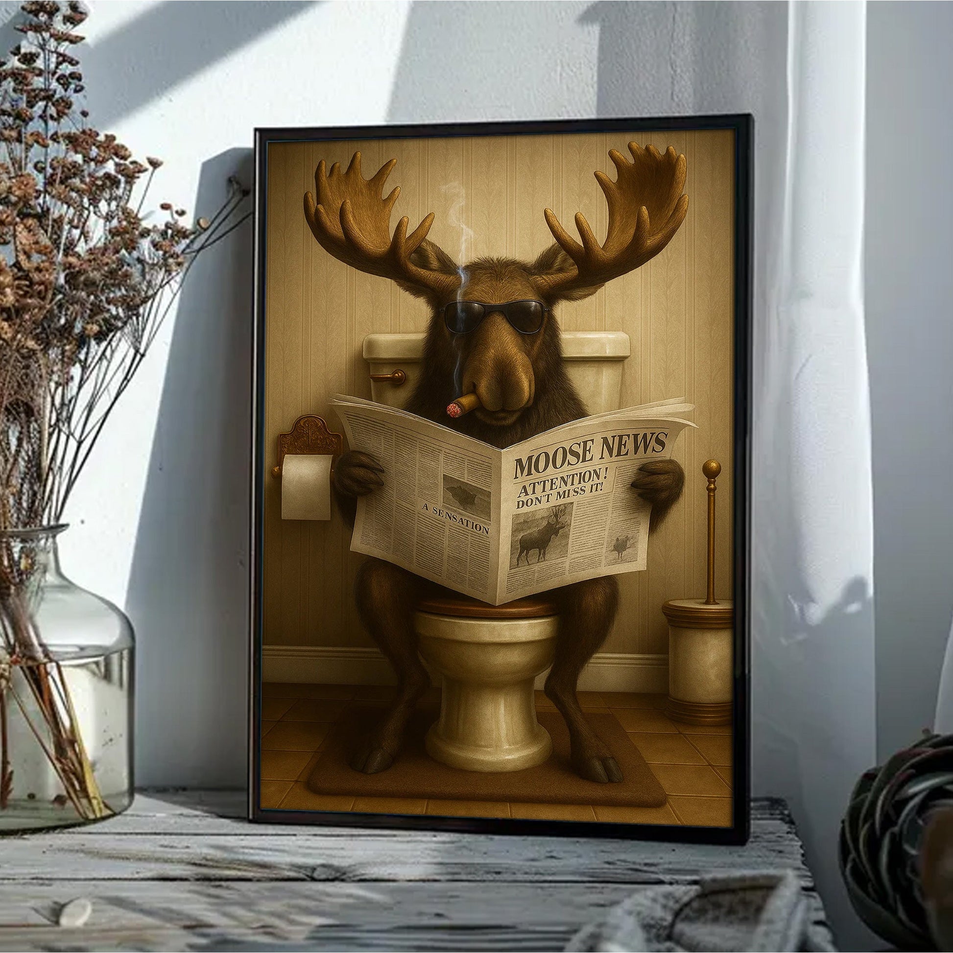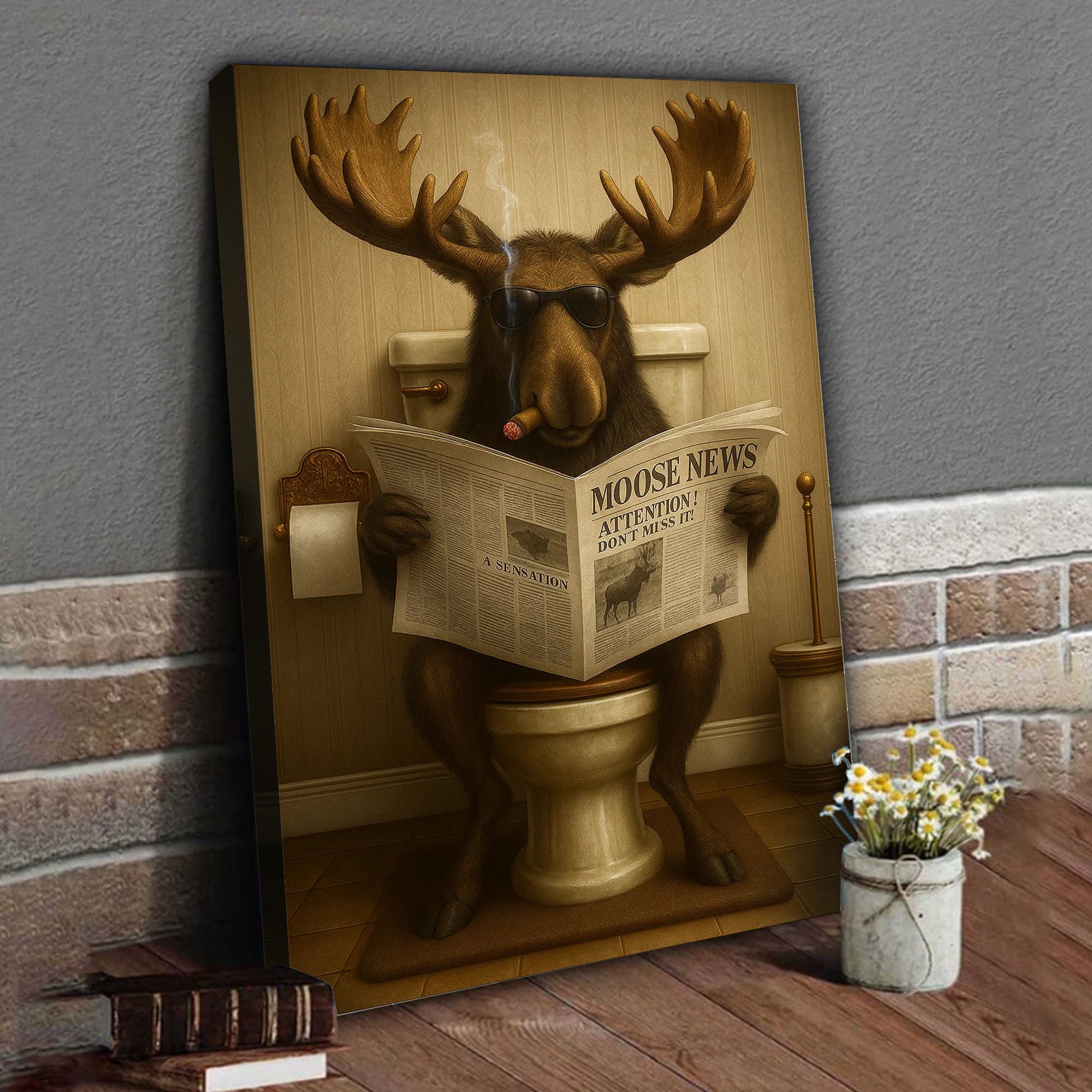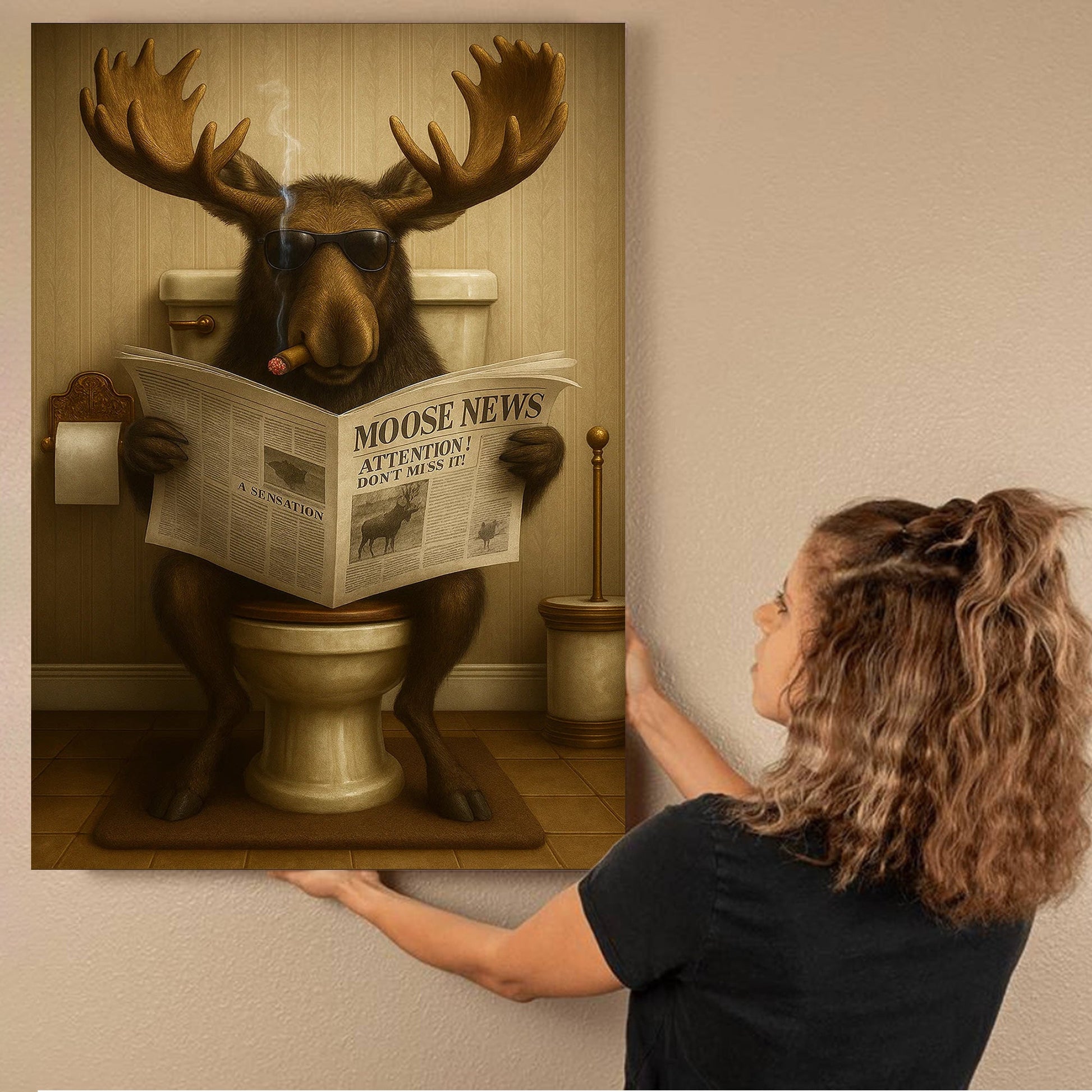 Funny Elk Hunting Lodge Moose Bathroom Canvas Wall Art – Wildlife Animal Poster - Unique Gift for Dad, Hunters & Outdoorsmen