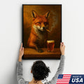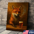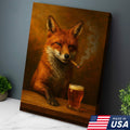 Funny Fox Smoking with Cocktail Glasses Canvas – Rustic Hunting Lodge Wall Art