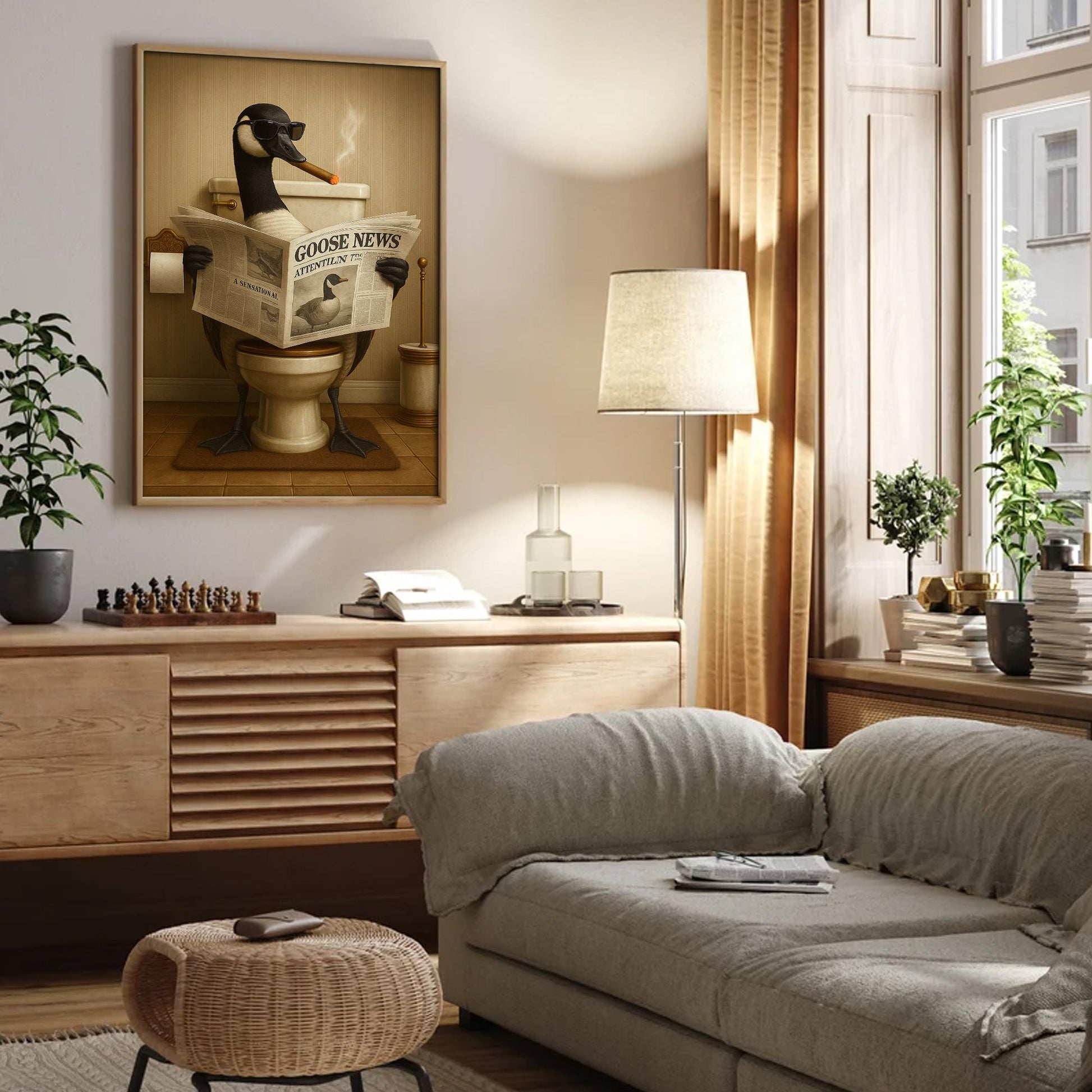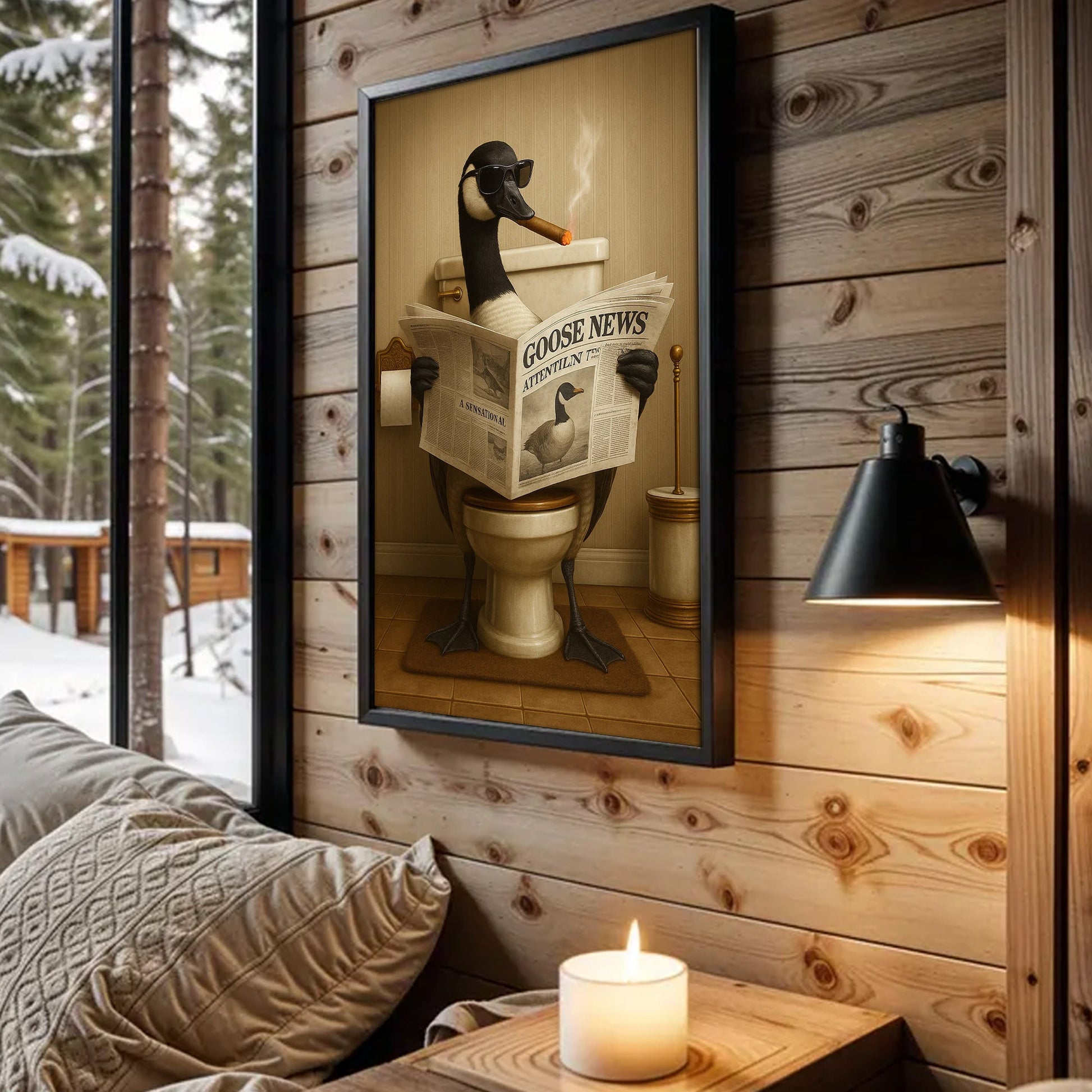 Funny Goose Read Newspaper Bathroom Canvas Wall Art – Hunting Wildlife Animal Poster - Unique Gift for Dad, Hunters