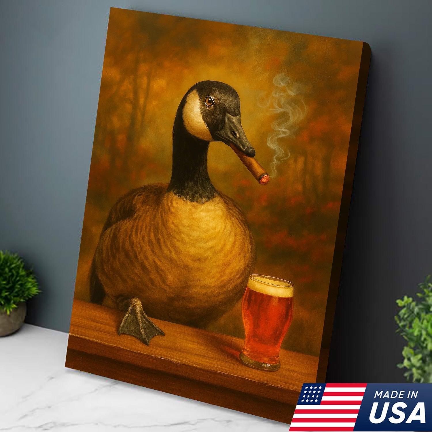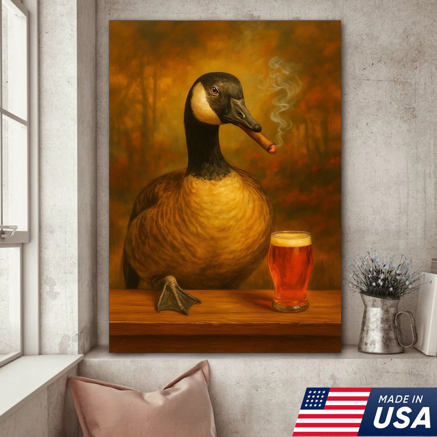 Funny Goose Smoking & Drinking Cocktail Glasses Canvas – Farmhouse Cabin Wall Art
