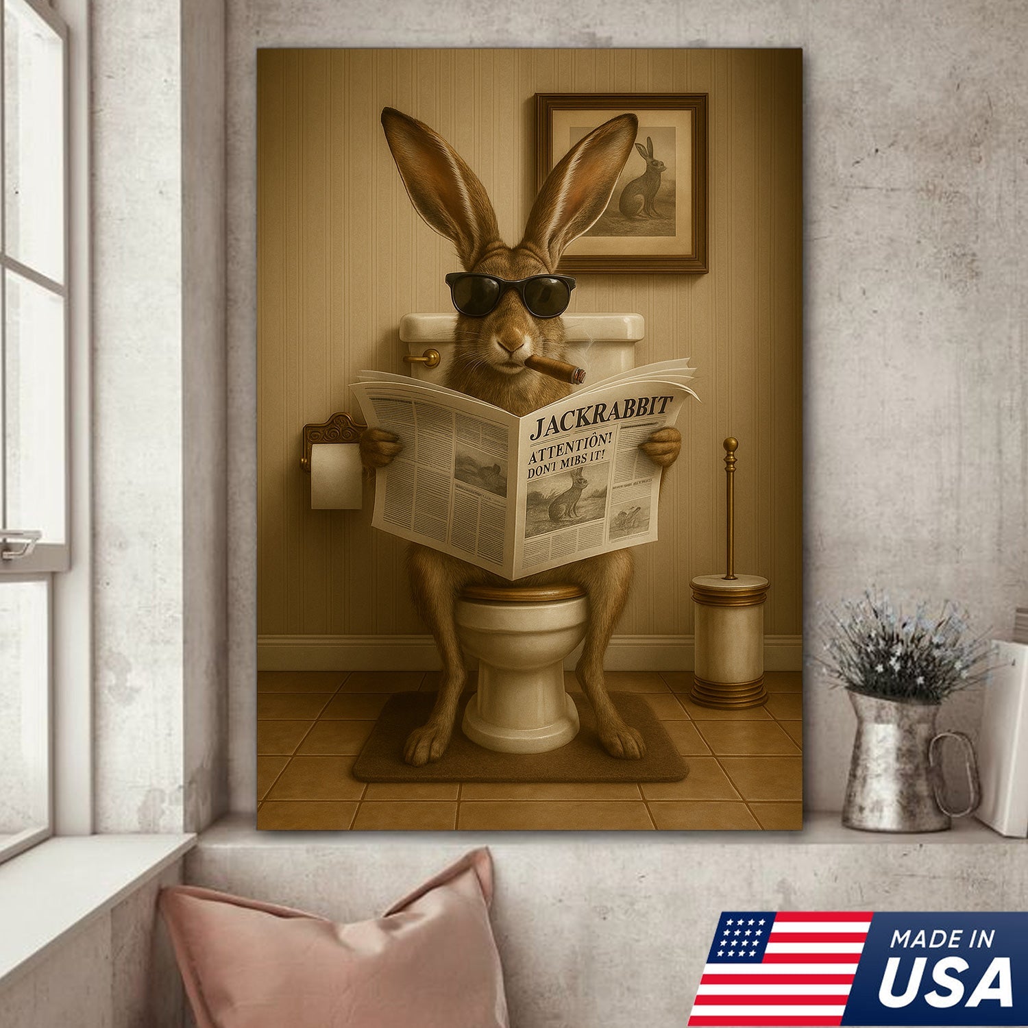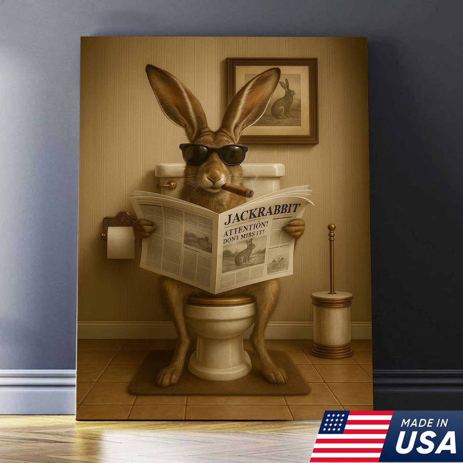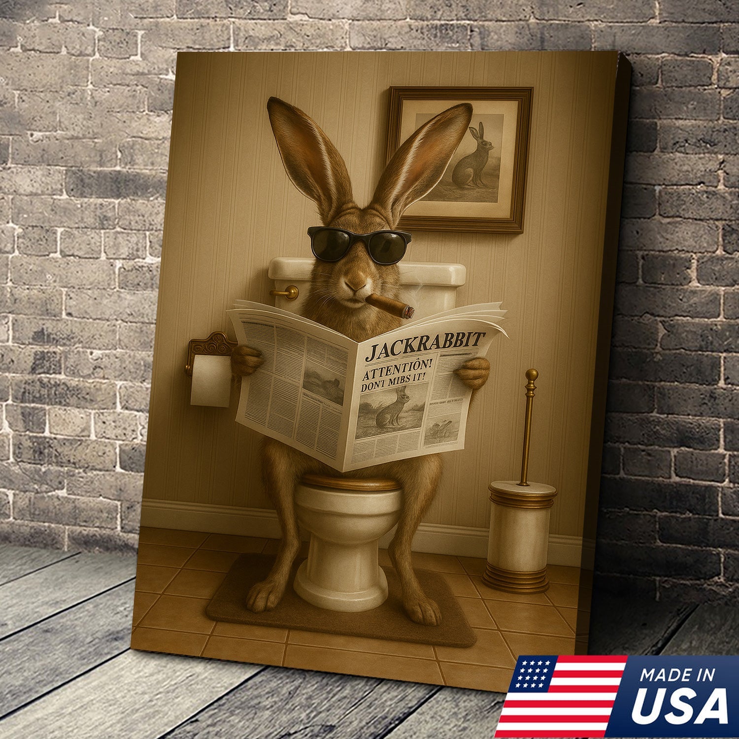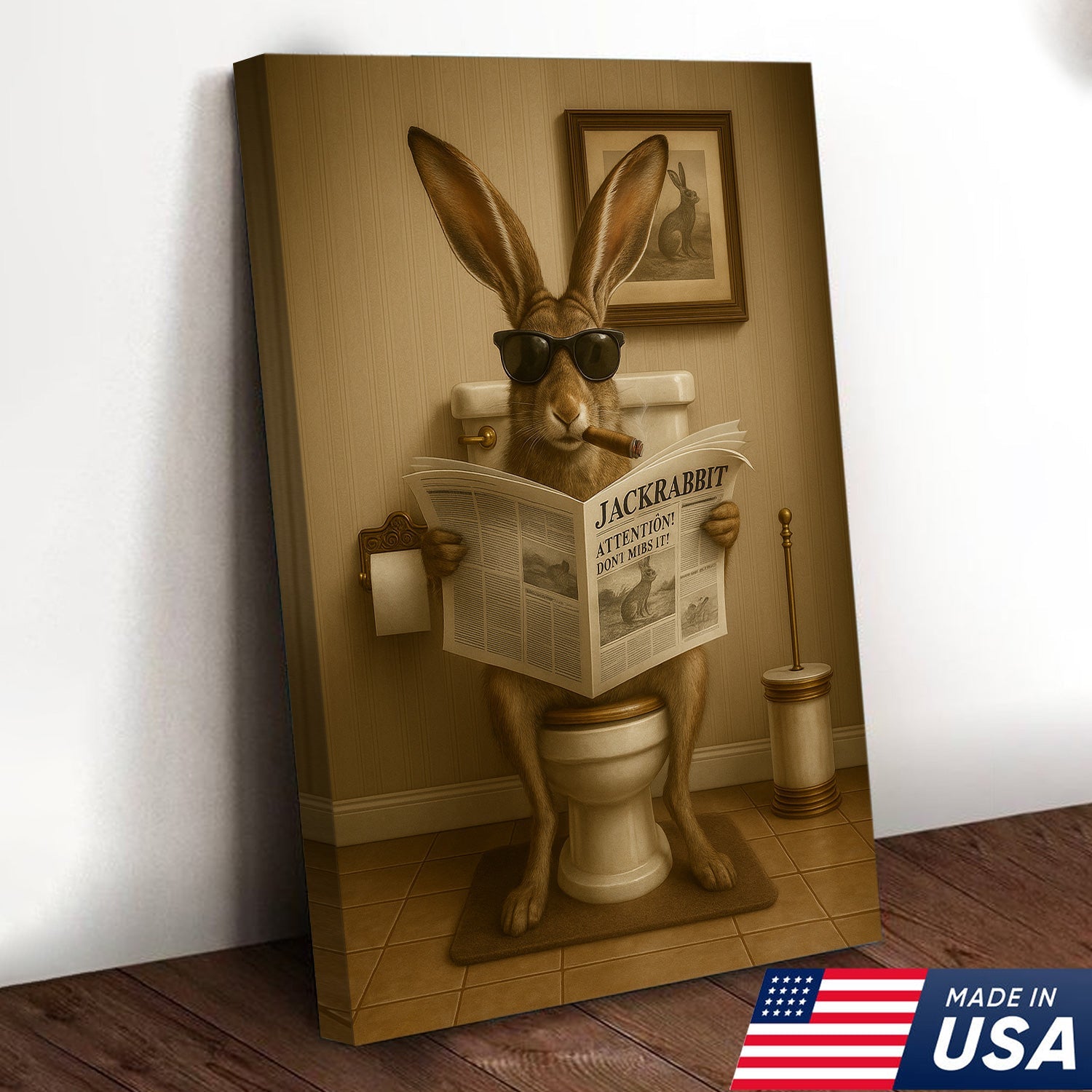 Funny Jackrabbit Bathroom Canvas Wall Art – Rustic Wildlife Lodge Decor Gift for Hunters & Cabin