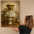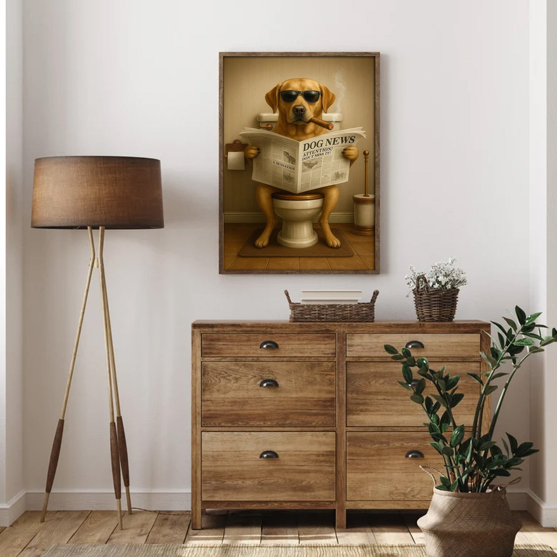 Funny Labrador Bathroom Poster Canvas – Dog on Toilet Reading Newspaper - Rustic Bathroom Decor, Gift for Dog Dads