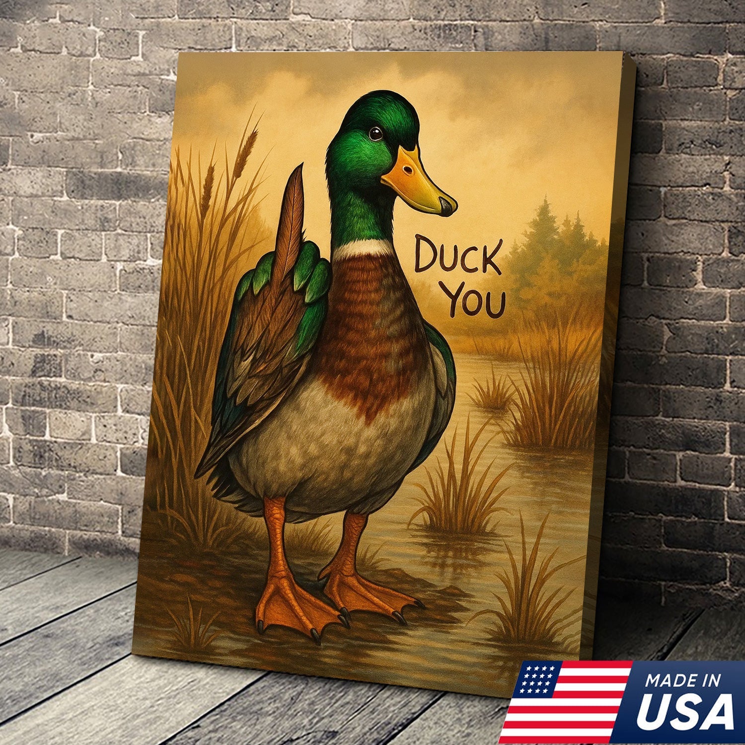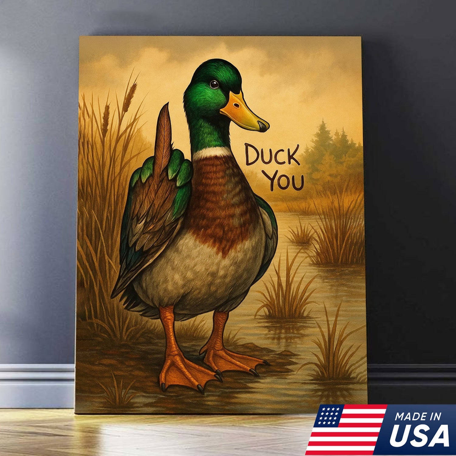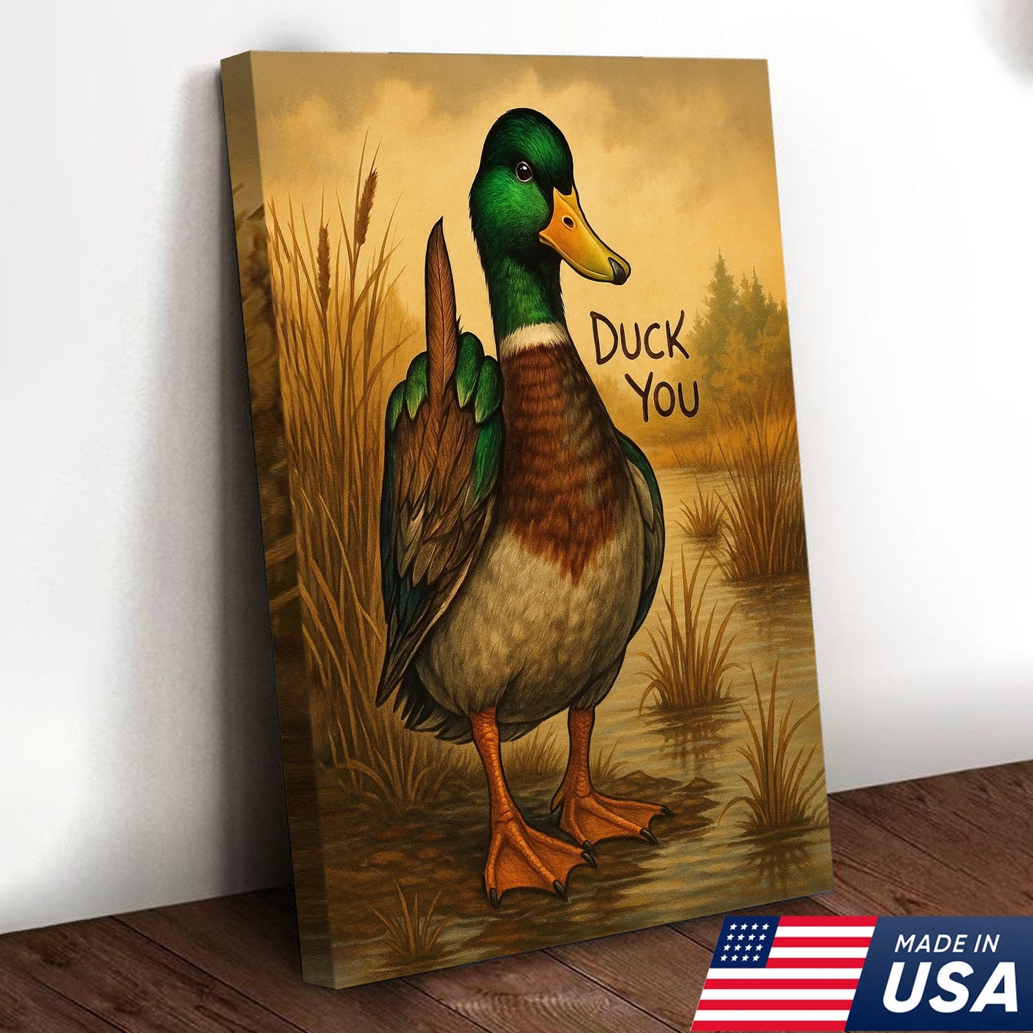 Funny Mallard Duck Canvas Wall Art – Cheeky Bathroom Decor, Rustic Lake House & Farmhouse Print