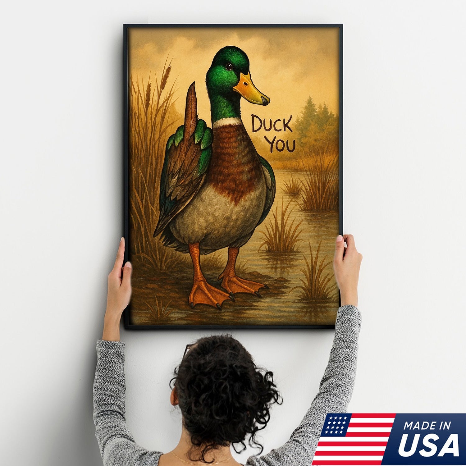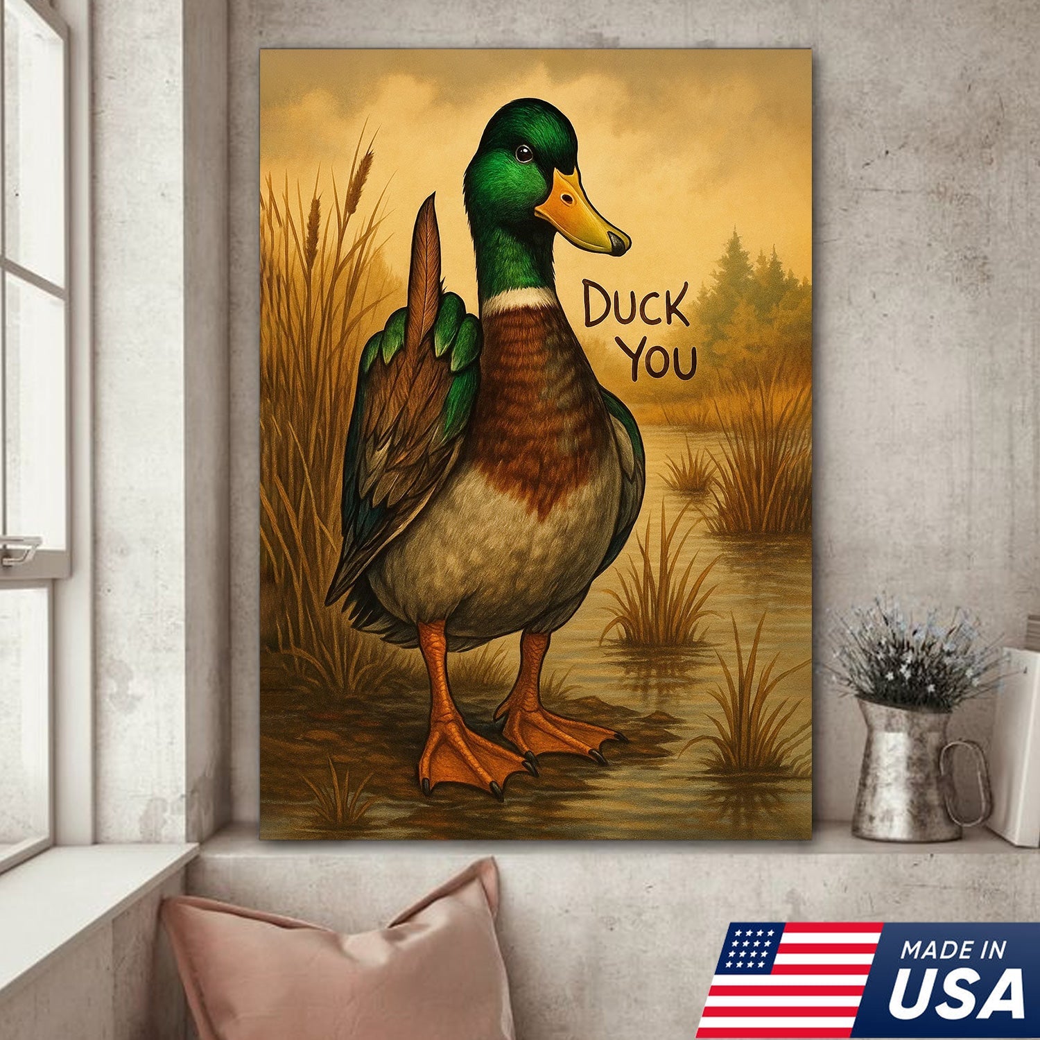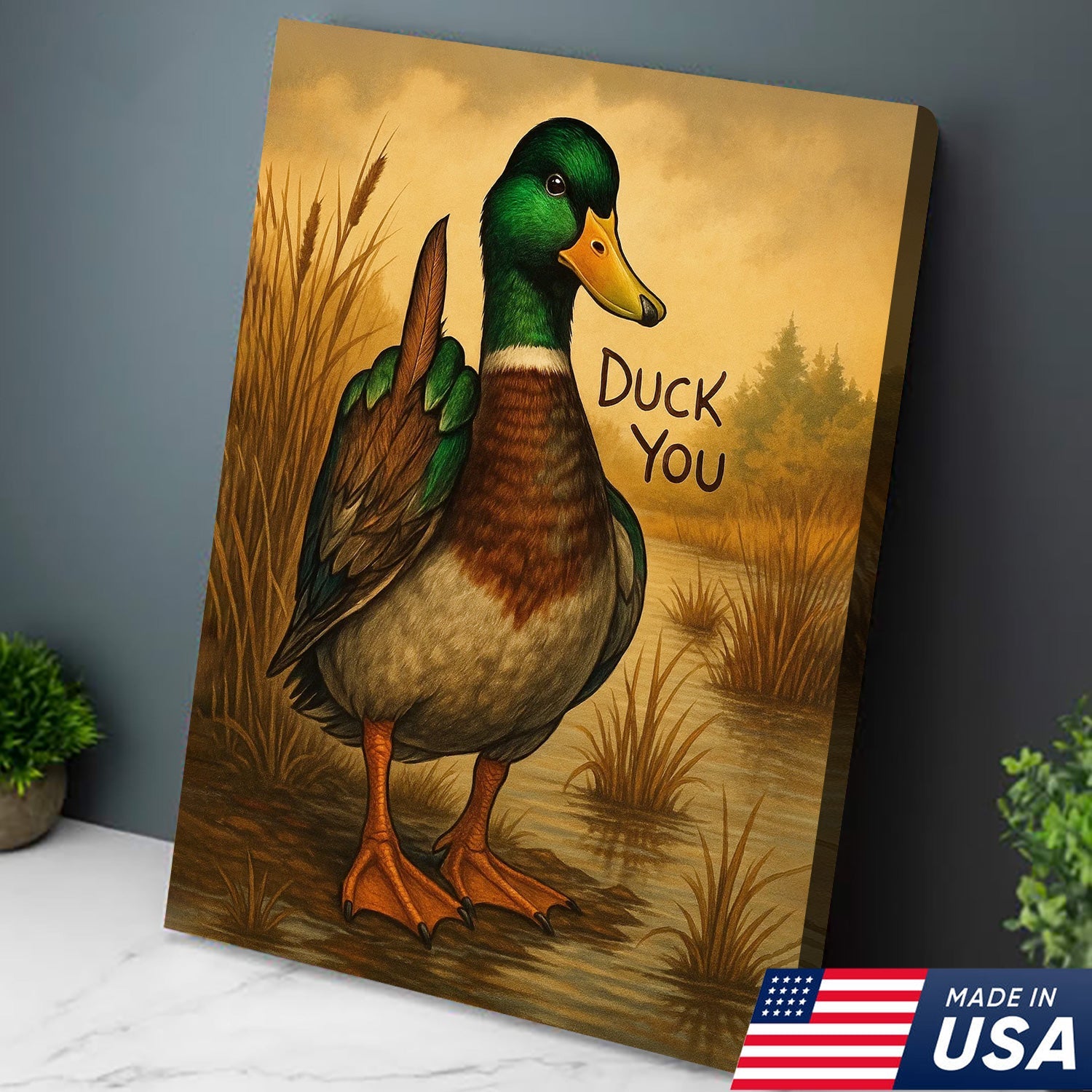 Funny Mallard Duck Canvas Wall Art – Cheeky Bathroom Decor, Rustic Lake House & Farmhouse Print