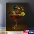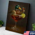 Funny Mallard Duck Canvas Wall Art - Quirky Animal in Cocktail Glass Design - Unique Wildlife Artwork for Home Decor
