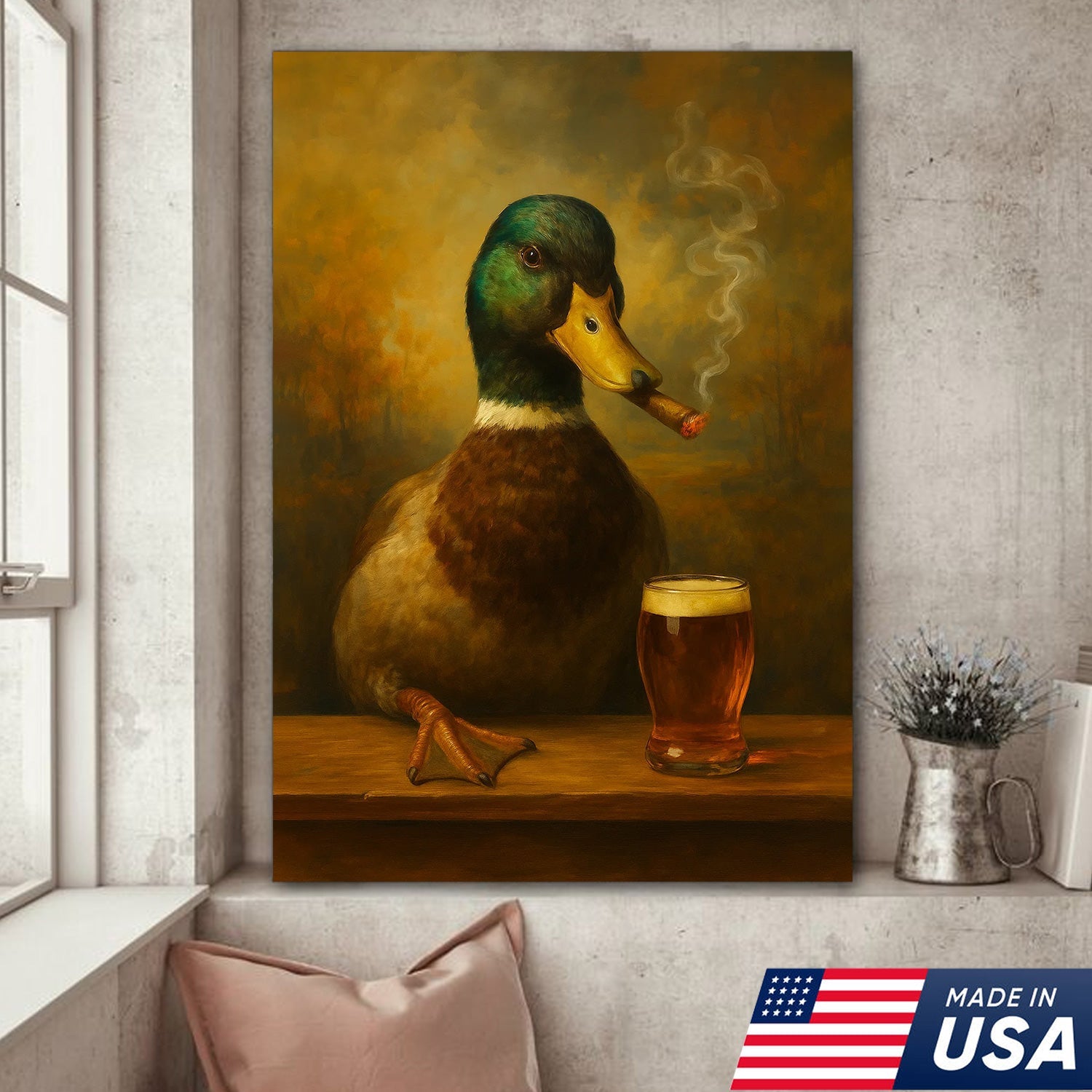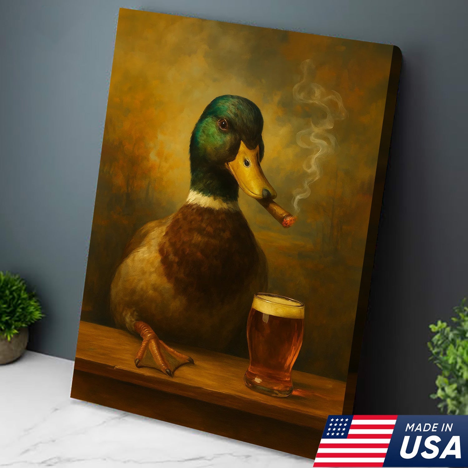 Funny Mallard Duck Smoking & Drinking Cocktail Glasses Canvas Wall Art - Rustic Hunting Perfect Gift for Hunters & Cocktail Glasses Lovers