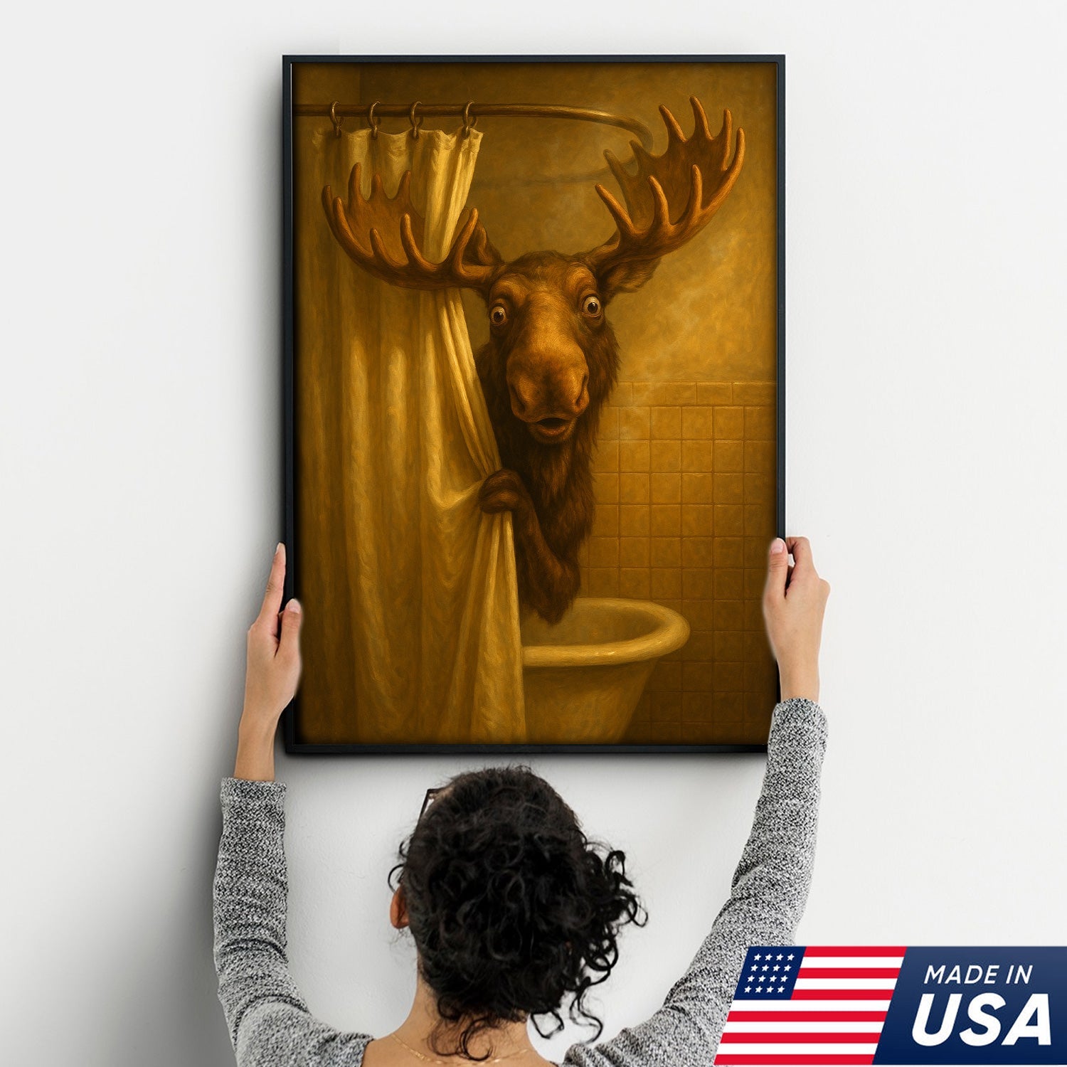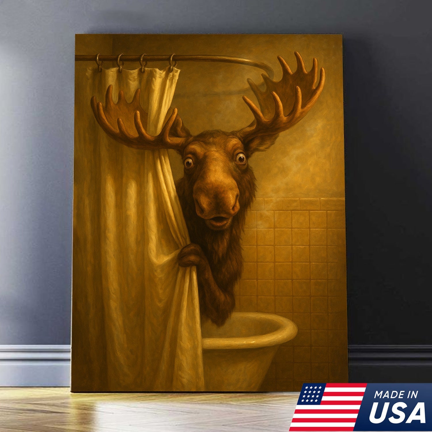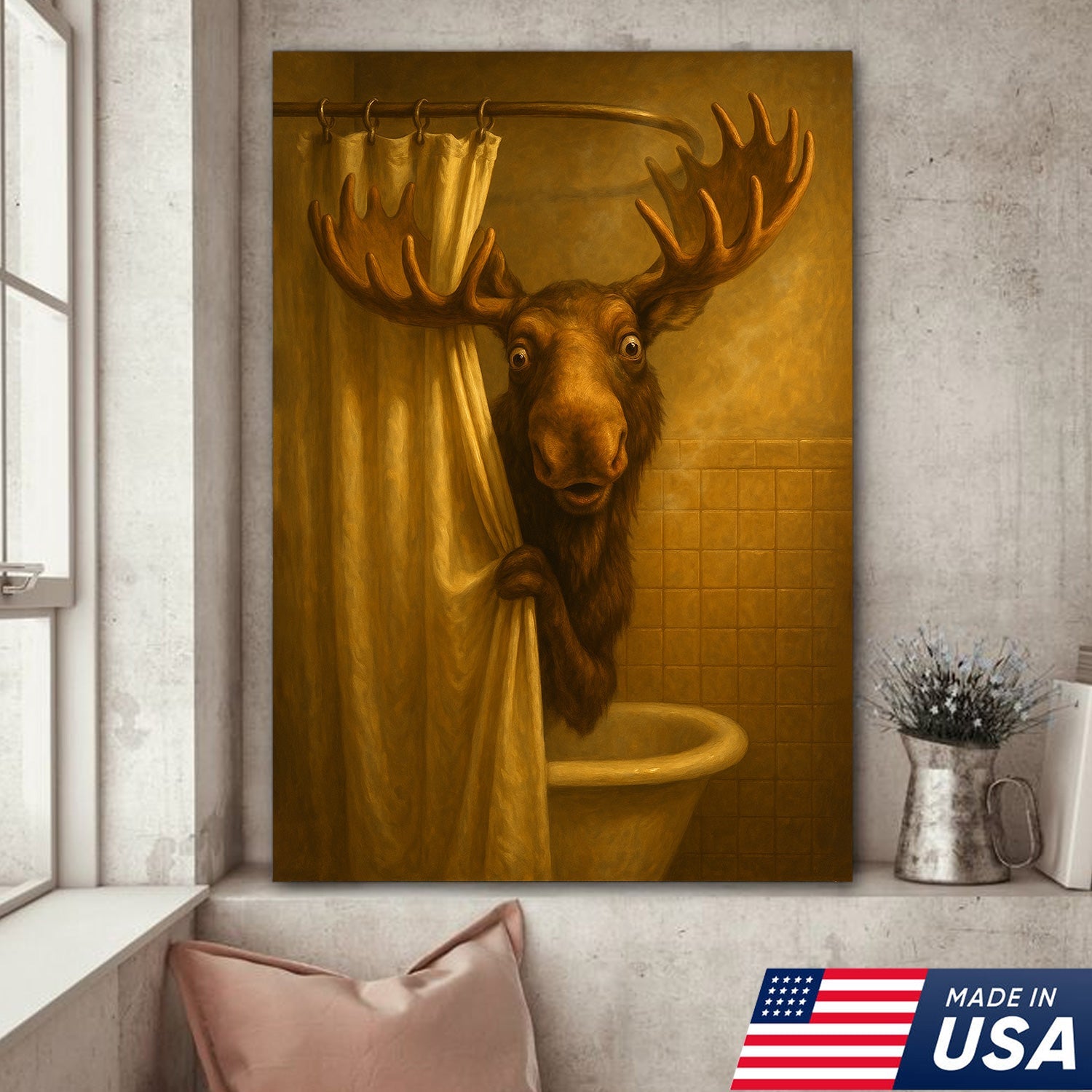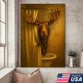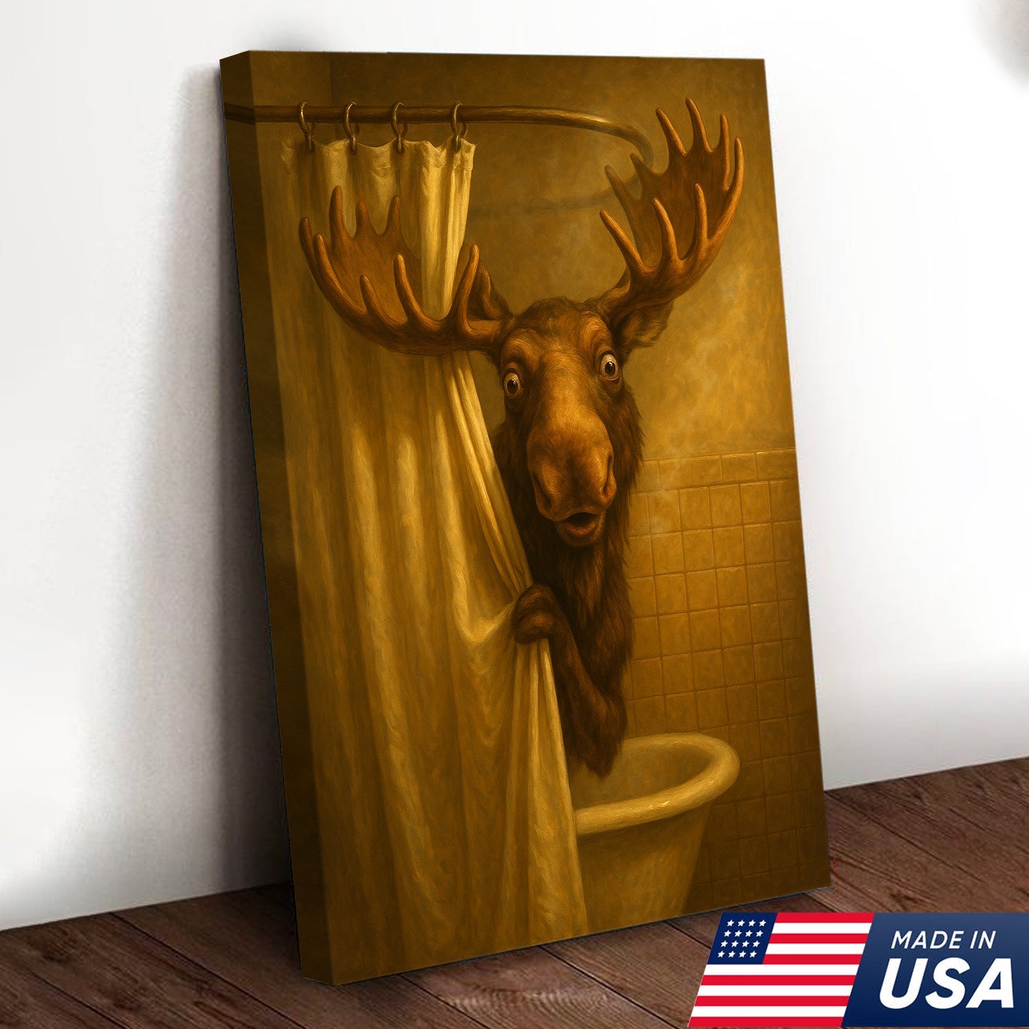 Funny Moose Bathroom Canvas Wall Art – Rustic Lodge Cabin Decor for Bathroom, Man Cave & Rustic Homes
