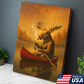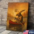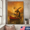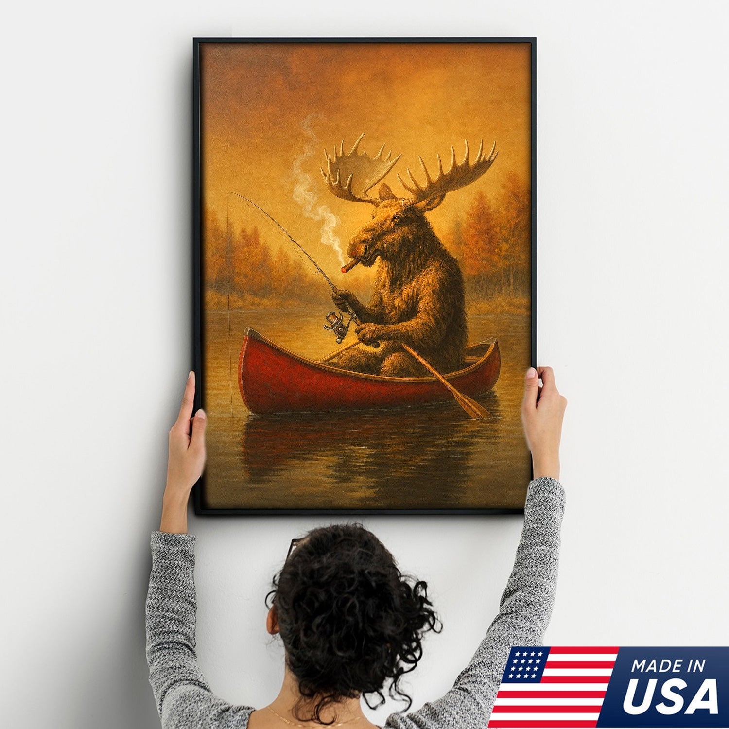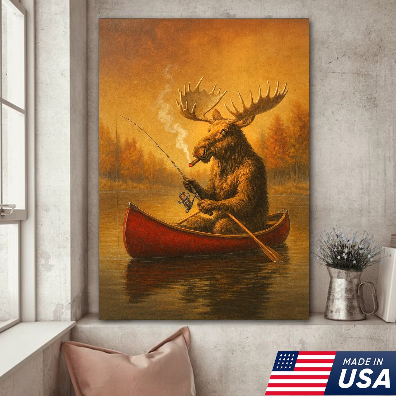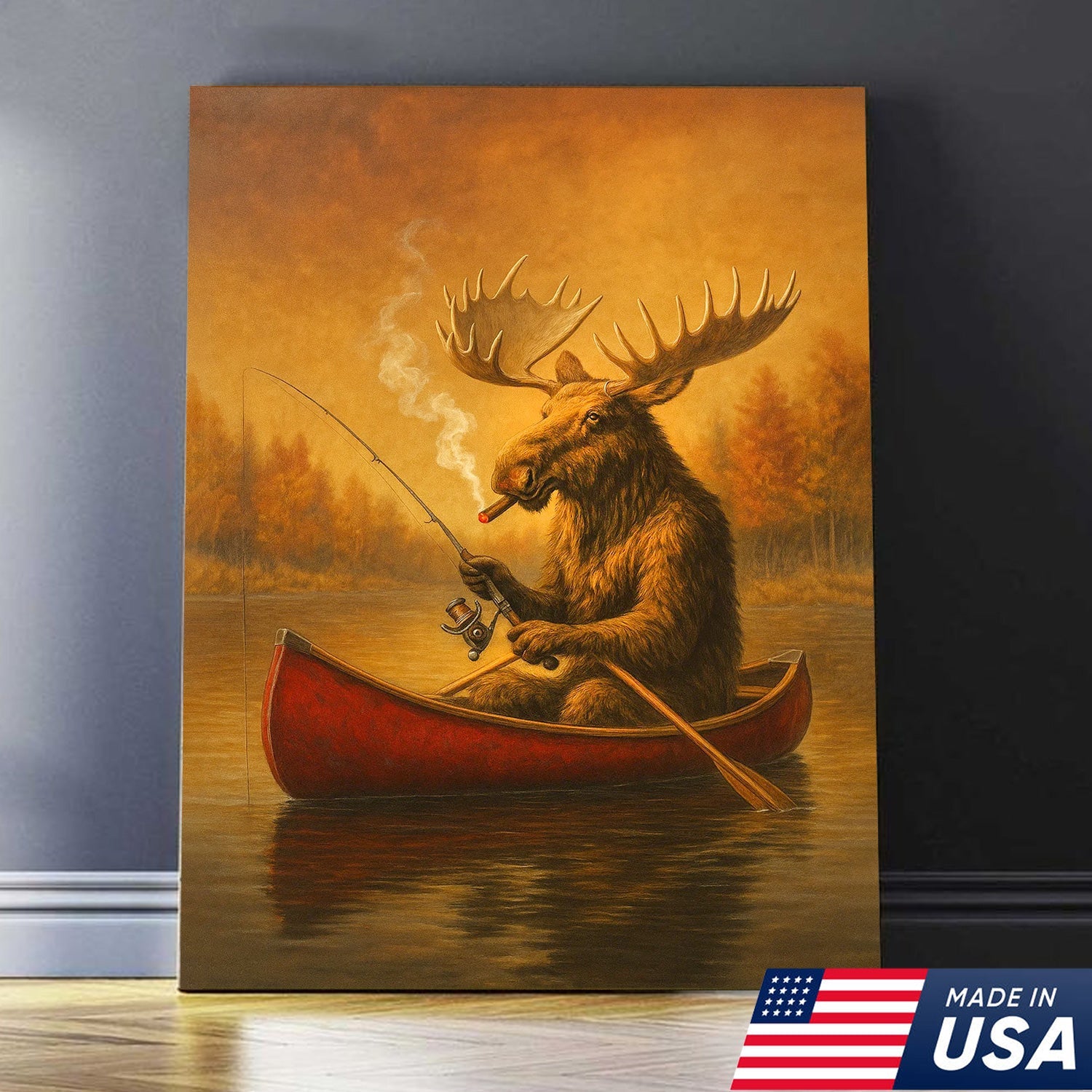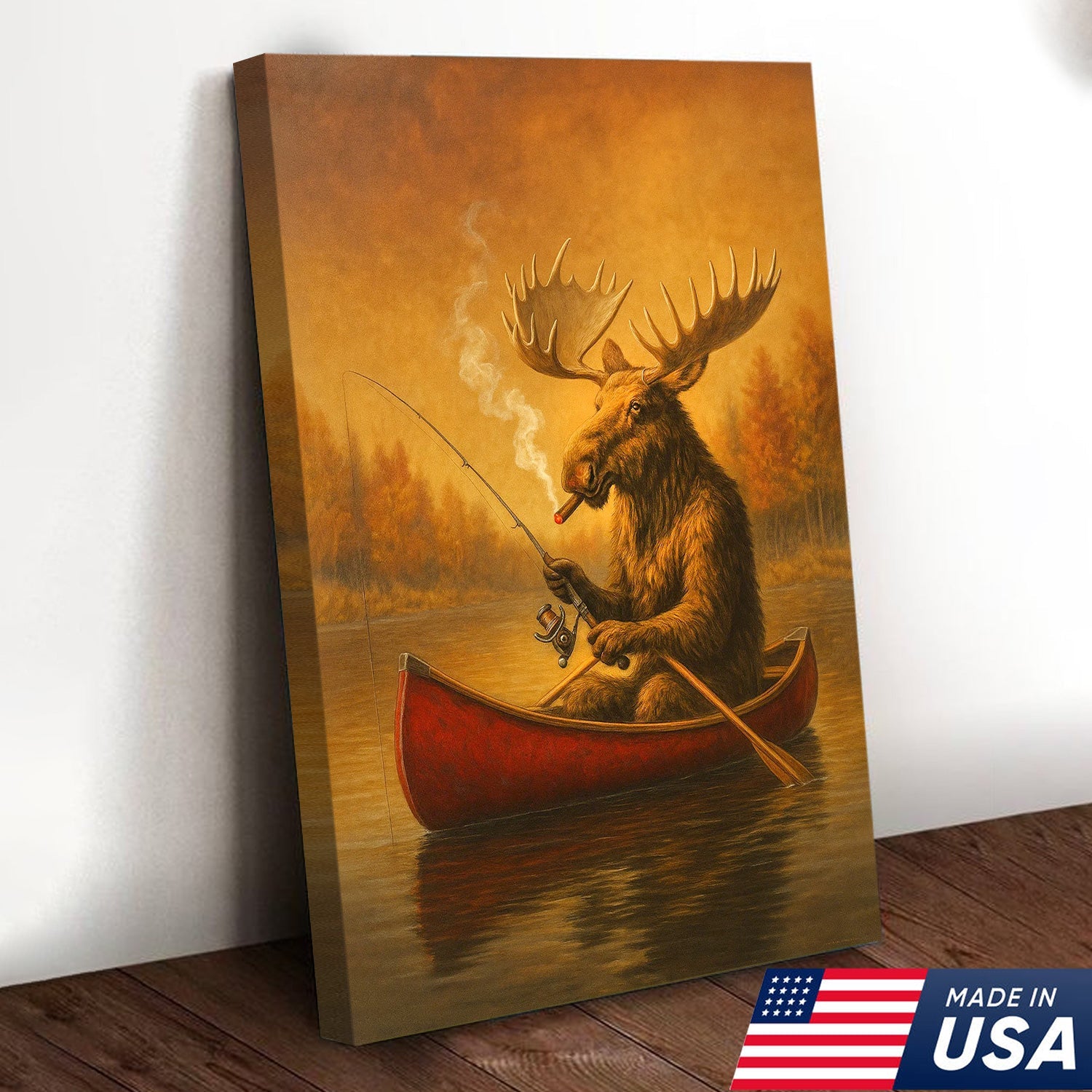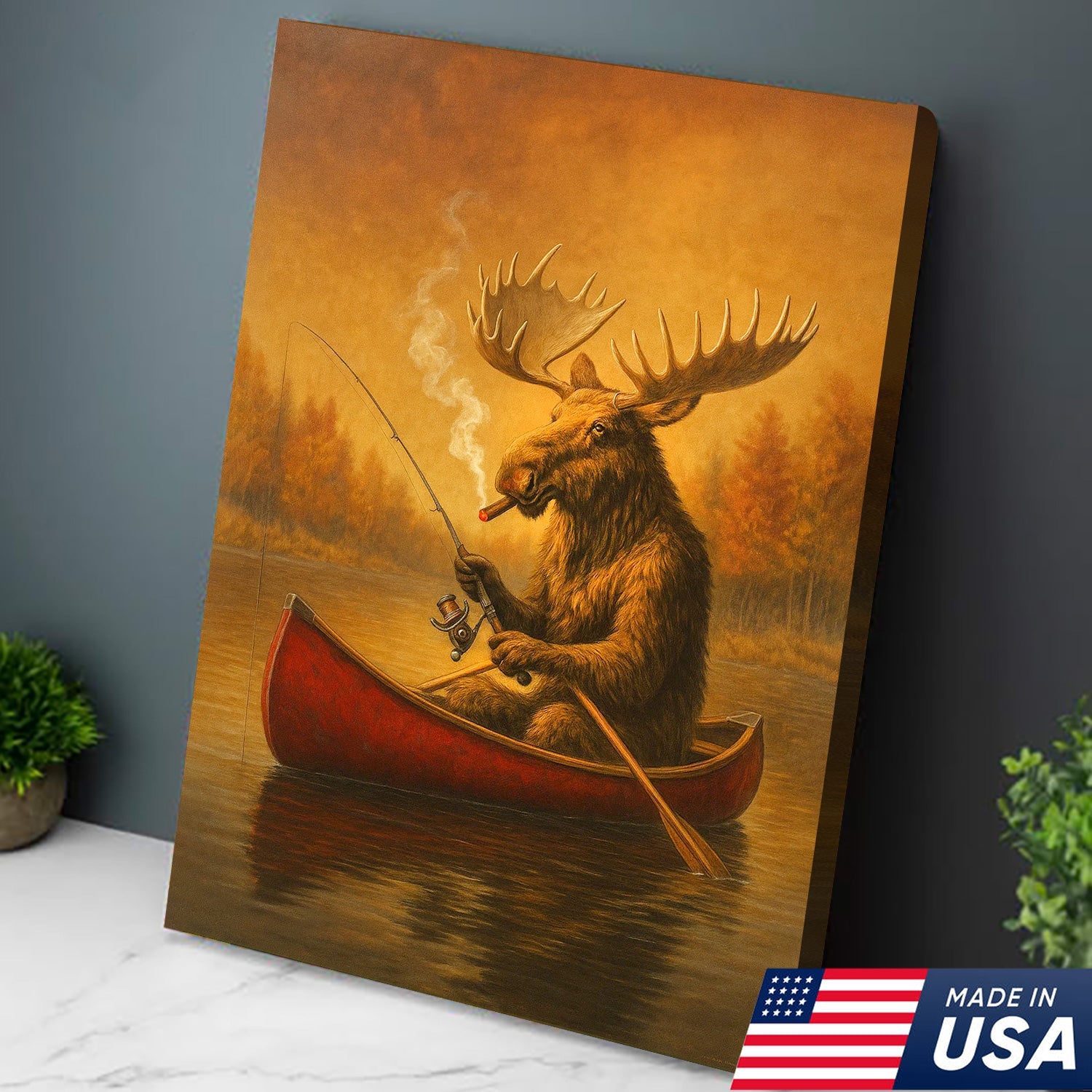Funny Moose Fishing Canvas Wall Art, Rustic Cabin & Lodge Decor for Hunters & Fishermen