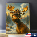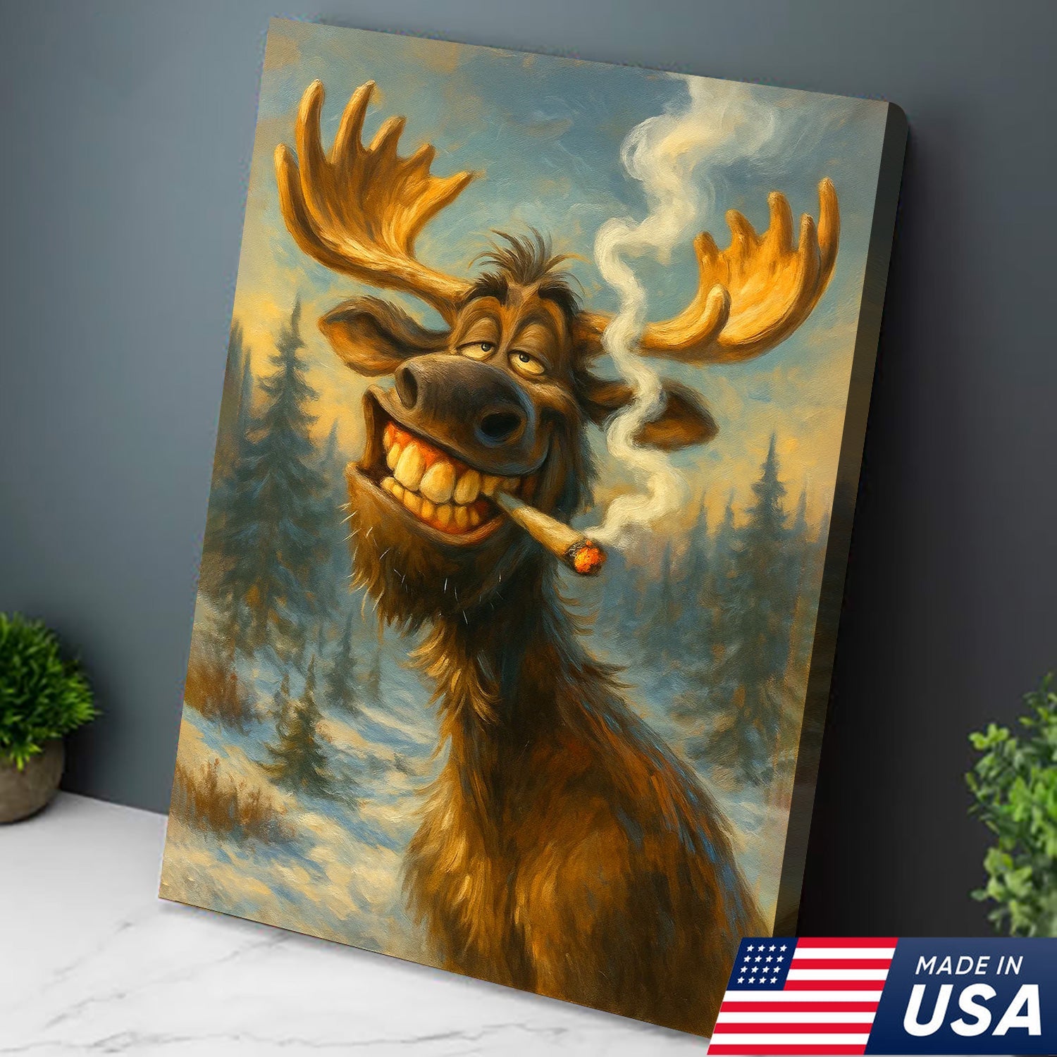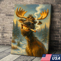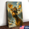Funny Moose Smoking Canvas Wall Art – Rustic Cabin Lodge Decor