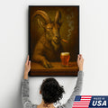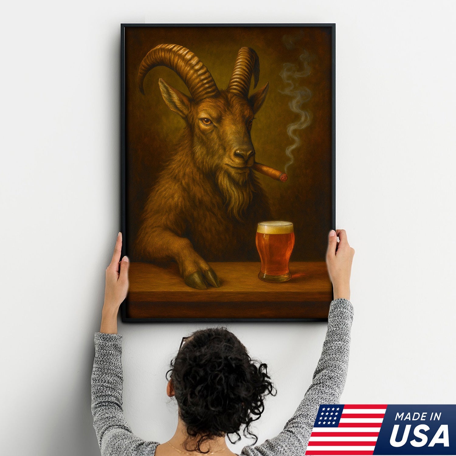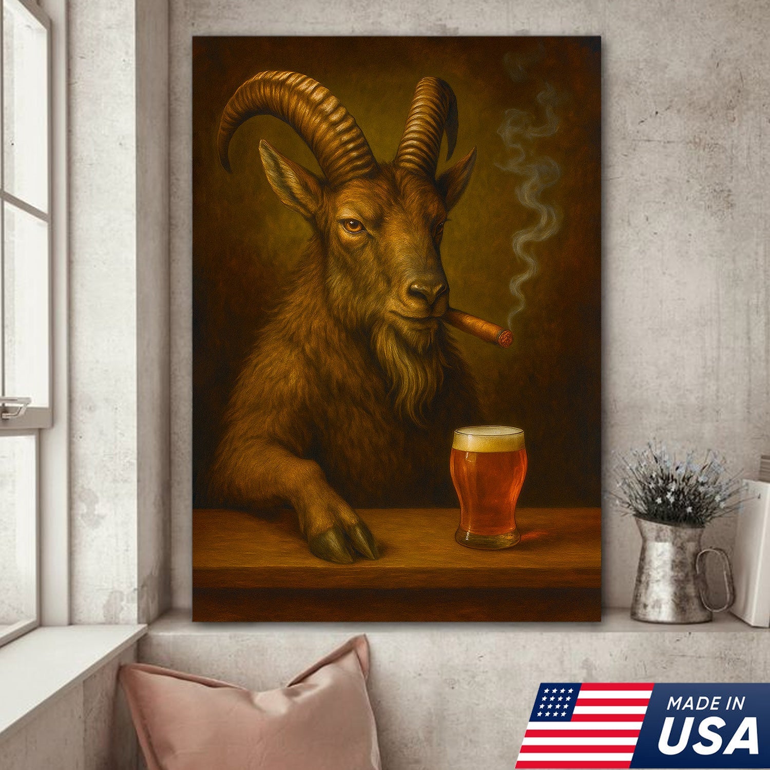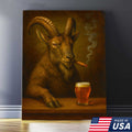 Funny Mountain Goat Smoking And Beer Canvas Wall Art - Hunting Perfect Gift for Hunters & Cocktail Glasses Lovers