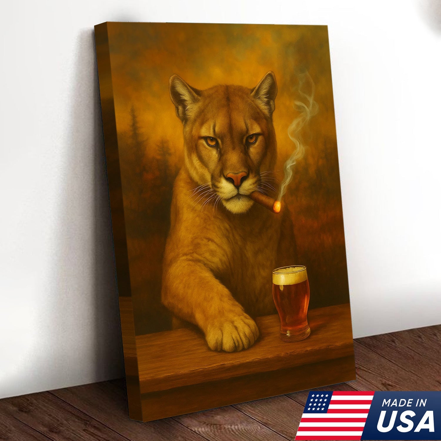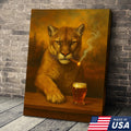 Funny Mountain Lion Smoking With Cocktail Glasses Canvas Wall Art – Rustic Bar Decor Perfect Gift for Hunters & Cocktail Glasses Lovers