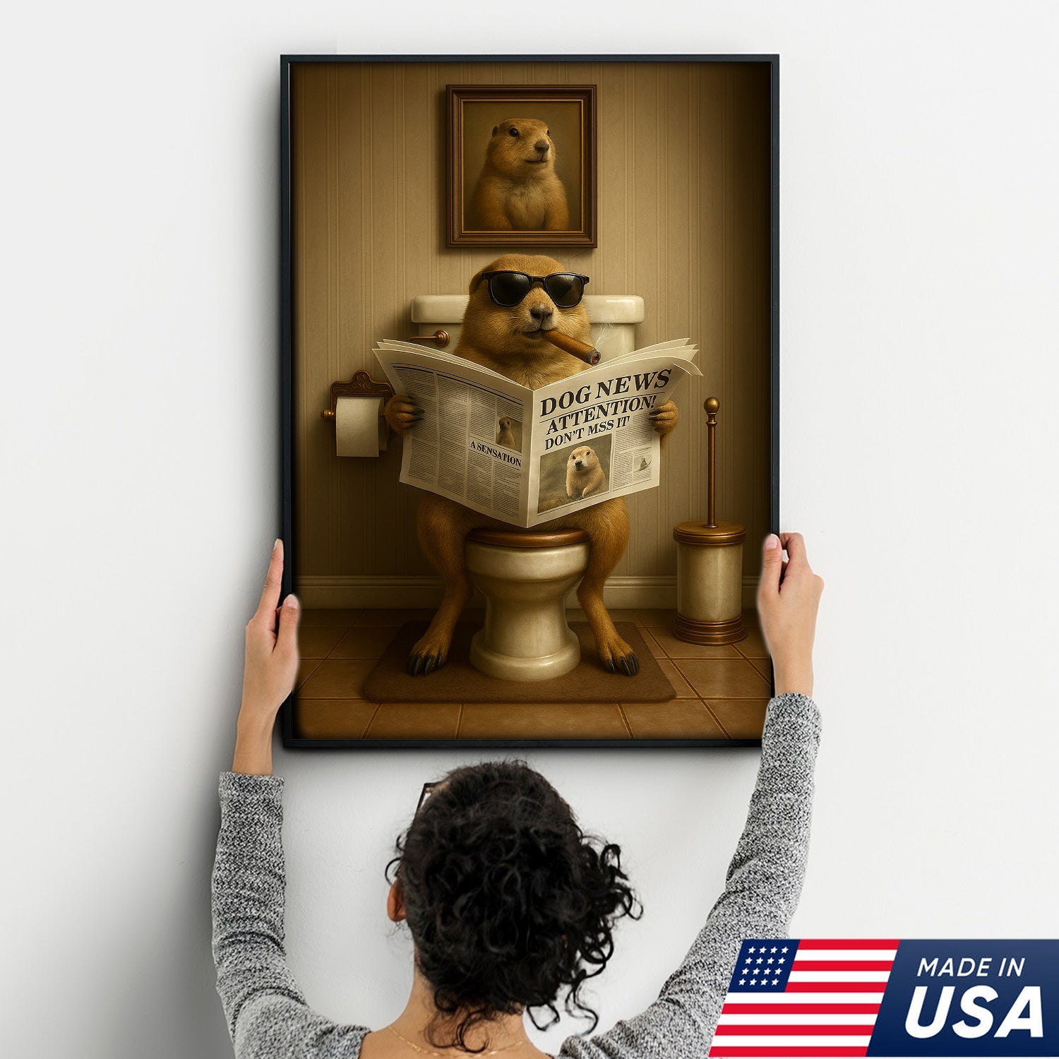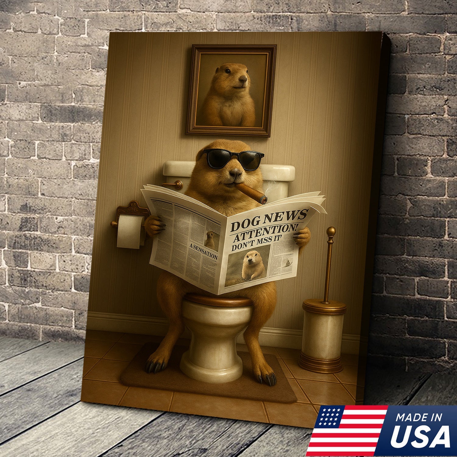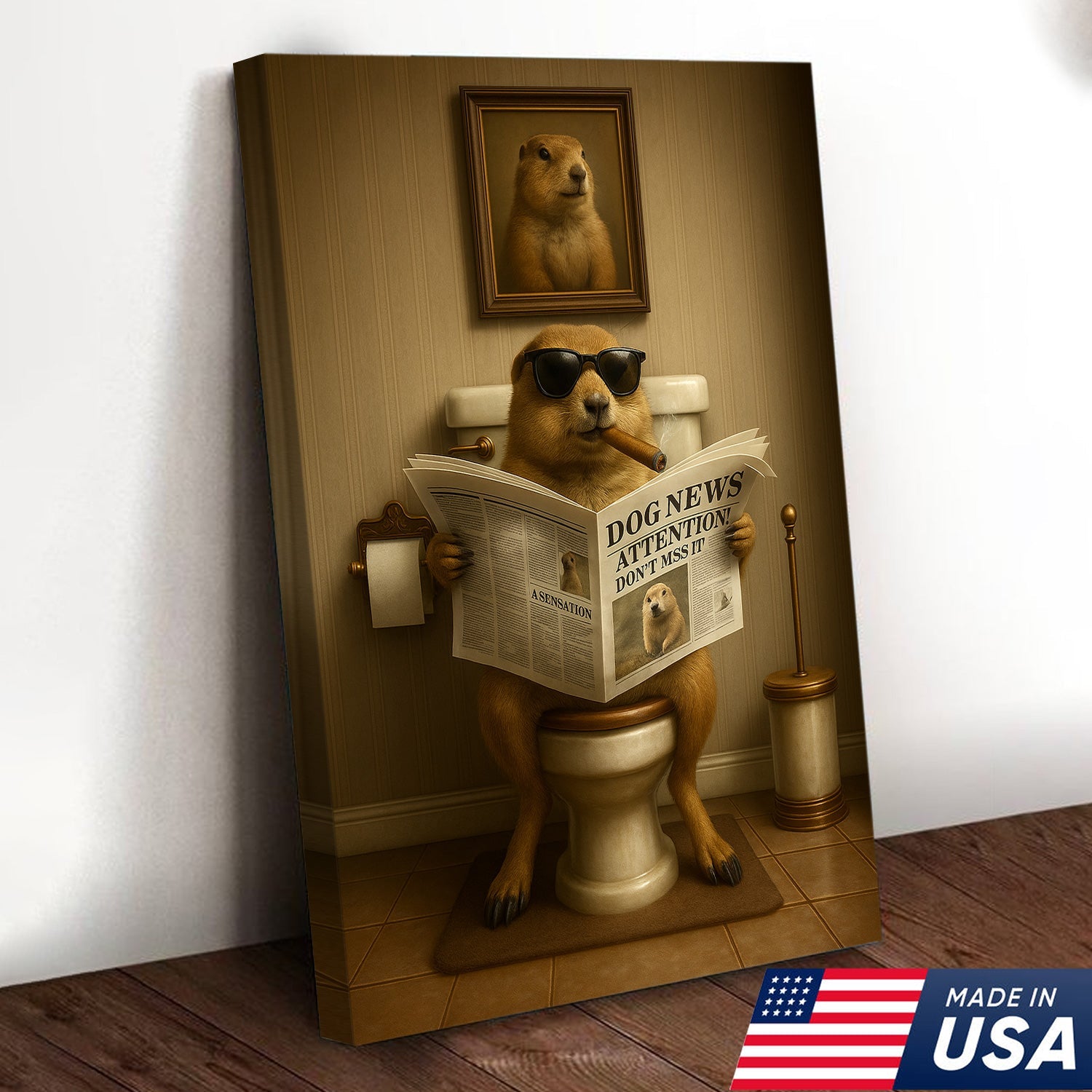 Funny Prairie Dog Bathroom Canvas – Rustic Wildlife Lodge Wall Art Gift for Hunters and Cabin