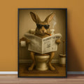 Funny Rabbit Reading News Bathroom Wall Art – Rustic Decor for Men, Hunting Cabin Poster, Hilarious Gift for Dad