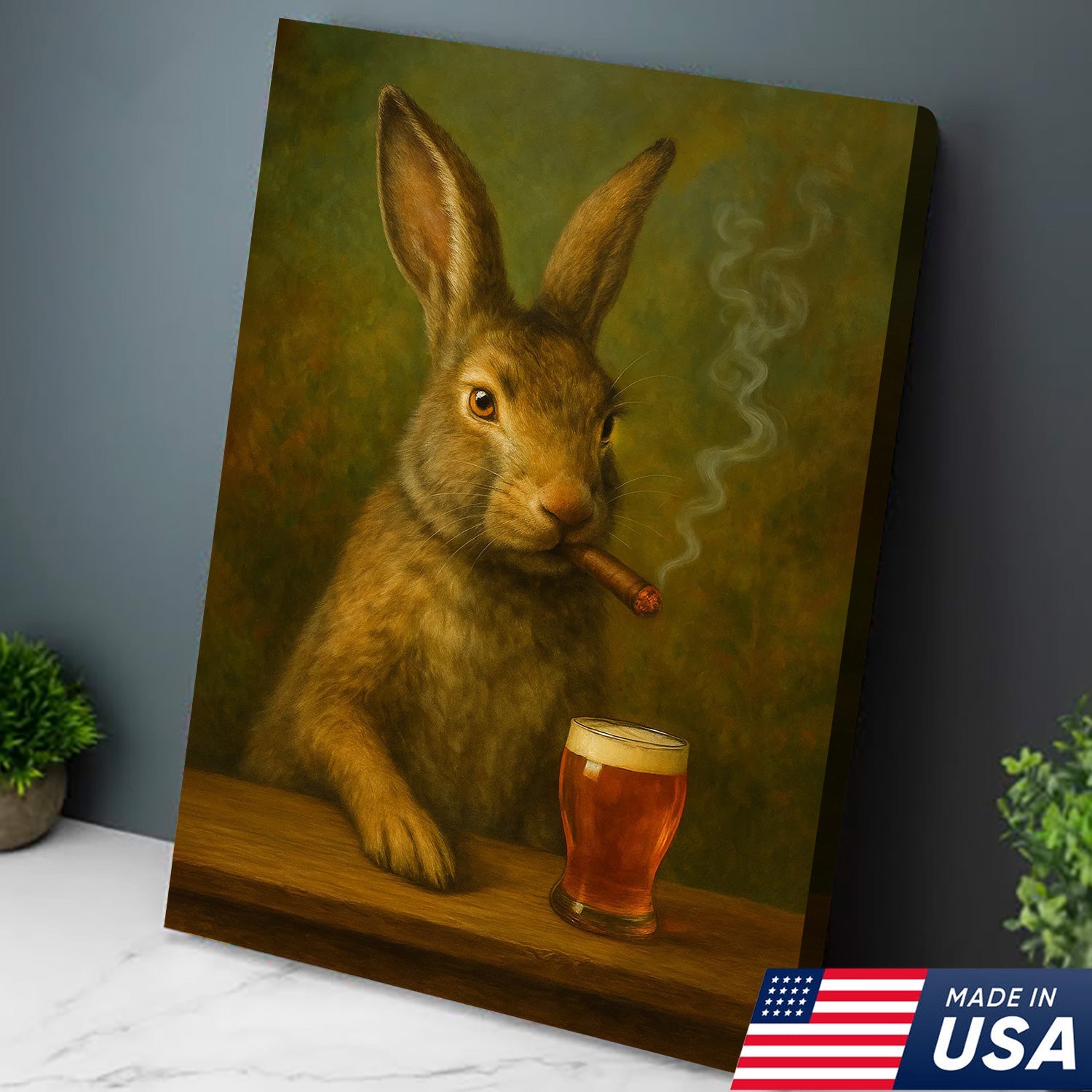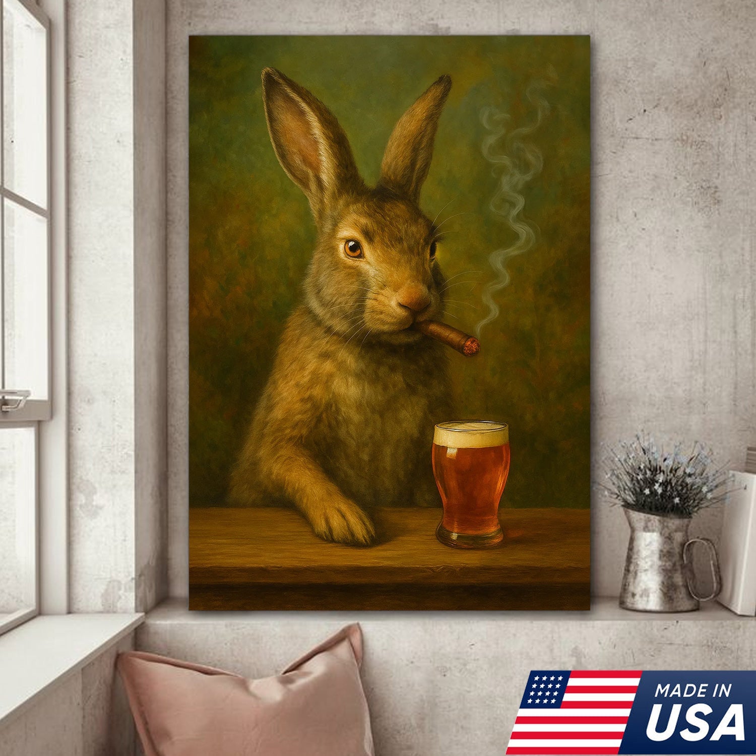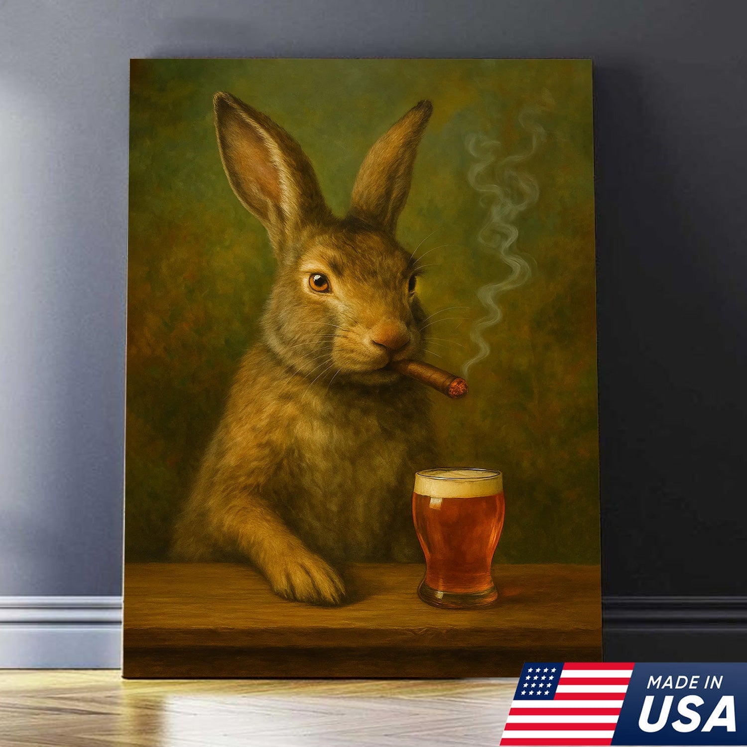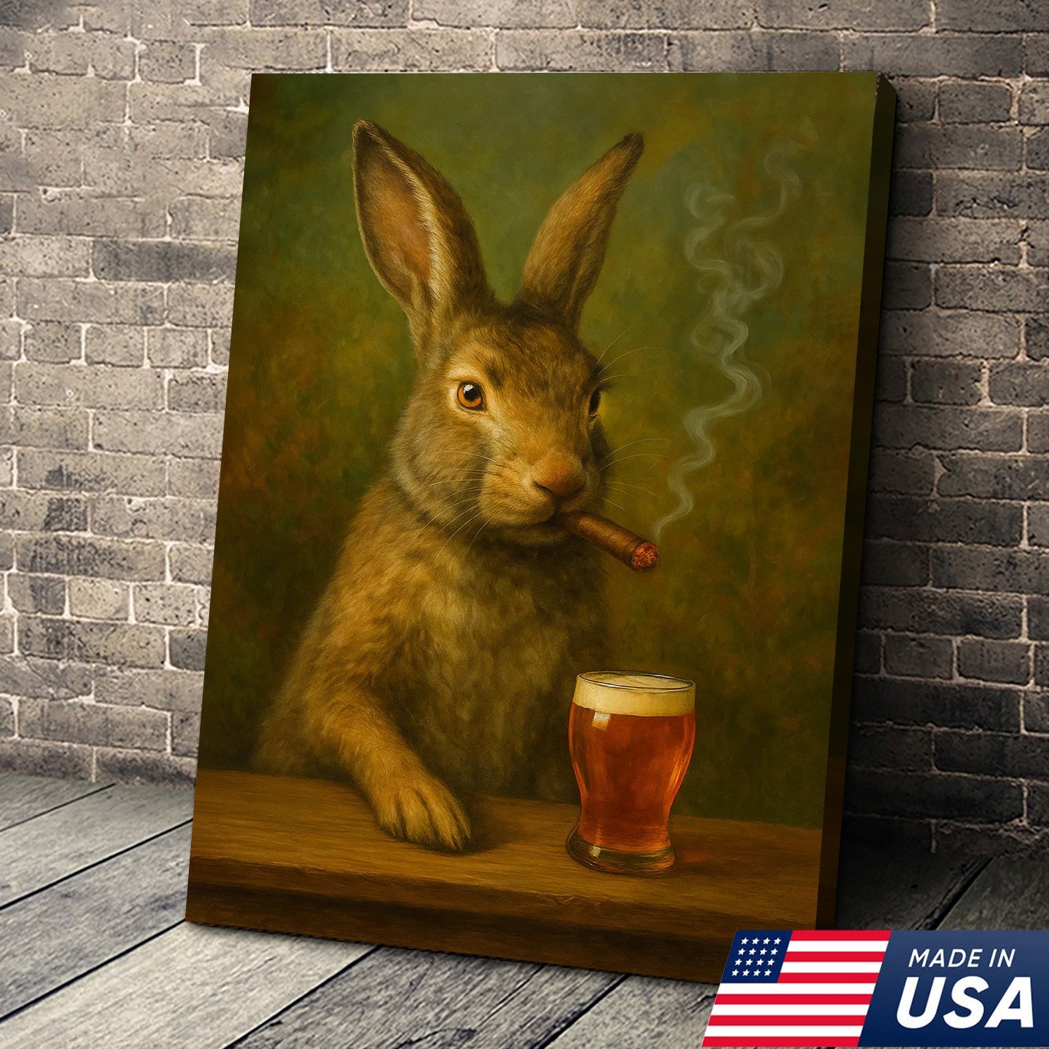 Funny Rabbit Smoking and Drinking Cocktail Glasses Canvas Wall Art – Rustic Cabin Decor