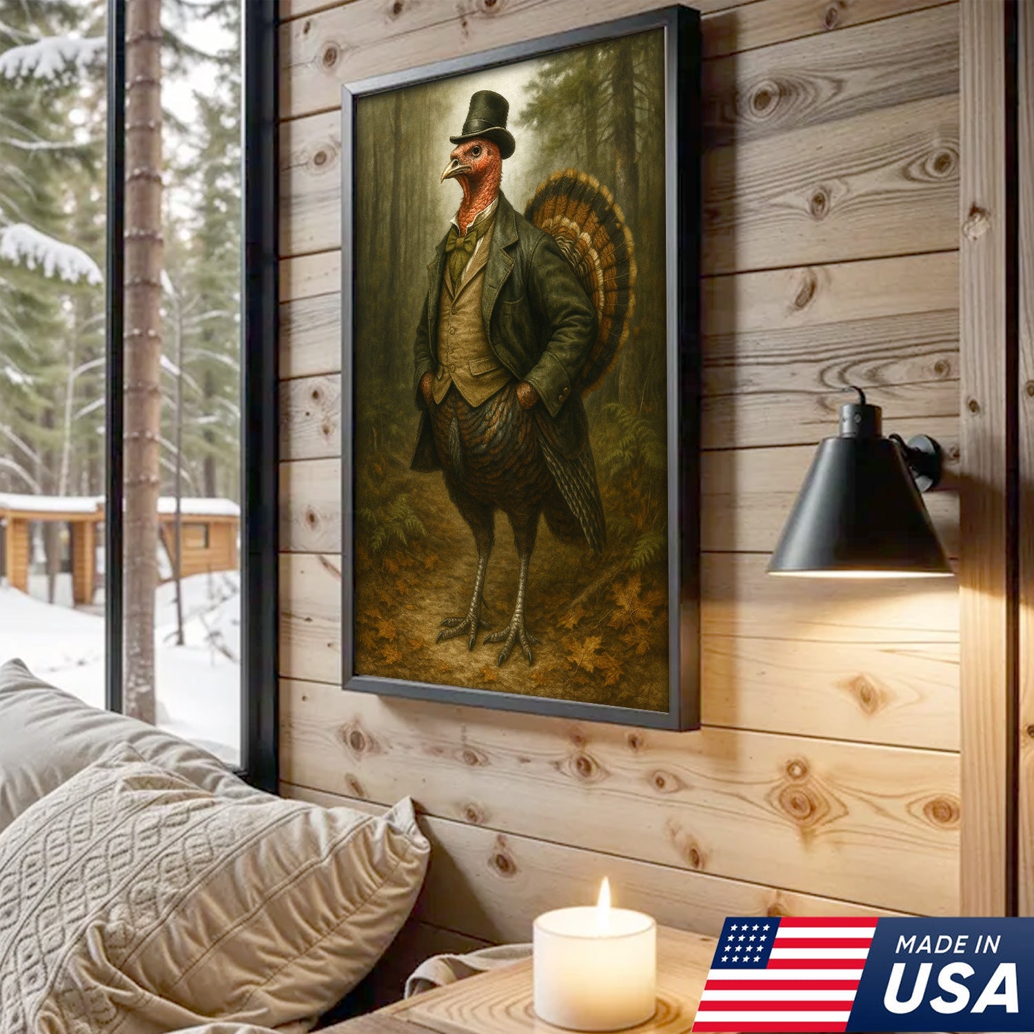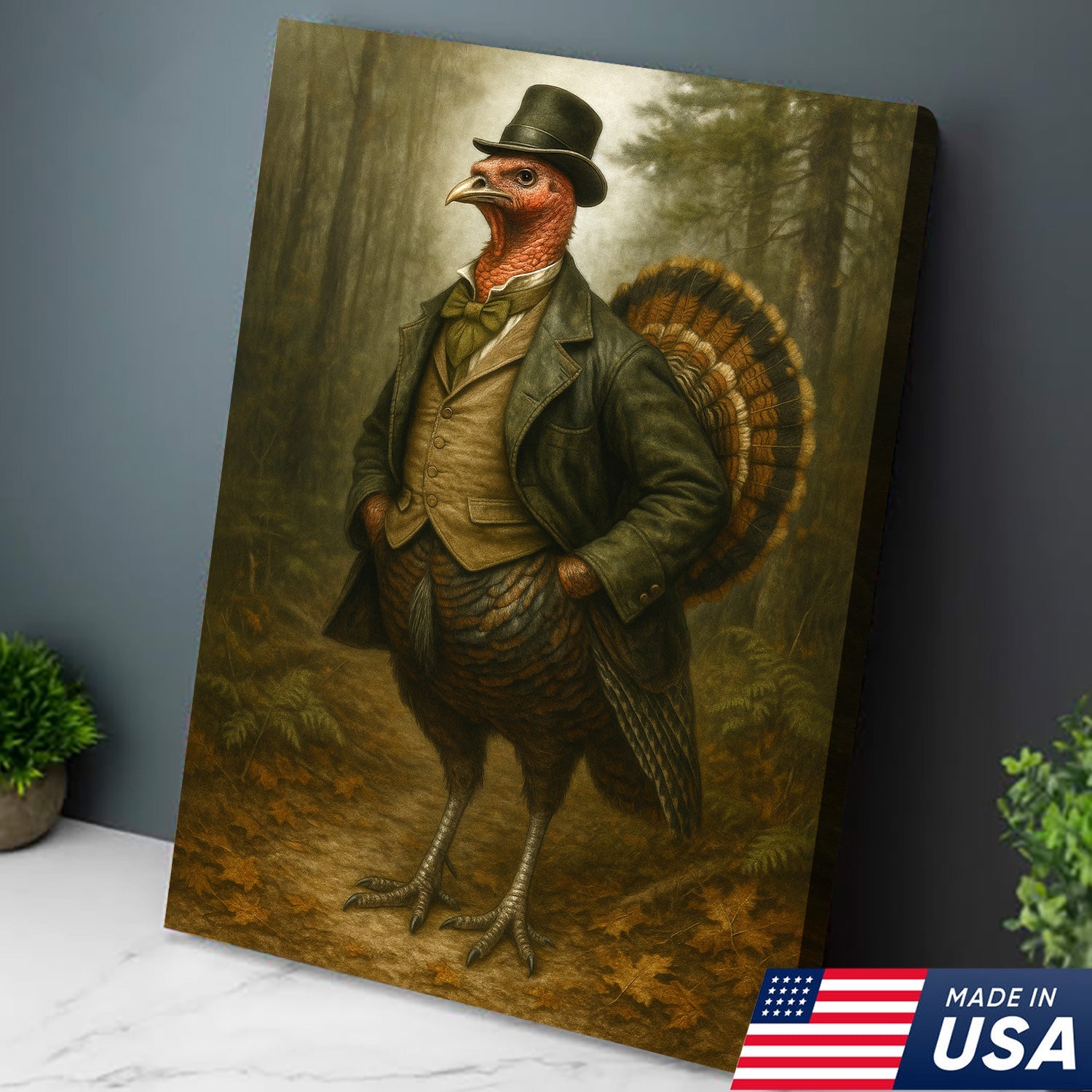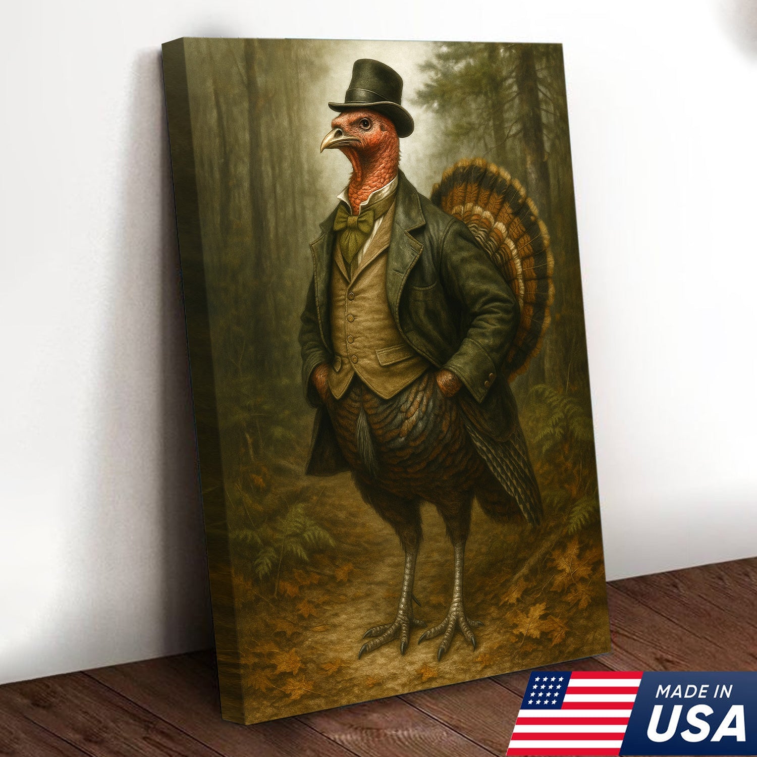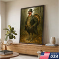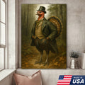 Funny Turkey Gentleman Canvas Wall Art – Rustic Lodge Decor Gift for Hunters & Thanksgiving Fans