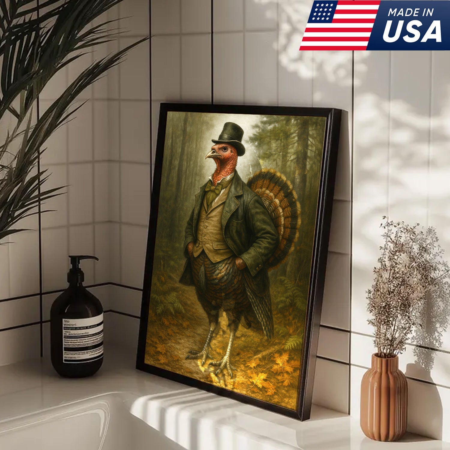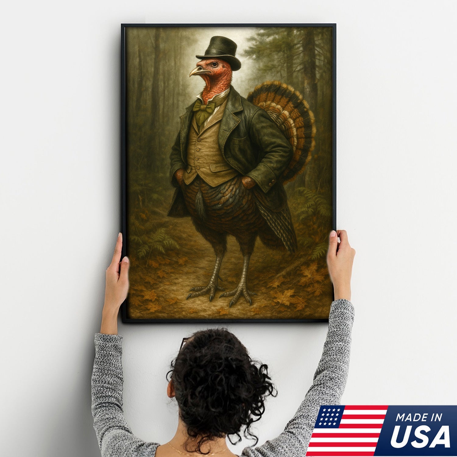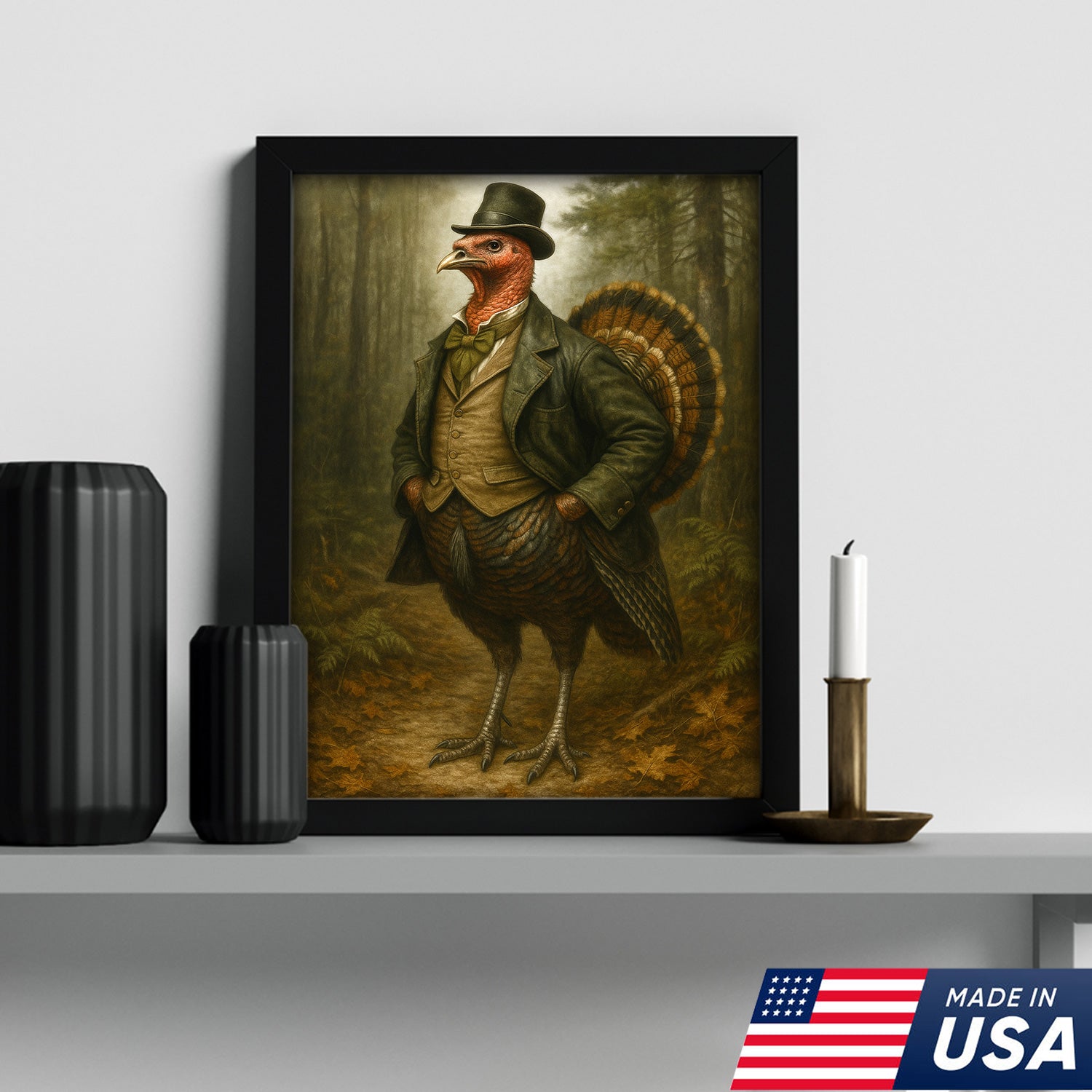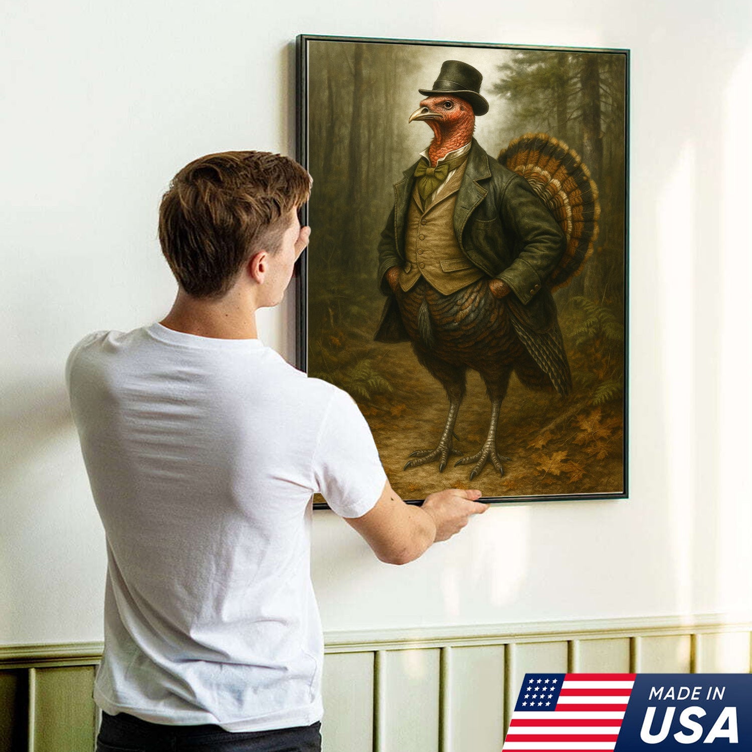 Funny Turkey Gentleman Canvas Wall Art – Rustic Lodge Decor Gift for Hunters & Thanksgiving Fans