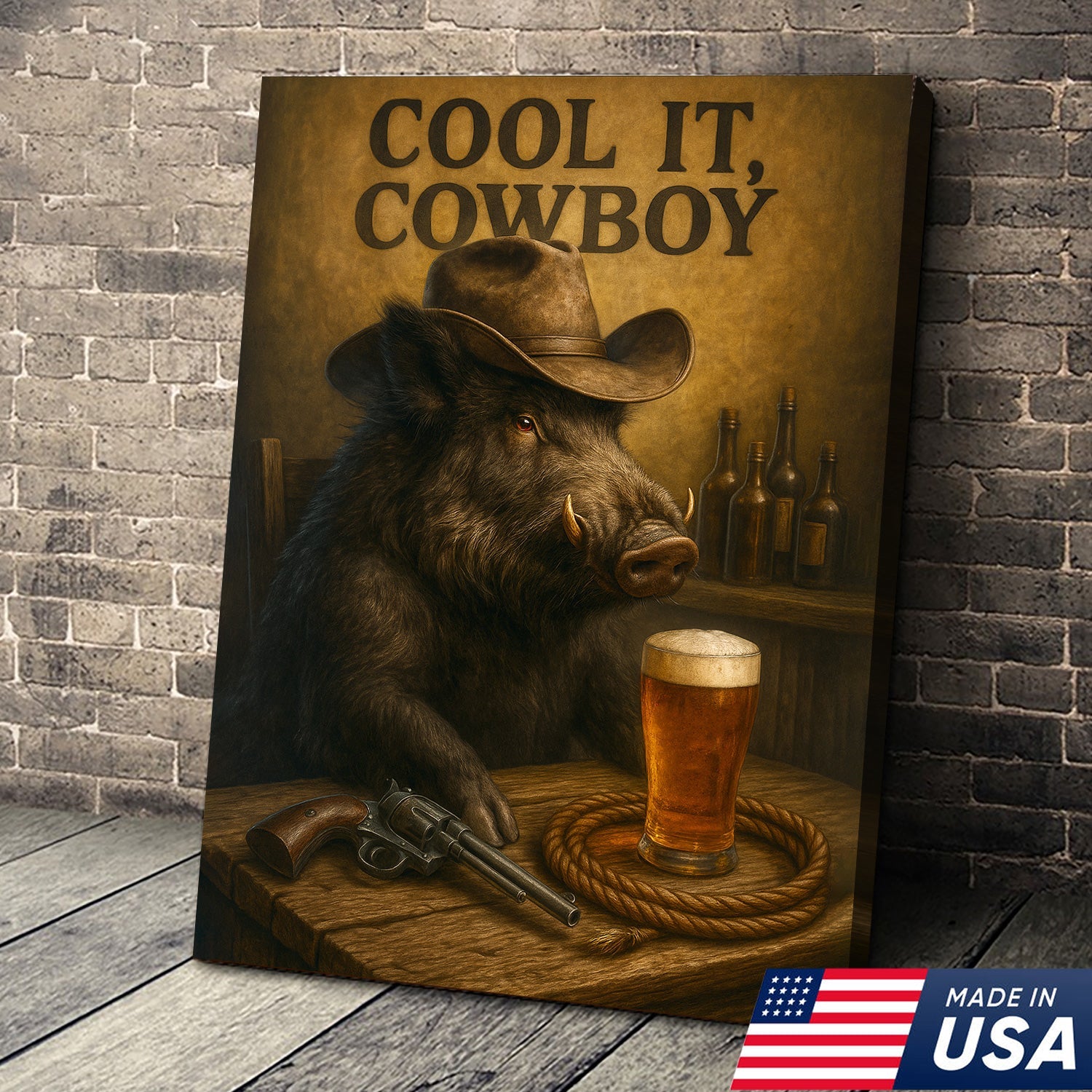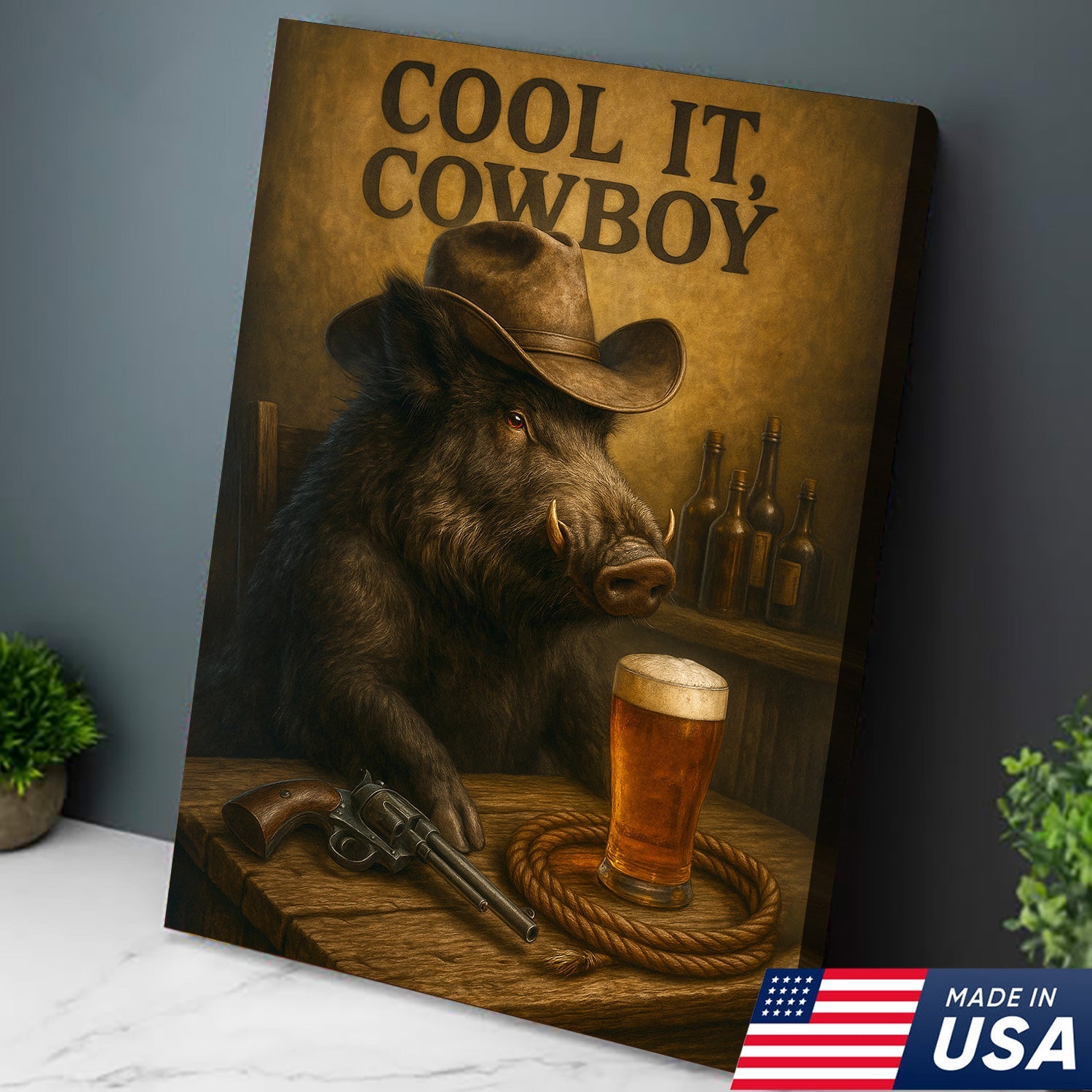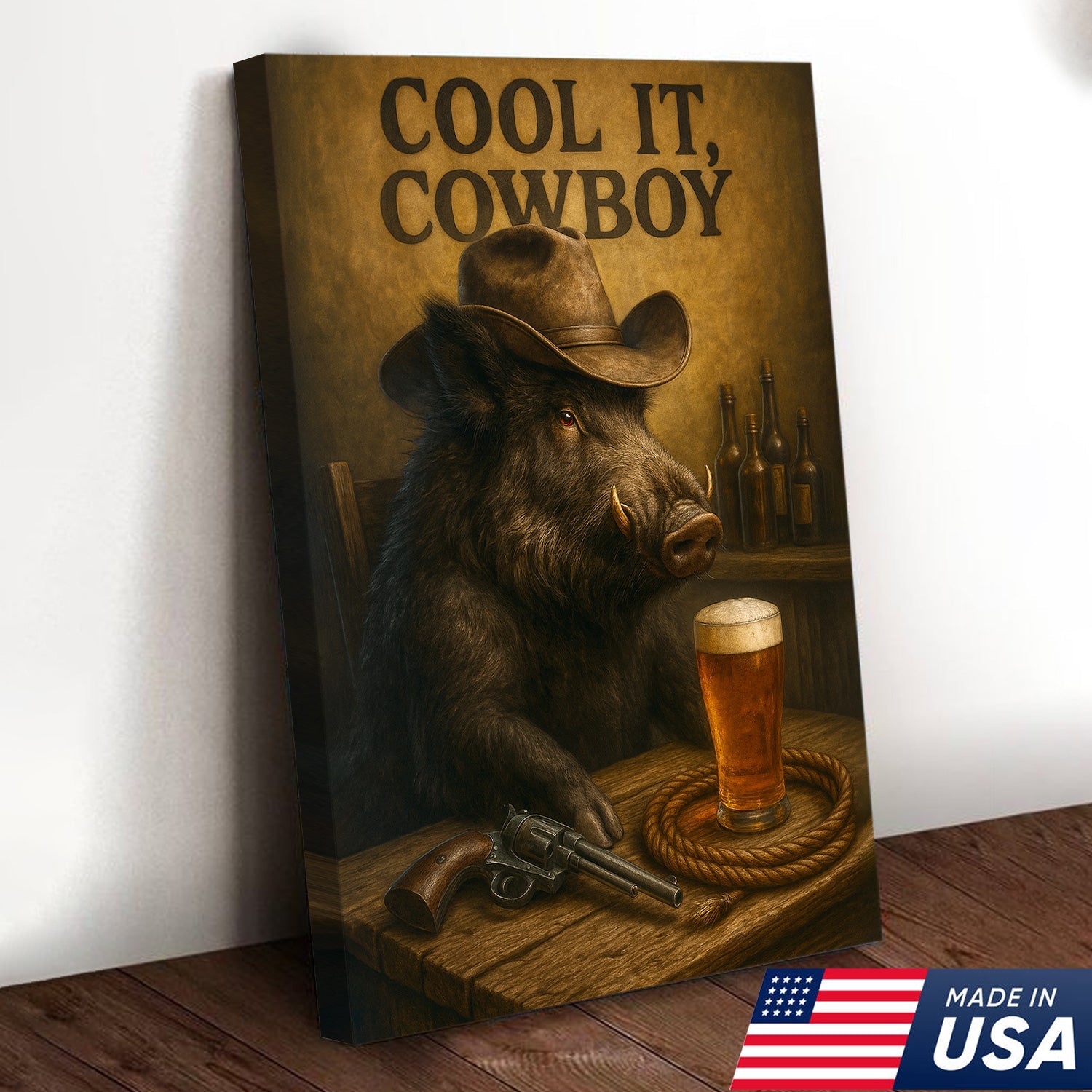 Funny Wild Boar Cowboy Canvas – Rustic Wildlife Bar Wall Art Gift for Hunters, Lodge and Cabin