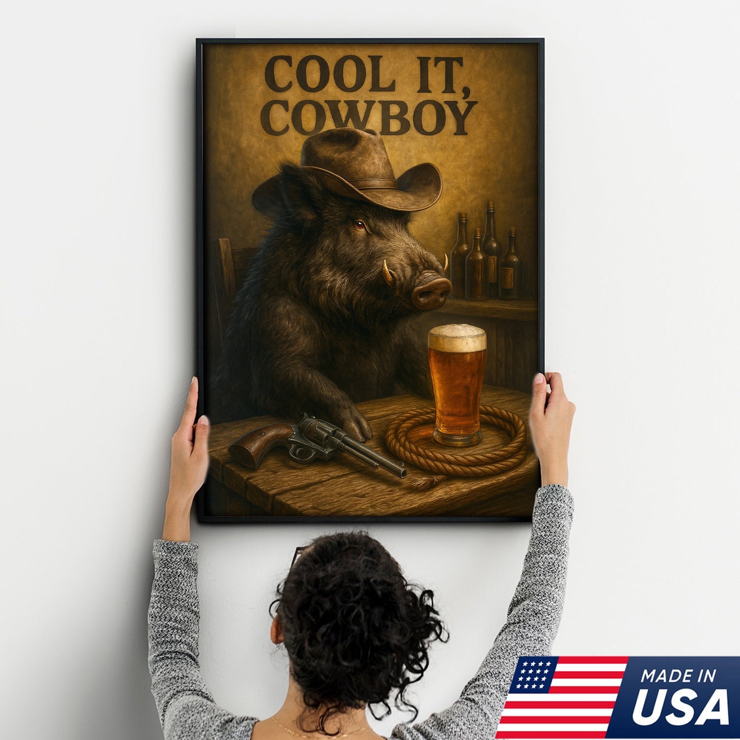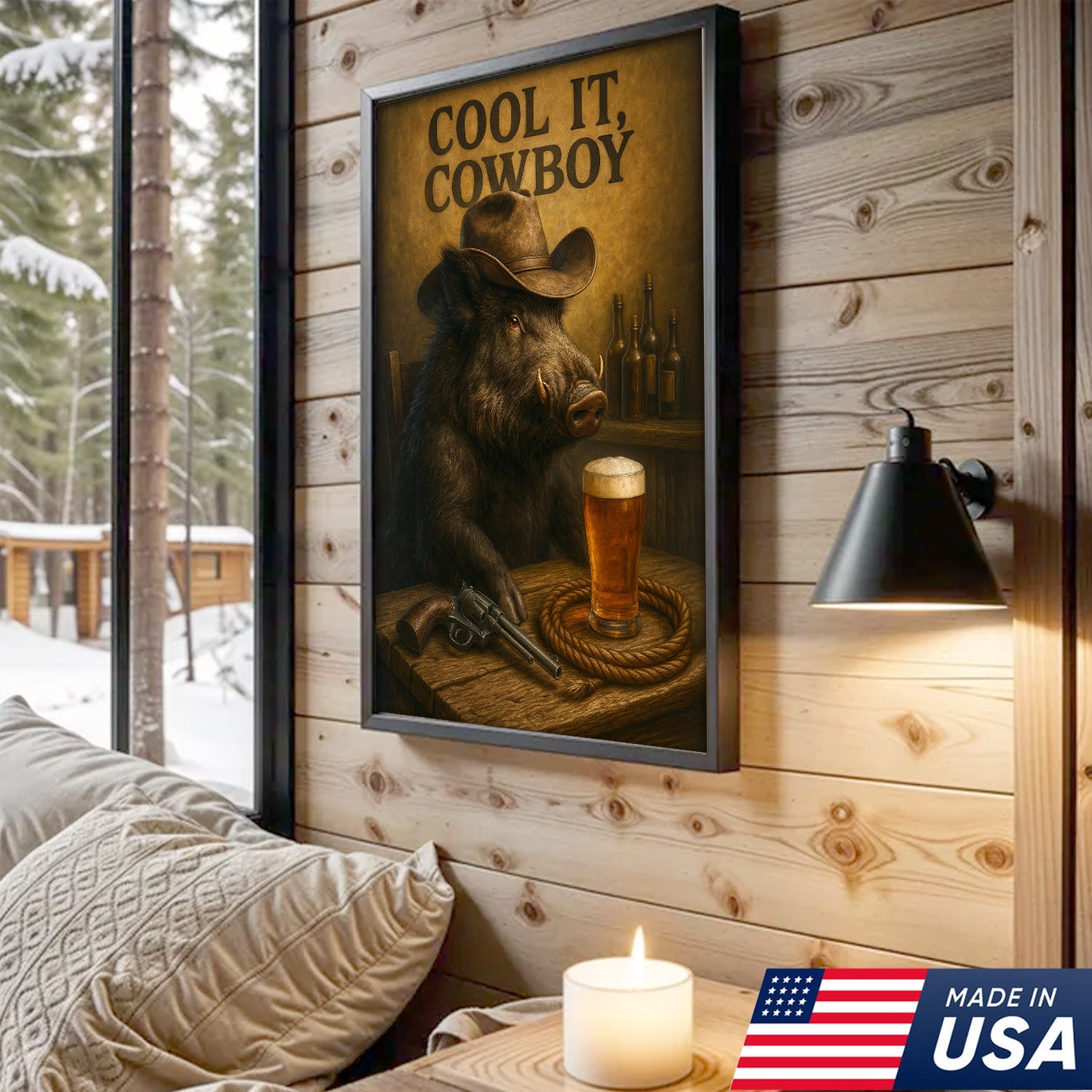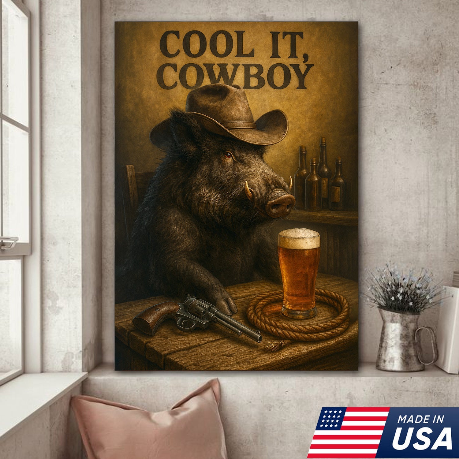 Funny Wild Boar Cowboy Canvas – Rustic Wildlife Bar Wall Art Gift for Hunters, Lodge and Cabin
