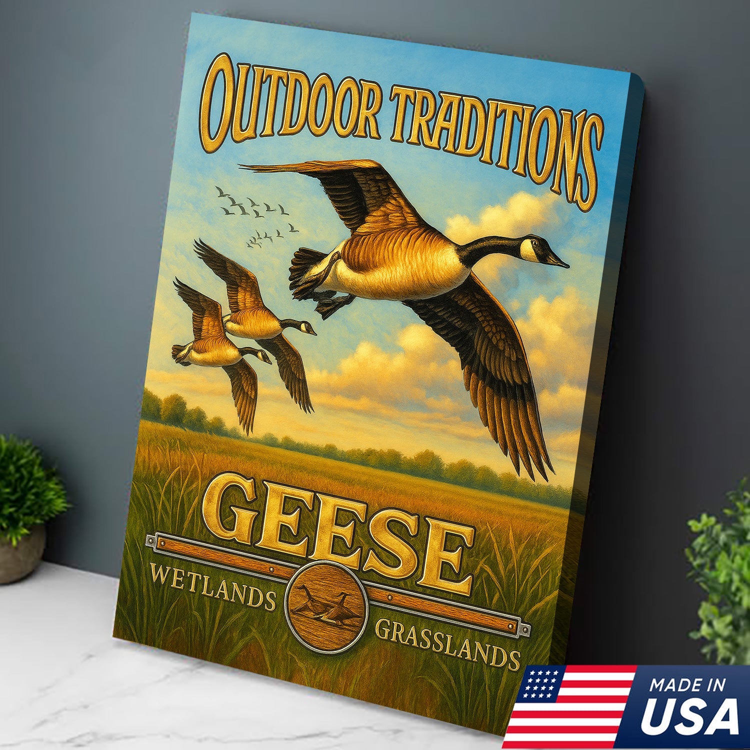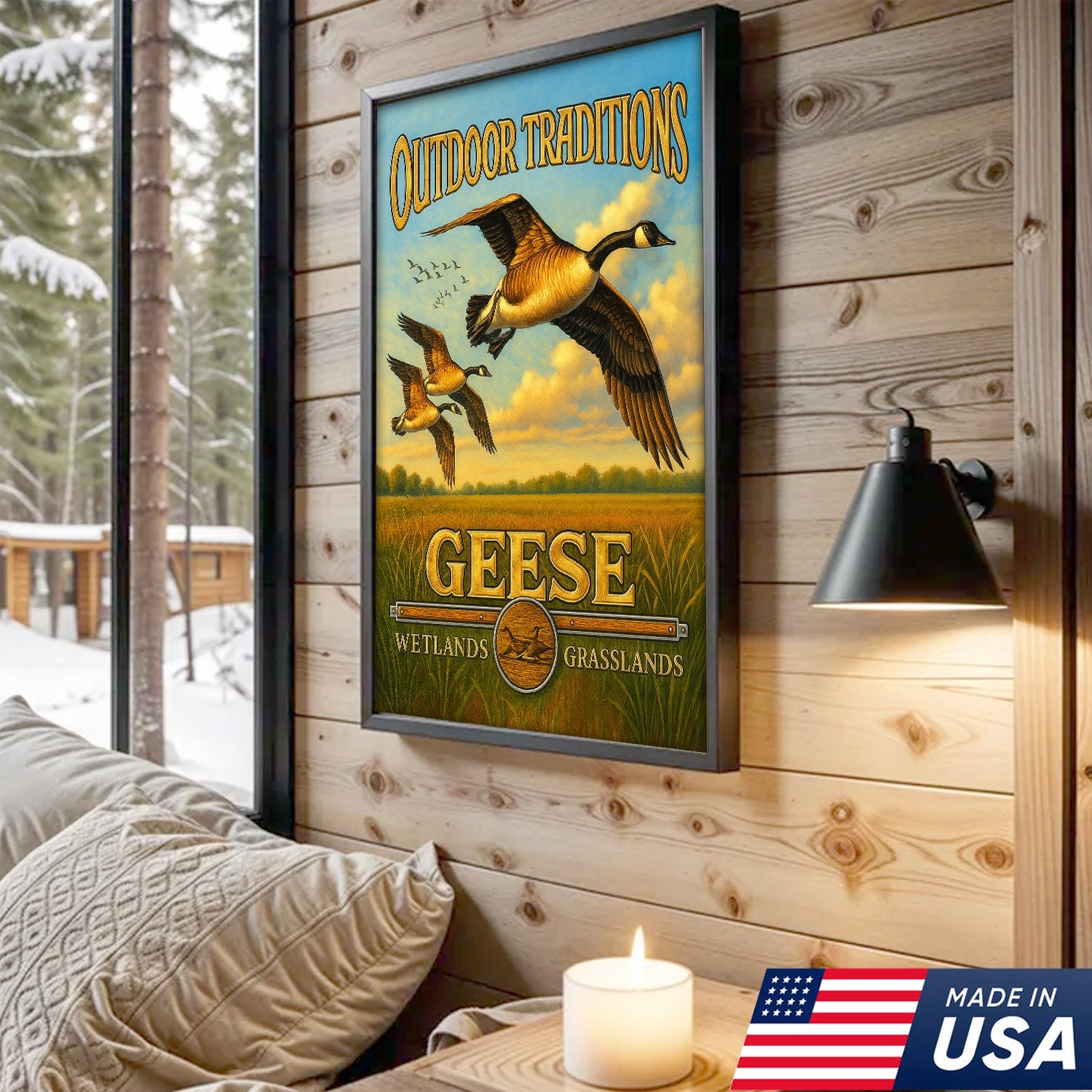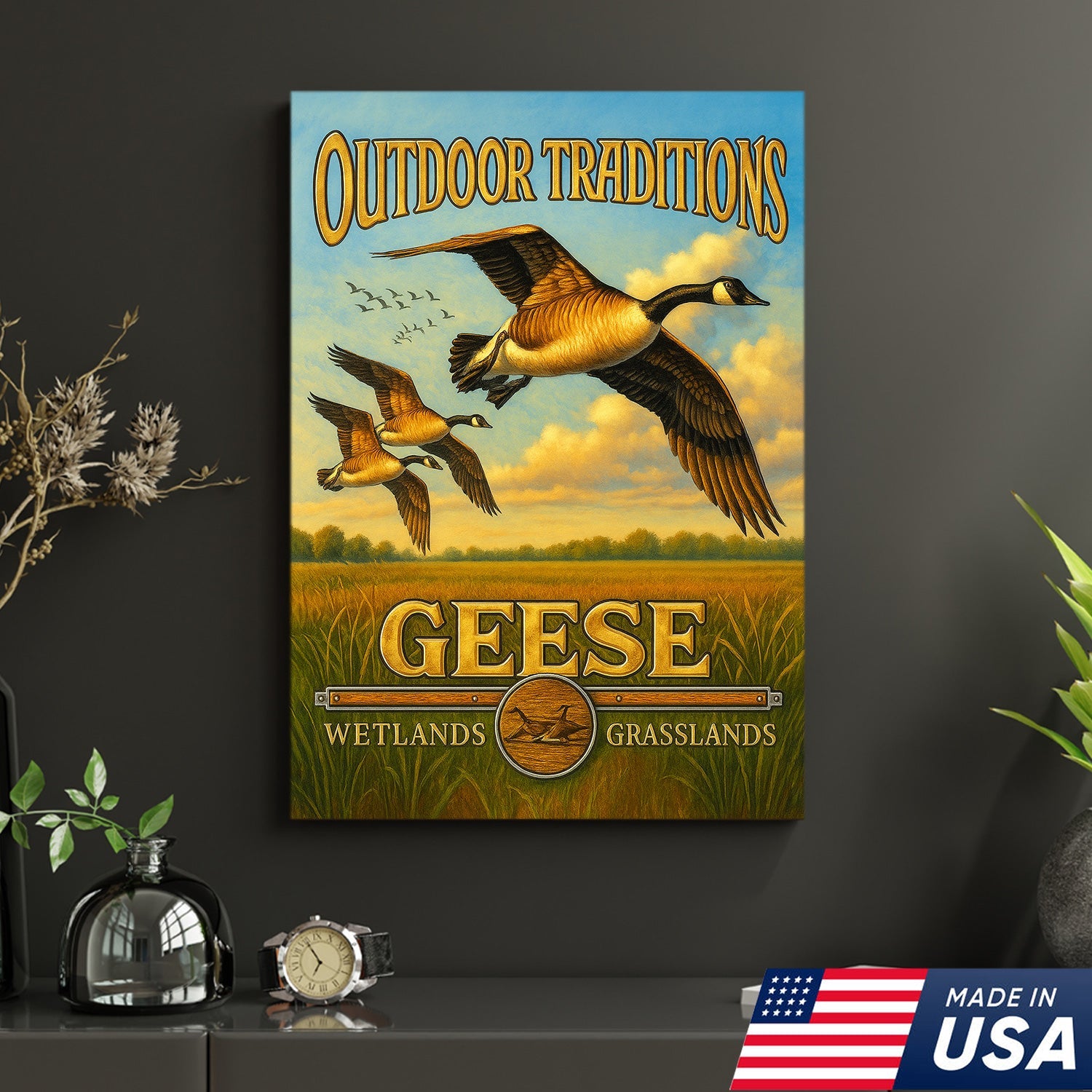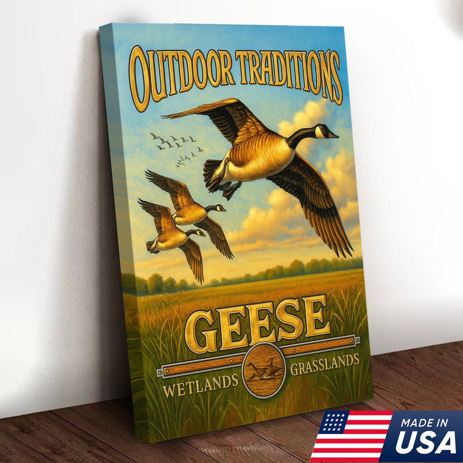 Geese Hunting Canvas Wall Art – Rustic Wildlife Wetlands Decor Gift for Hunters & Bird Lovers