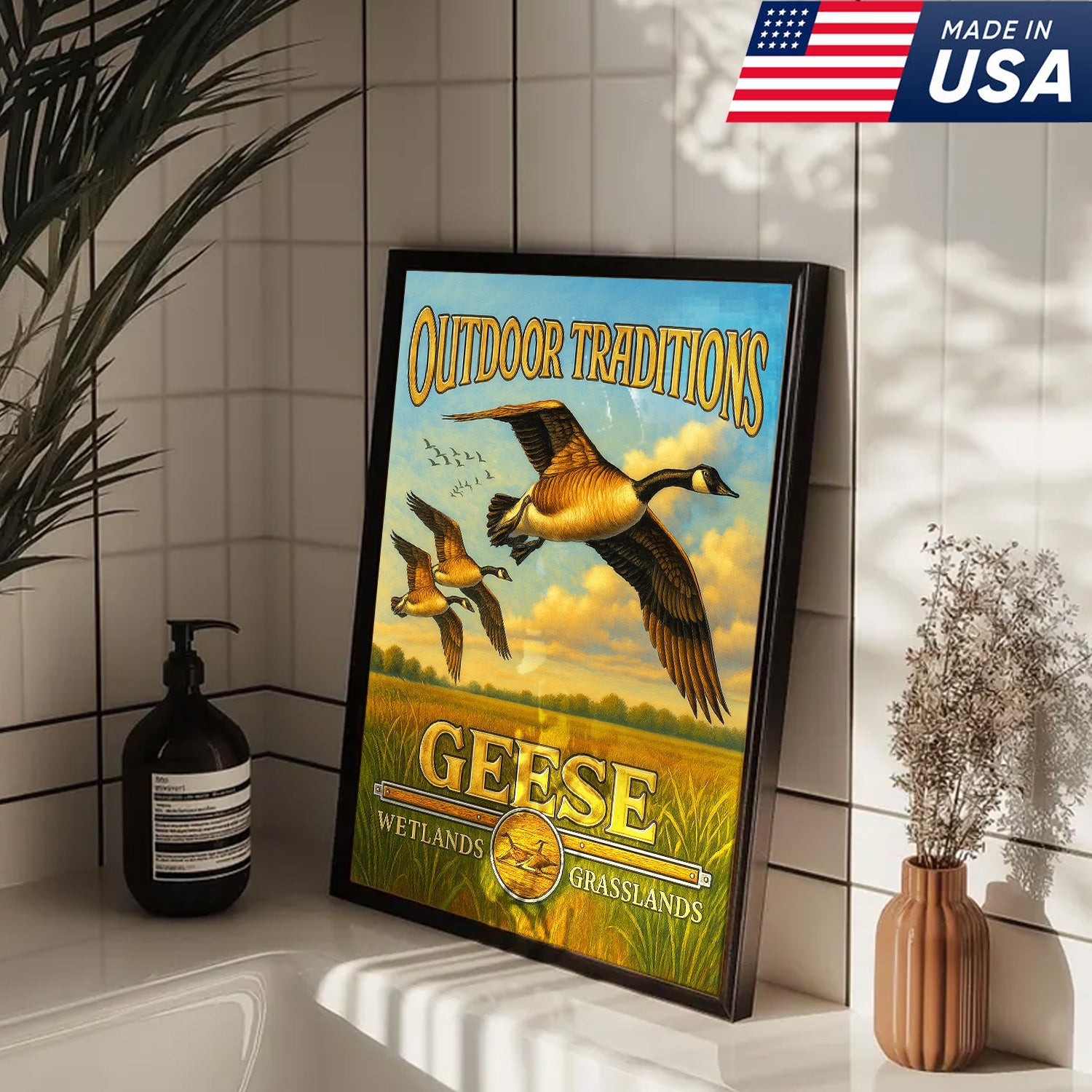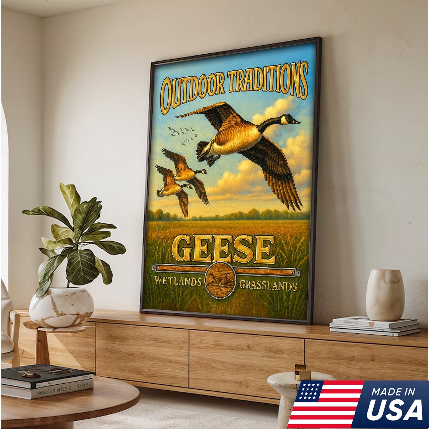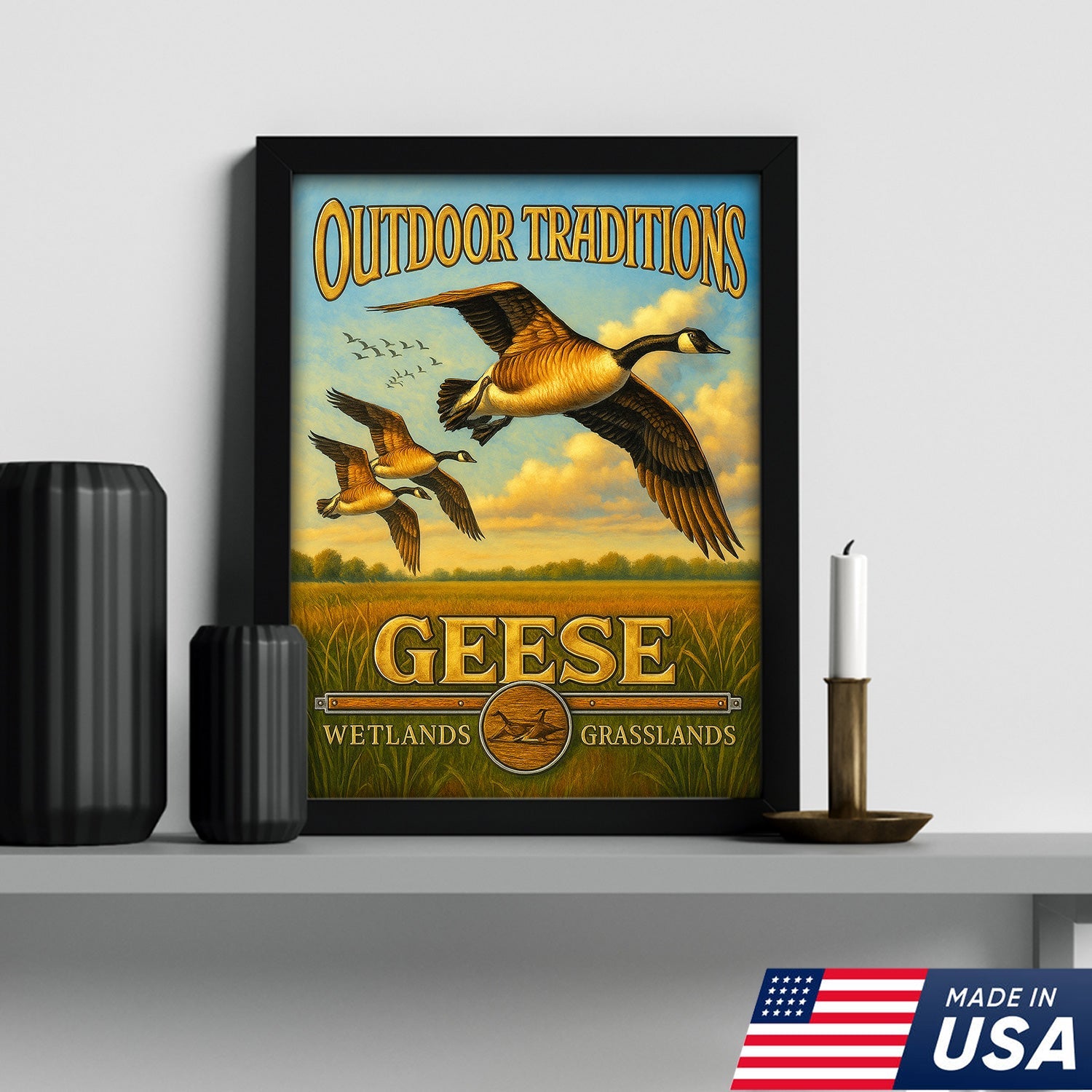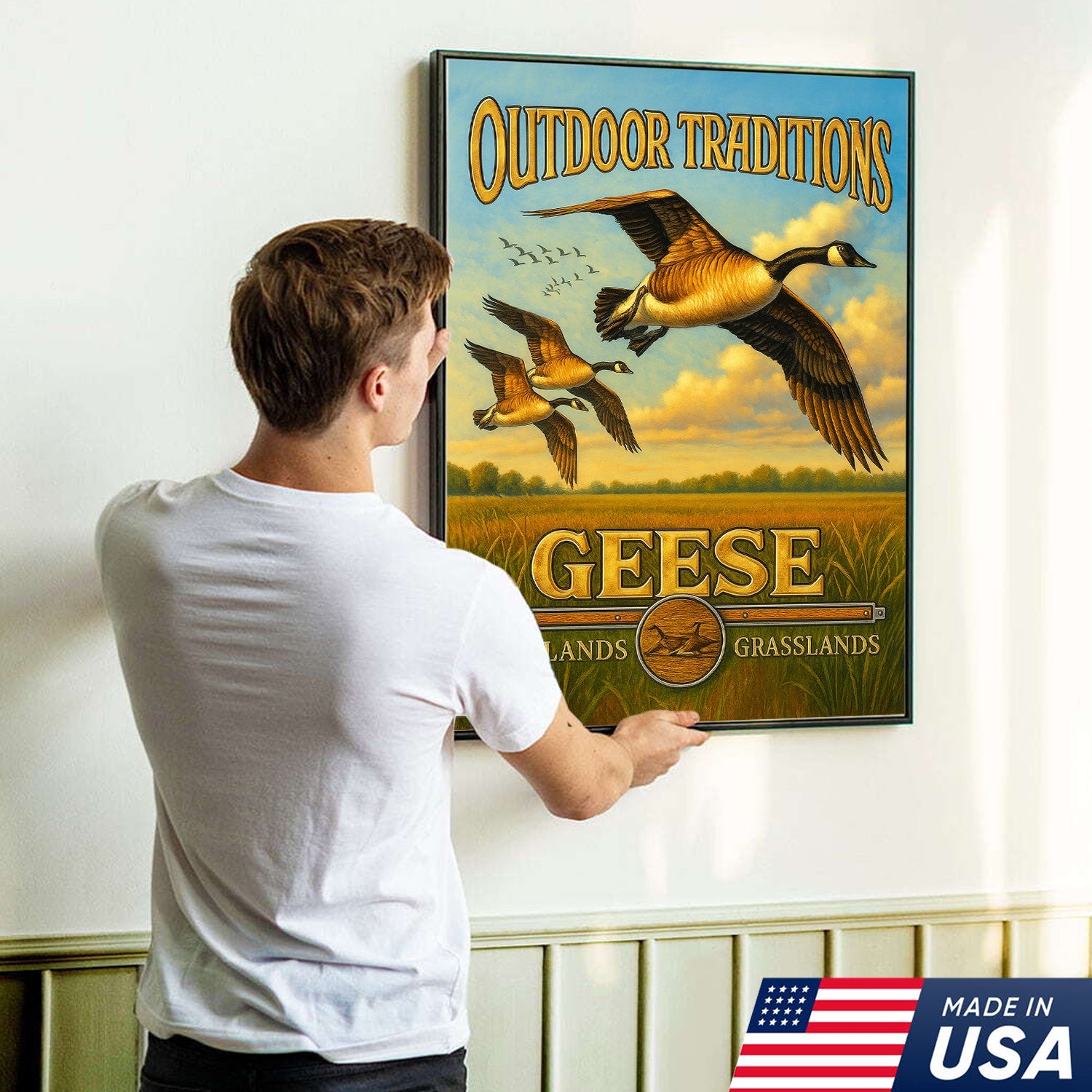 Geese Hunting Canvas Wall Art – Rustic Wildlife Wetlands Decor Gift for Hunters & Bird Lovers