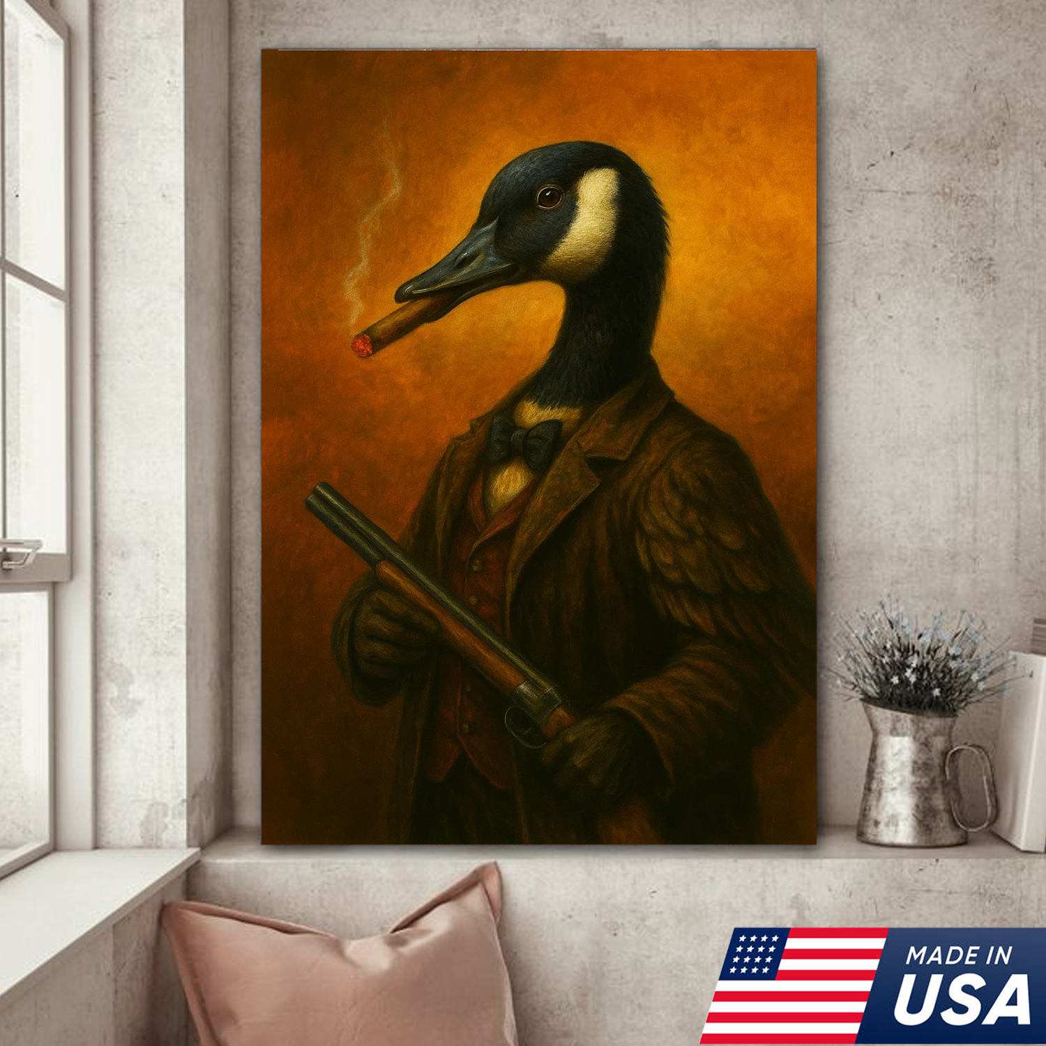 Goose Hunter Canvas Wall Art – Funny Canada Goose Hunting Gift for Men, Lodge & Man Cave Decor