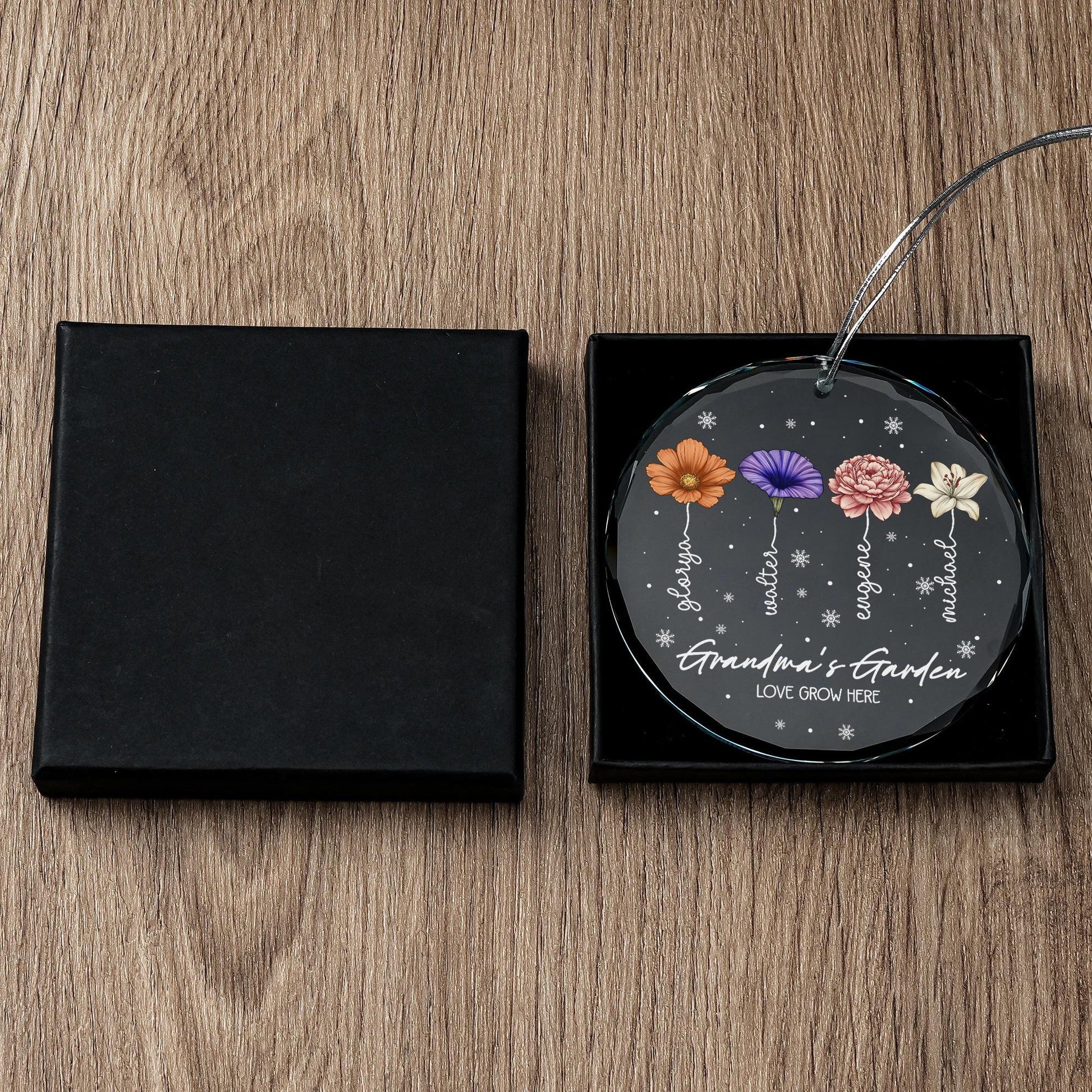 Grandma's Garden Birth Flower Personalized Christmas Crystal Ornament Gift for Grandma from Grandchildren