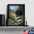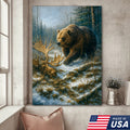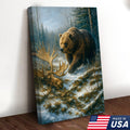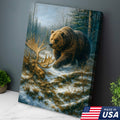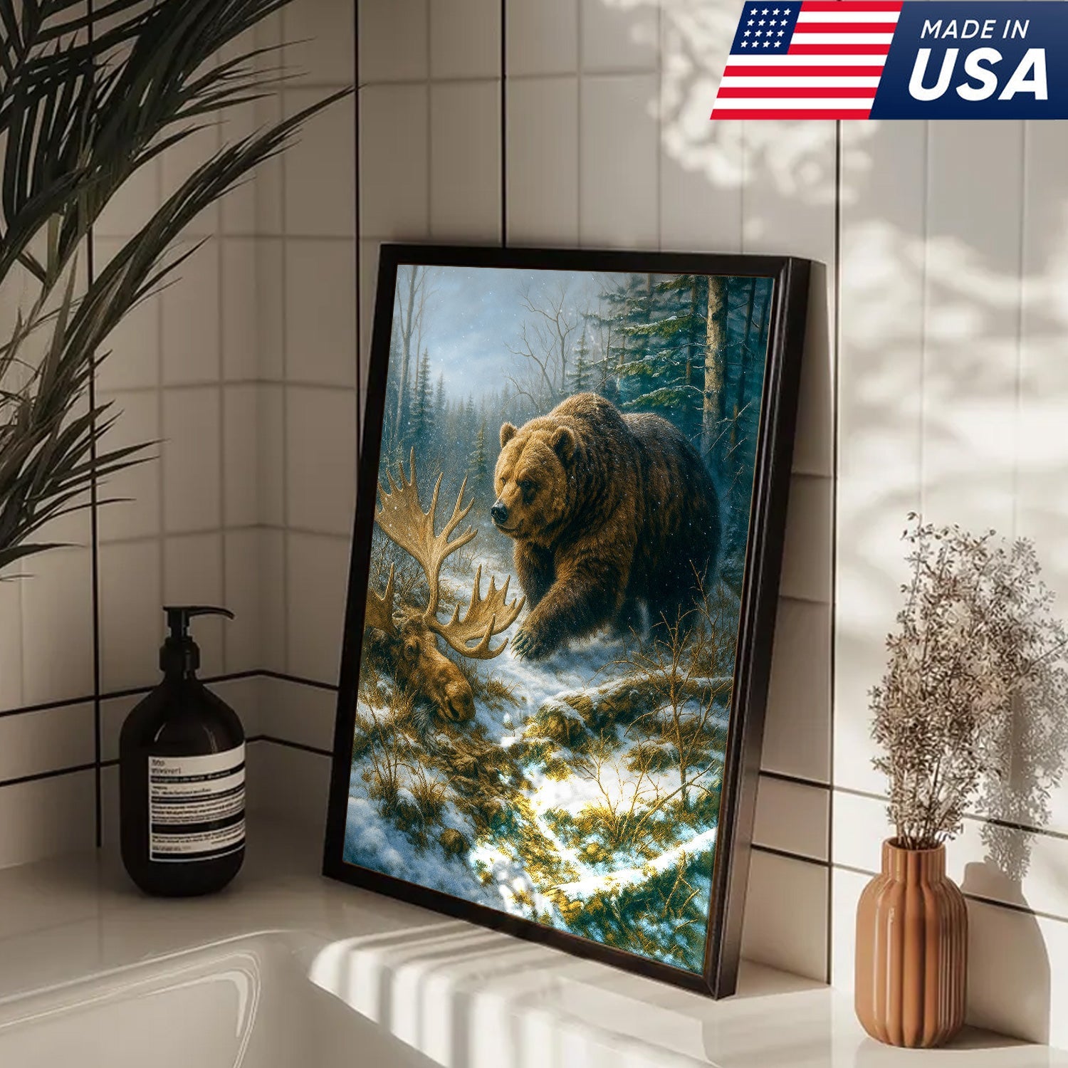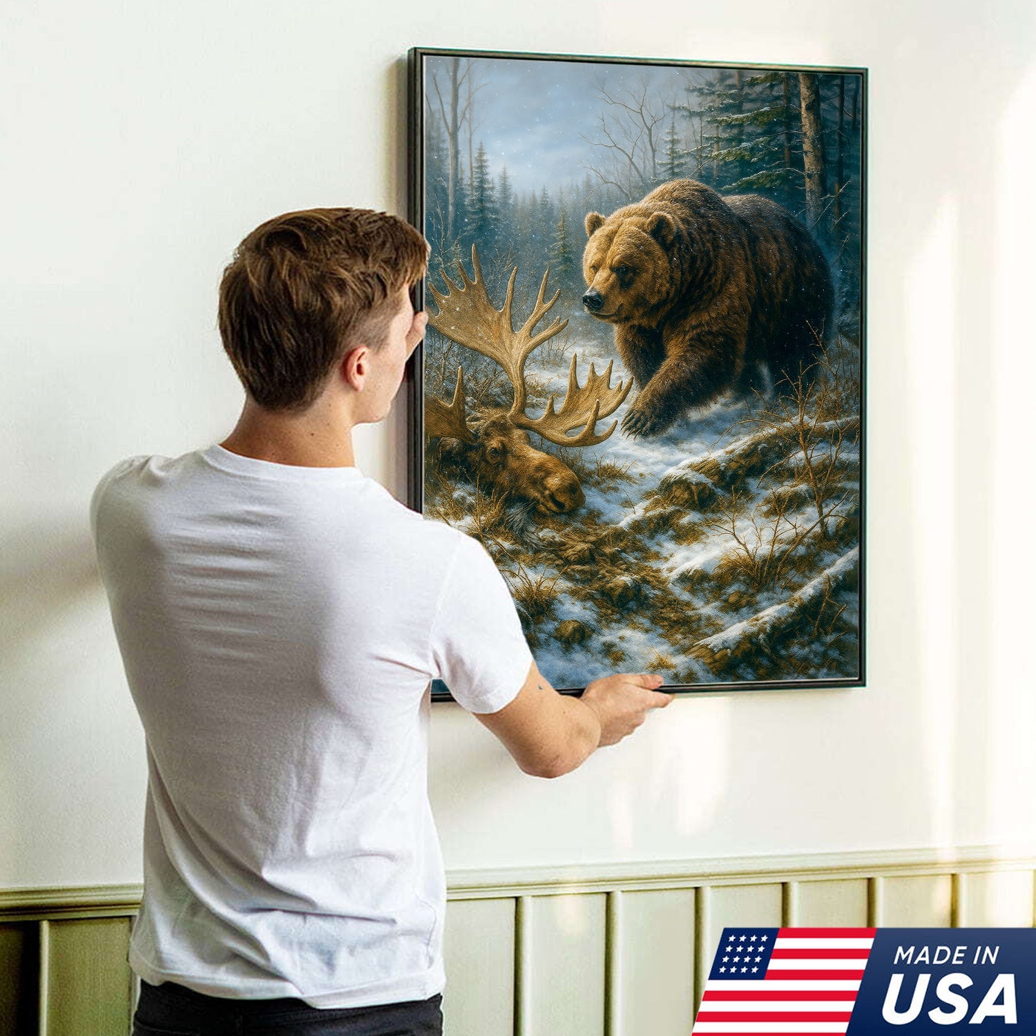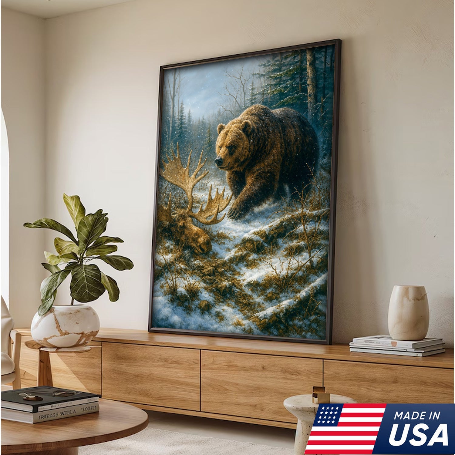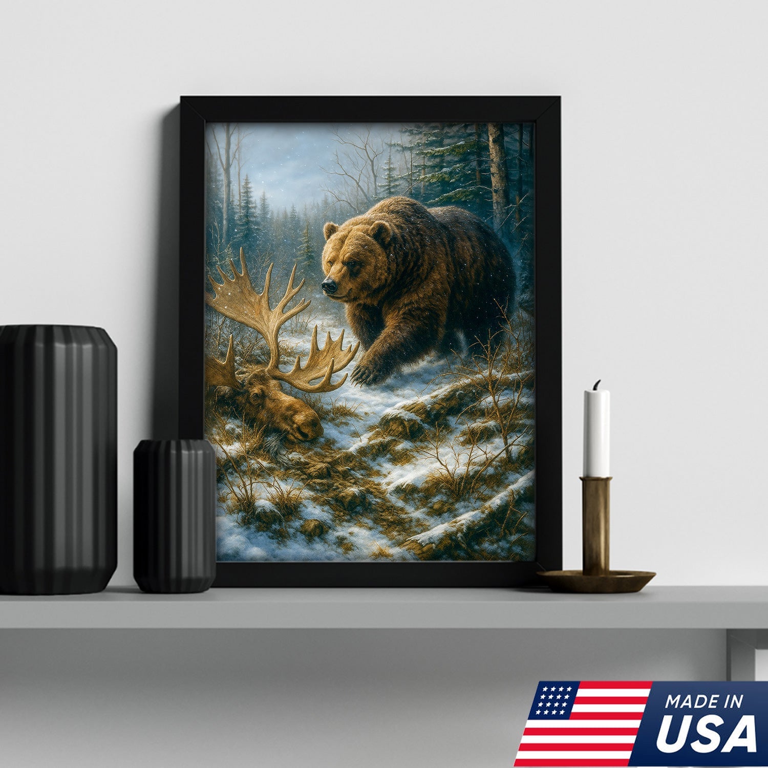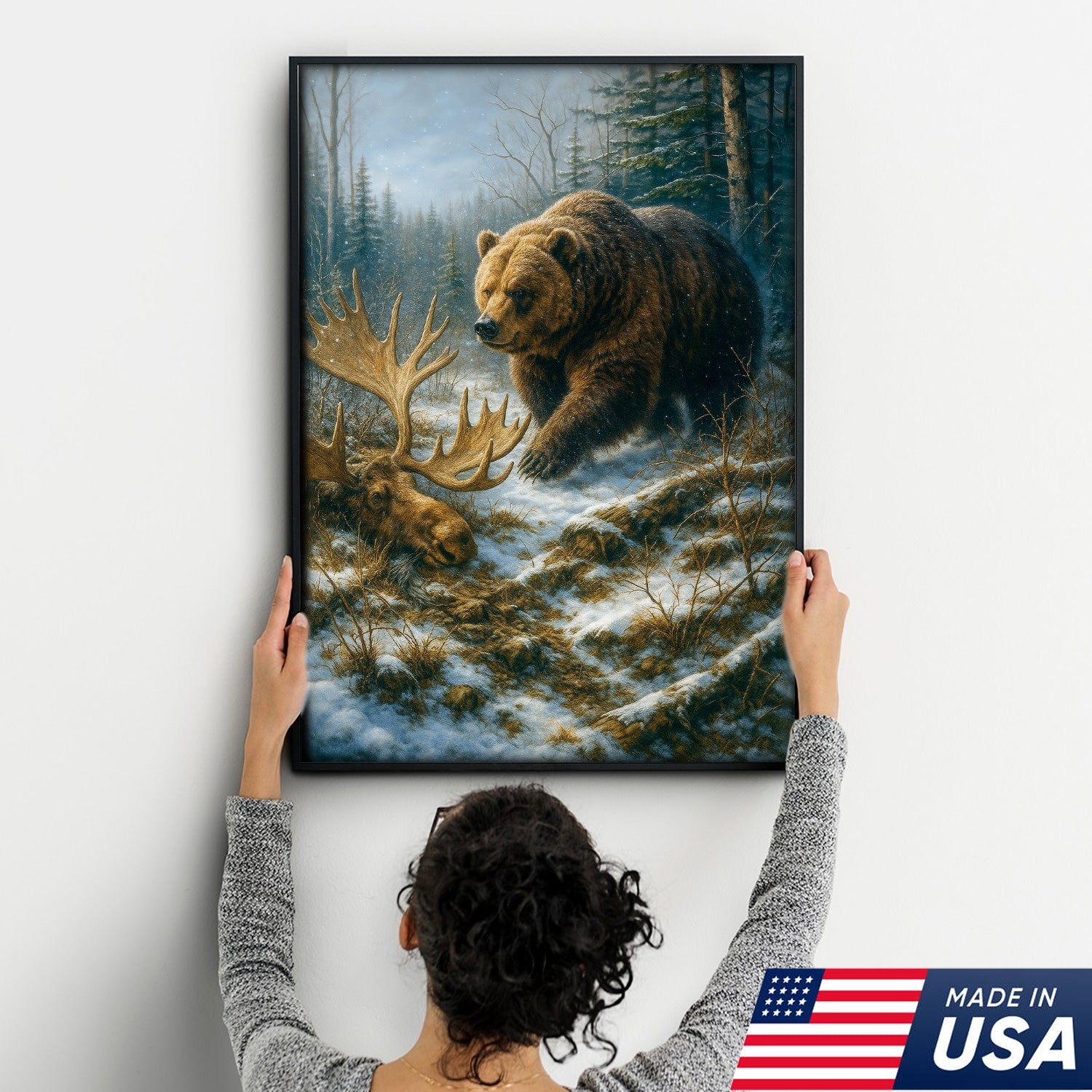 Grizzly Bear and Moose Wilderness Wall Art – Rustic Hunting Canvas for Cabin & Lodge Decor