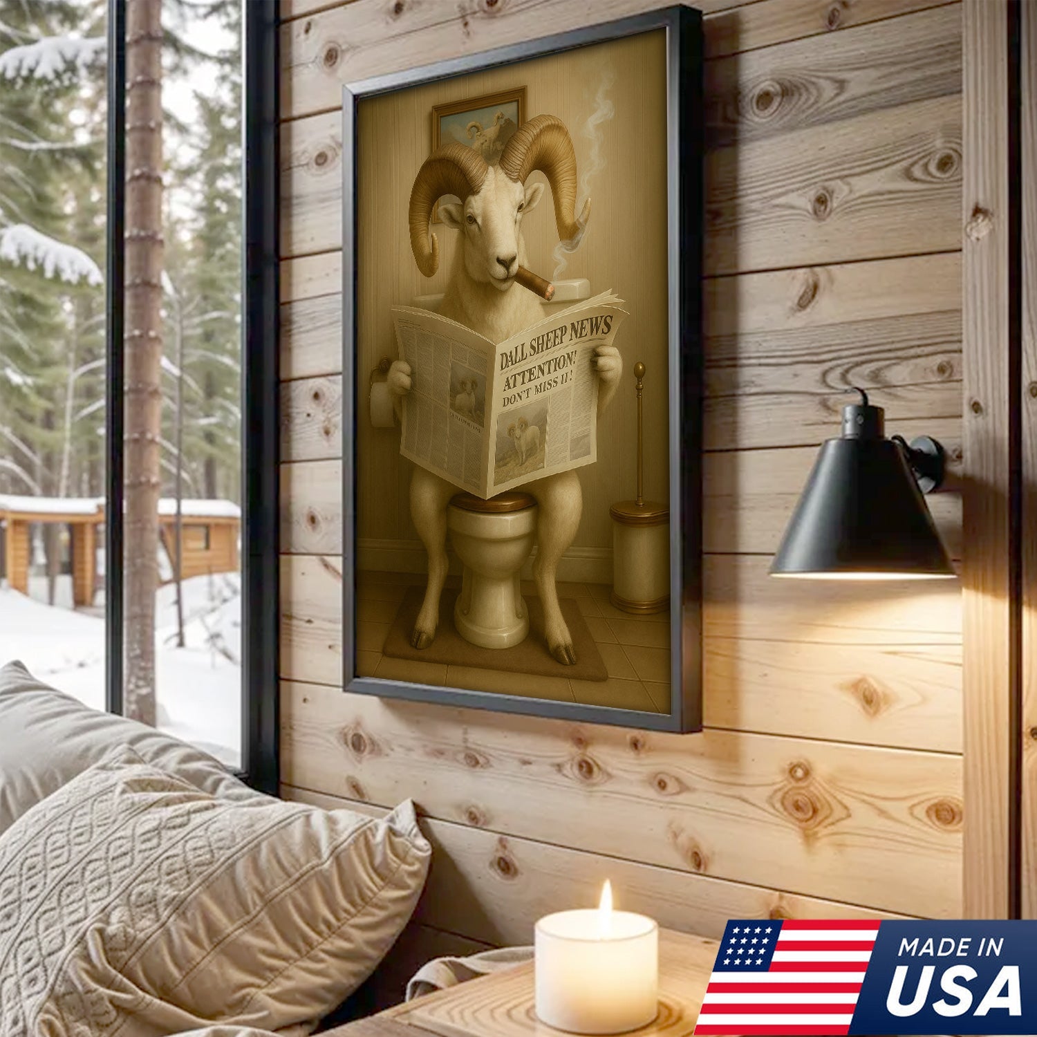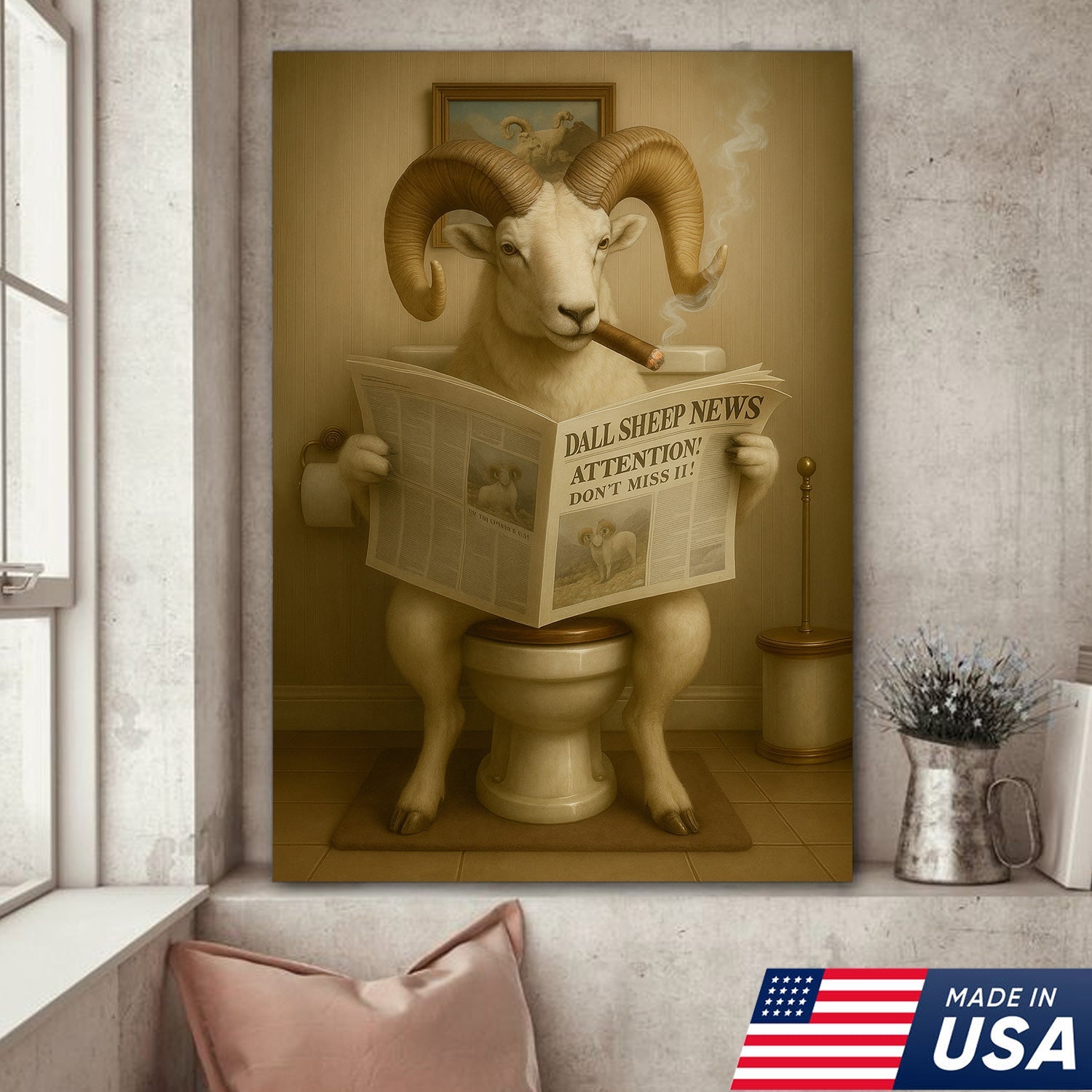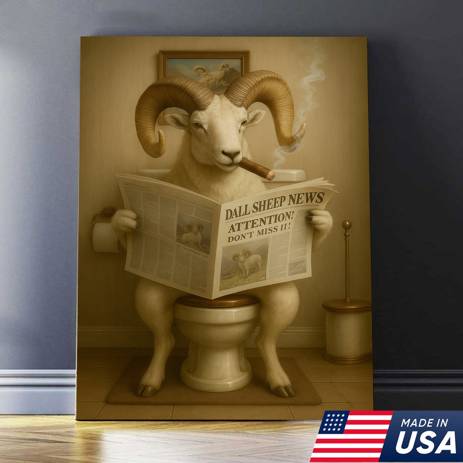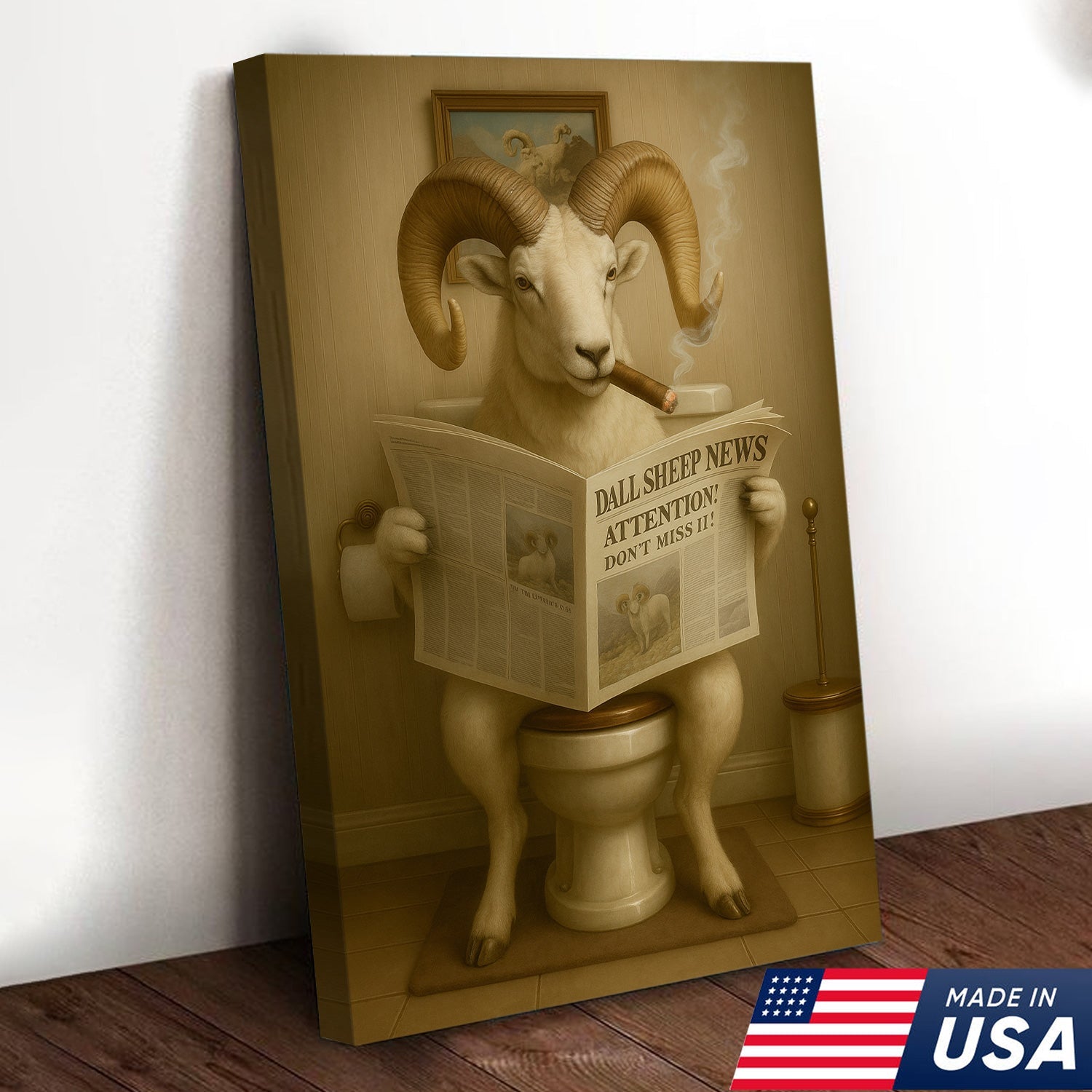 Hilarious Dall Sheep Canvas Wall Art – Rustic Bathroom Decor Perfect for Hunters and Nature Lovers