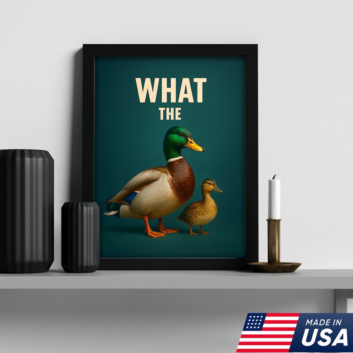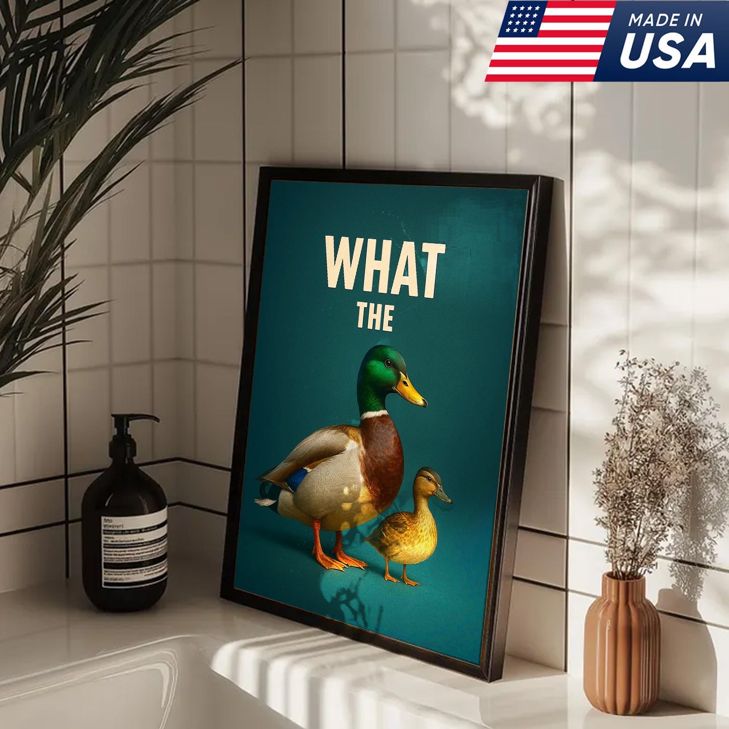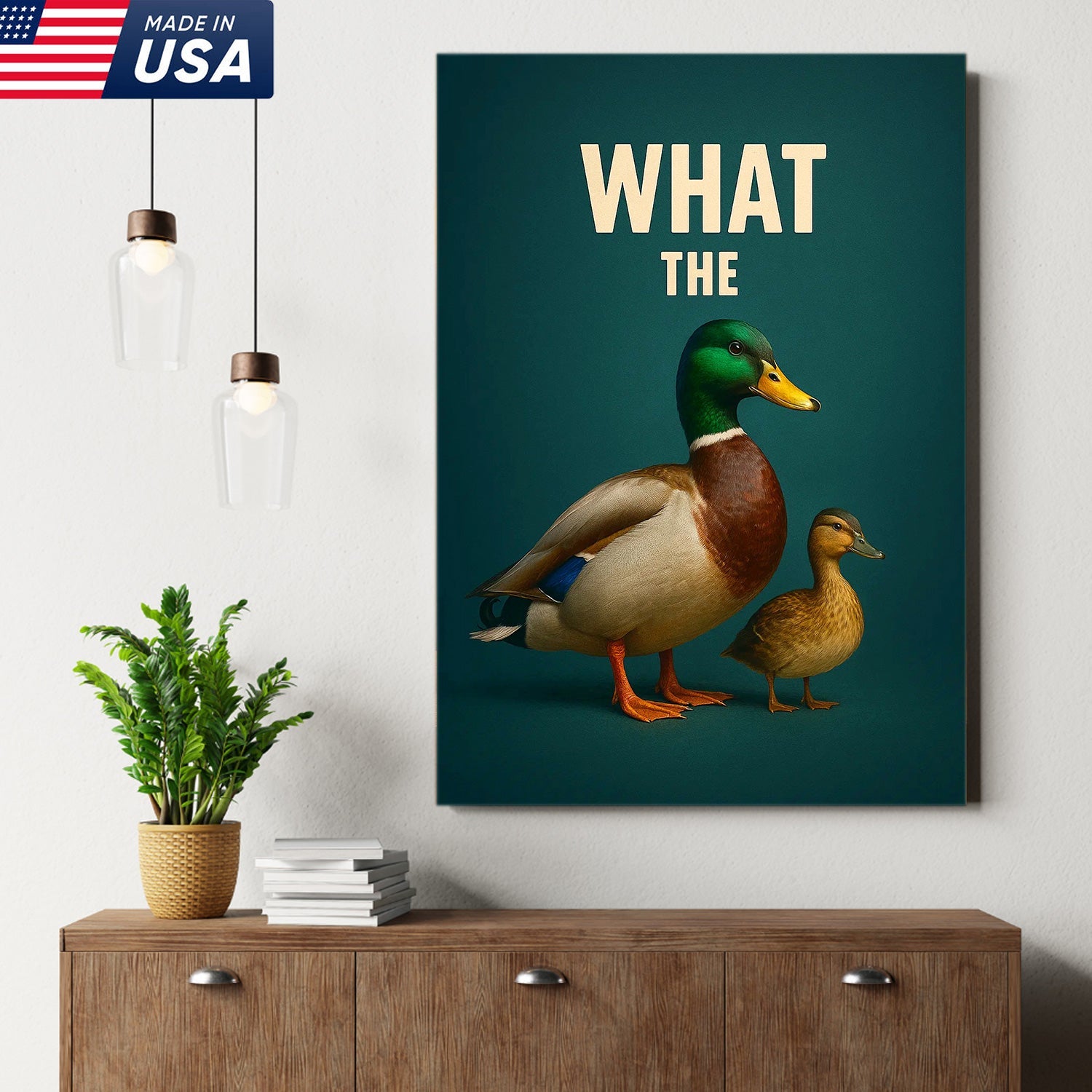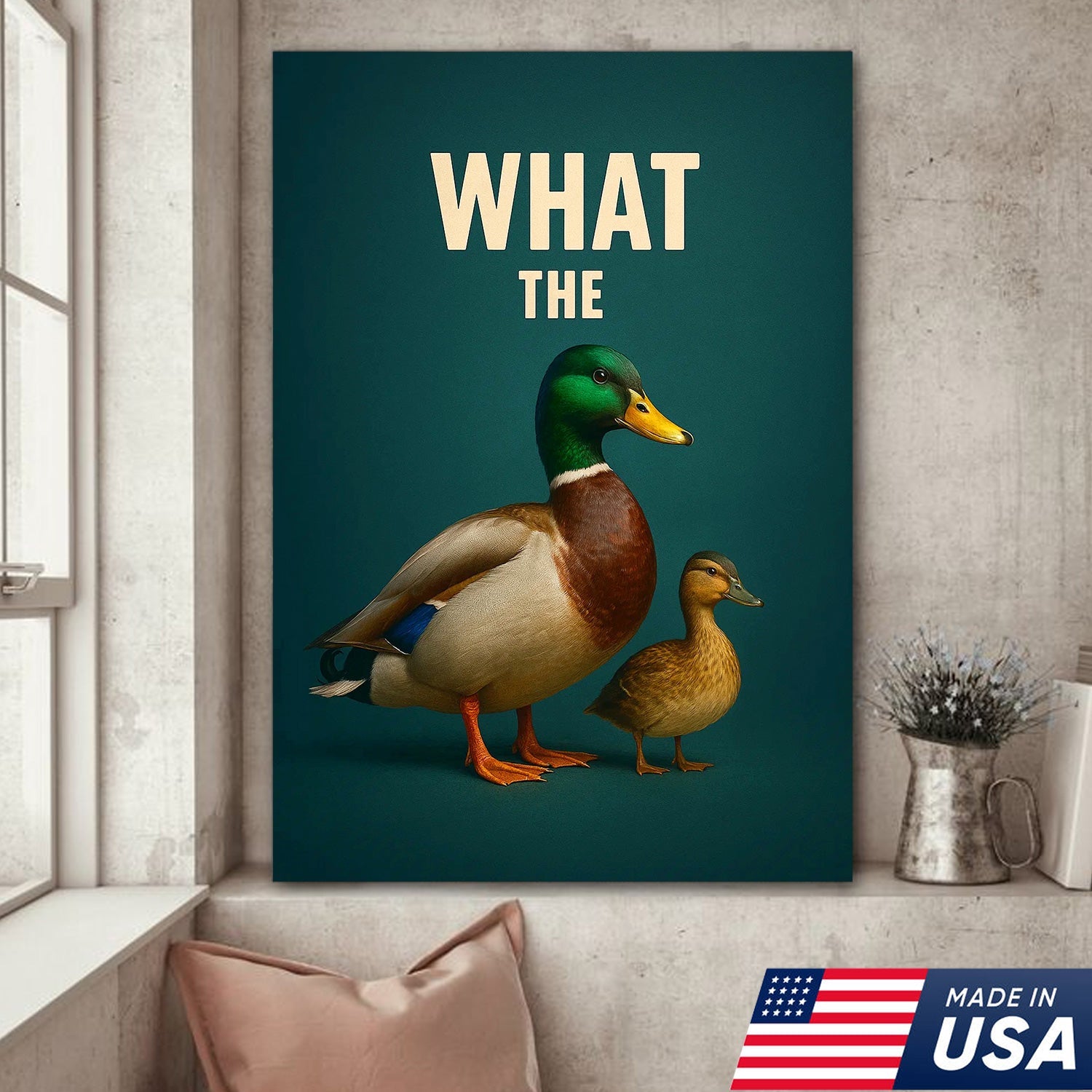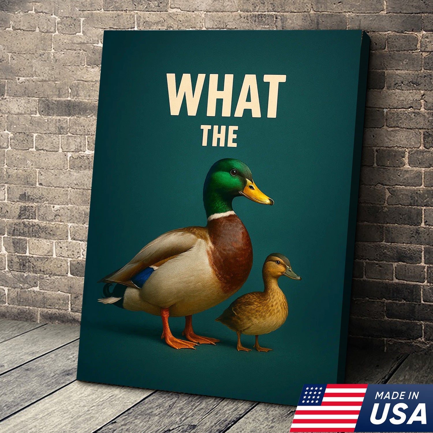 Hilarious Duck Wall Art – Quirky Mallard Canvas Print – Unique Rustic Lodge Bathroom Decor