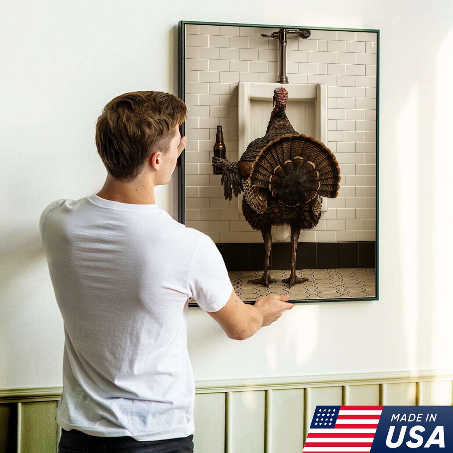 Hilarious Turkey Canvas Wall Art – Funny Bathroom Humor Decor – Rustic Hunting Cabin Gag Gift – Quirky Lodge Farmhouse Animal Artwork