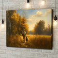 Hunting Canvas Wall Art – Hunter Walking with Dog in Autumn Forest – Rustic Wildlife Wall Decor for Cabin and Lodge