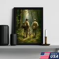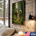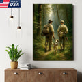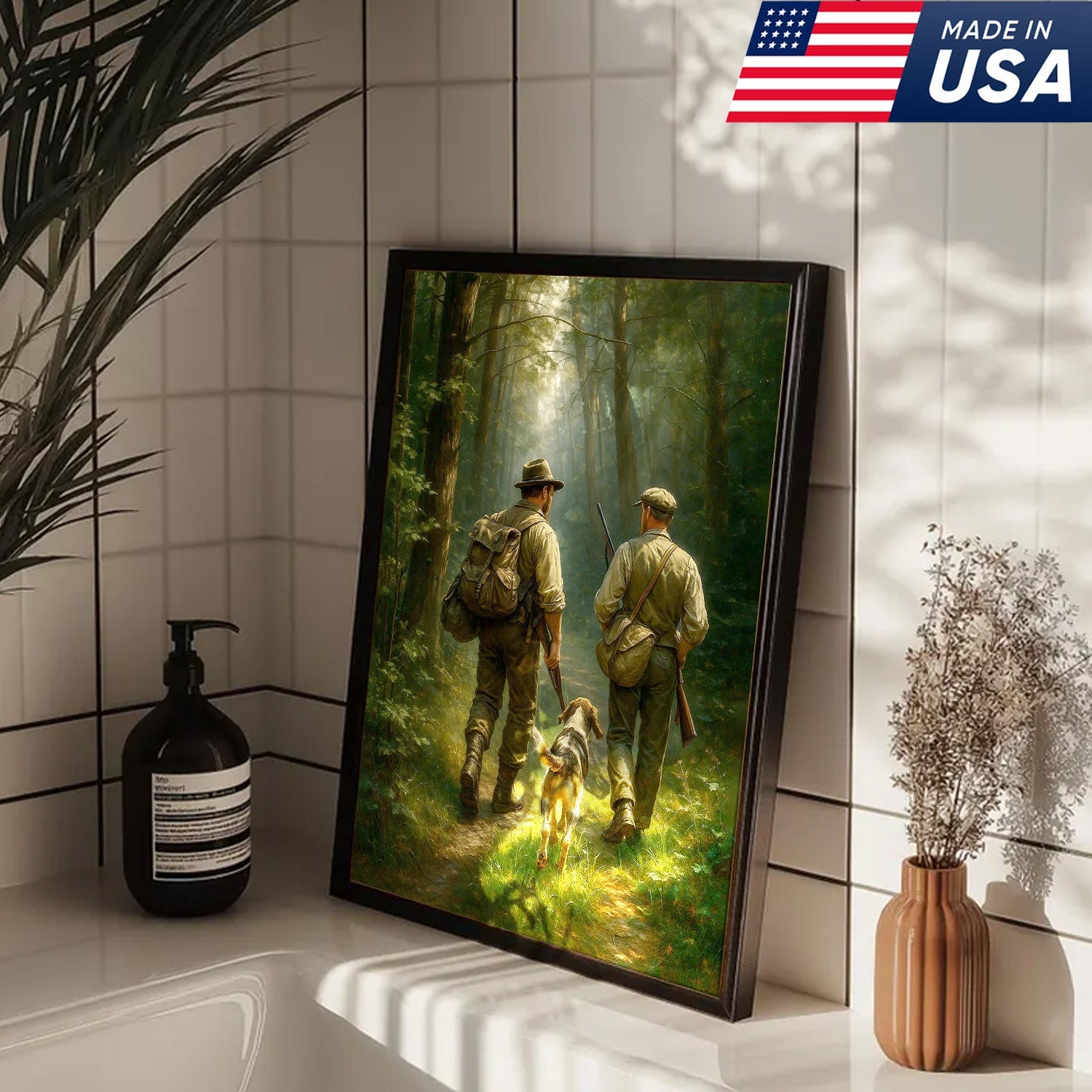 Hunting Canvas Wall Art – Hunters Walking with Dog in Forest – Rustic Cabin Decor for Lodge and Outdoor Enthusiasts