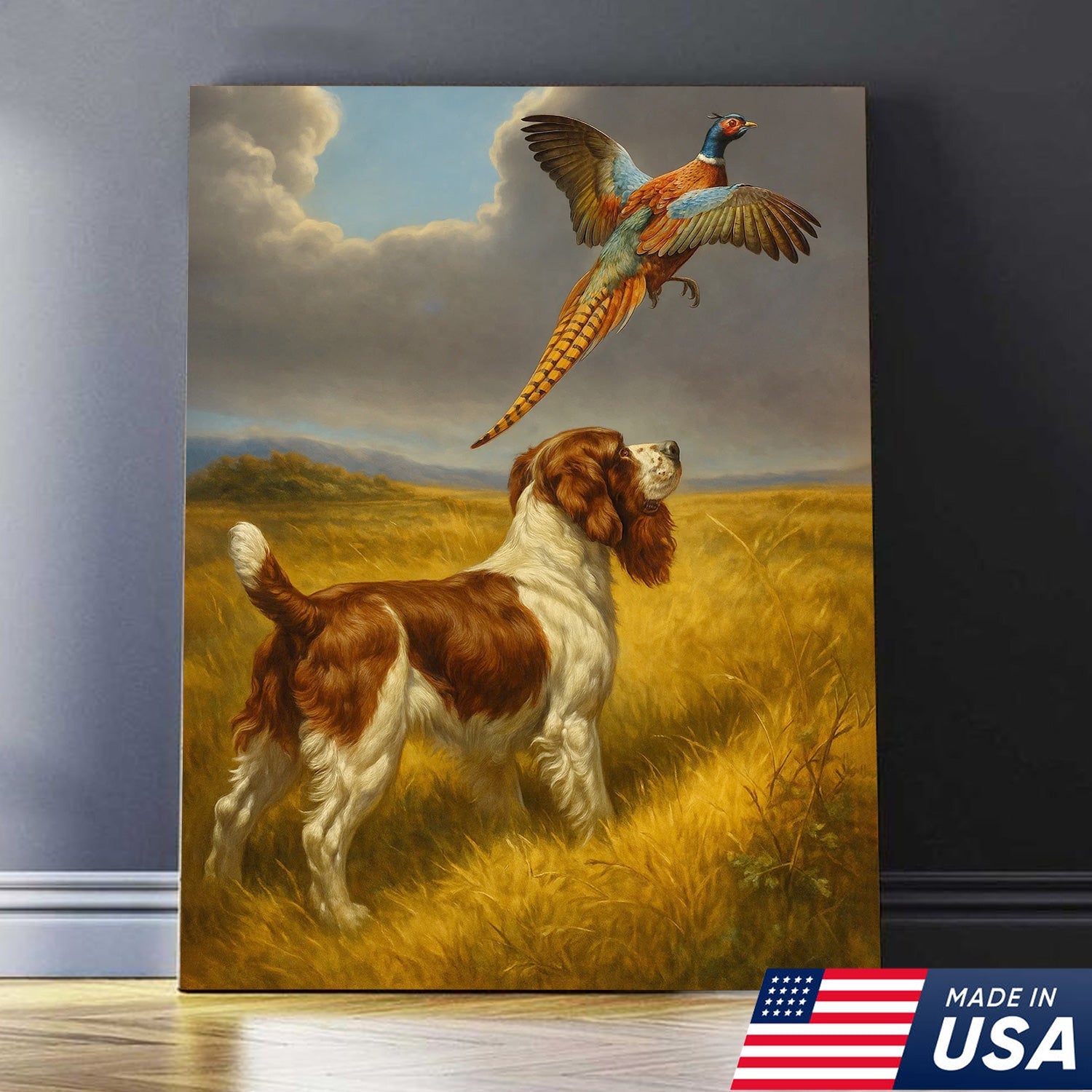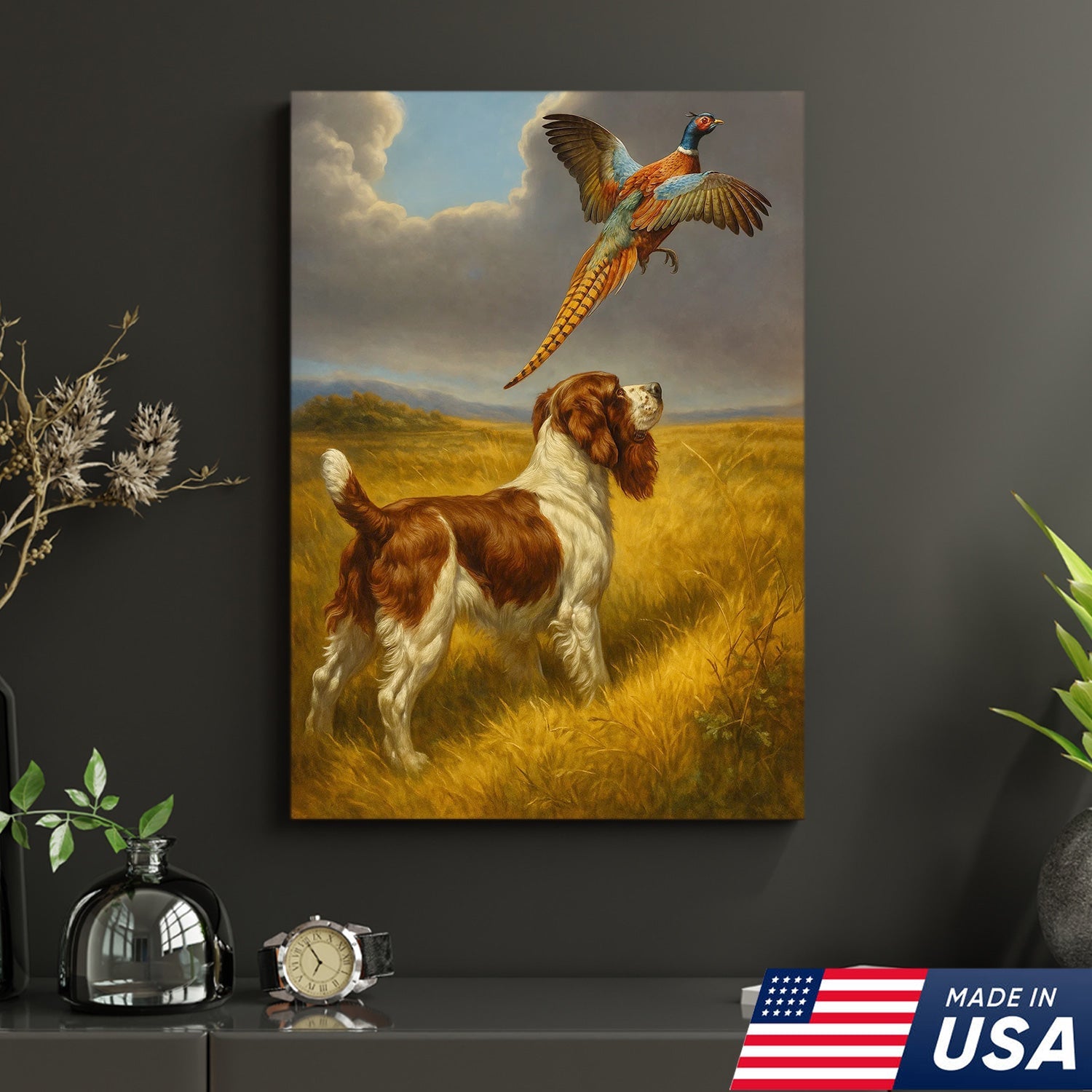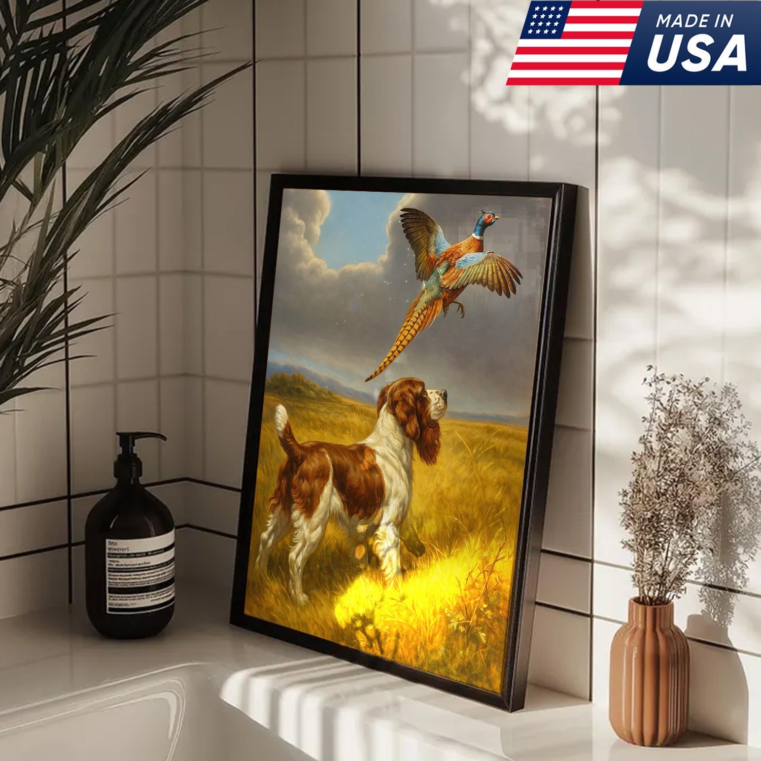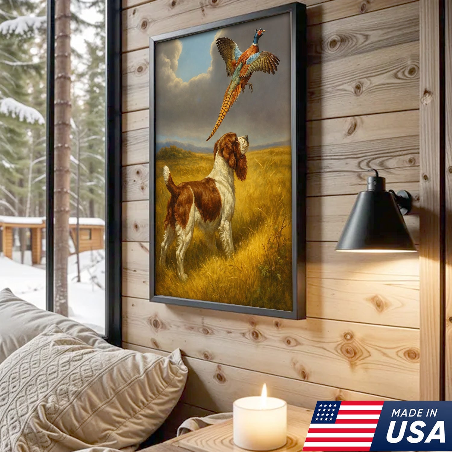 Hunting Dog and Pheasant Canvas Wall Art – Rustic Wildlife Scene – Lodge and Cabin Decor