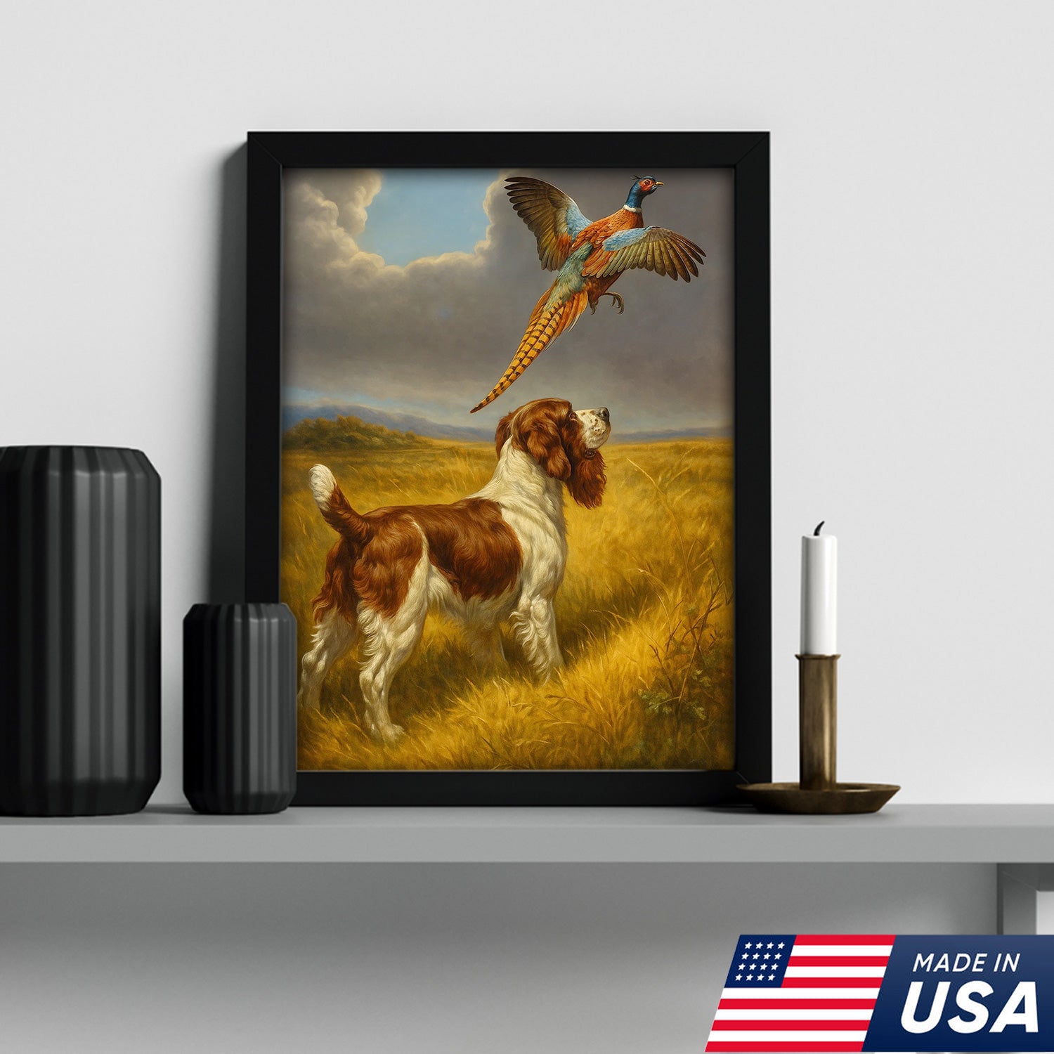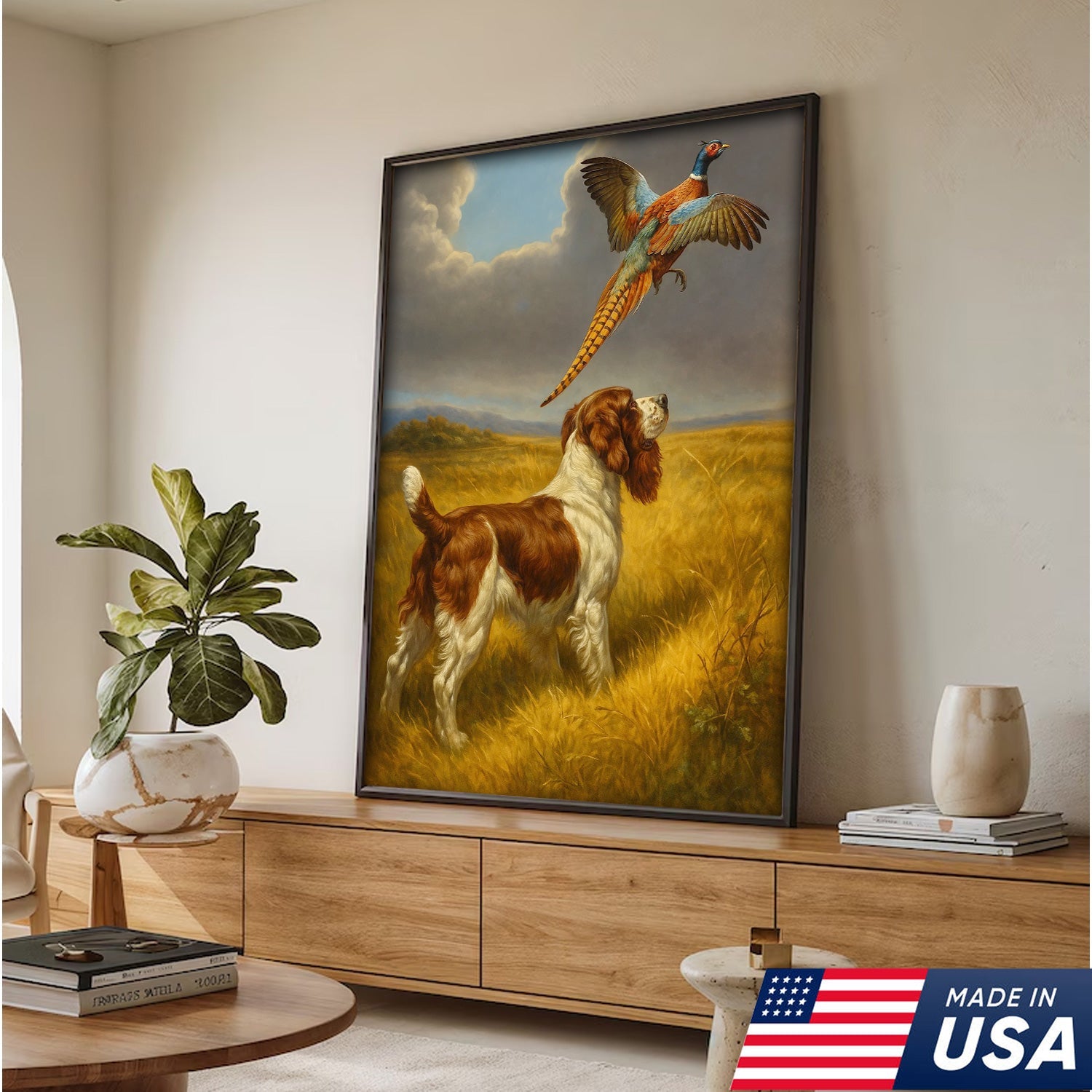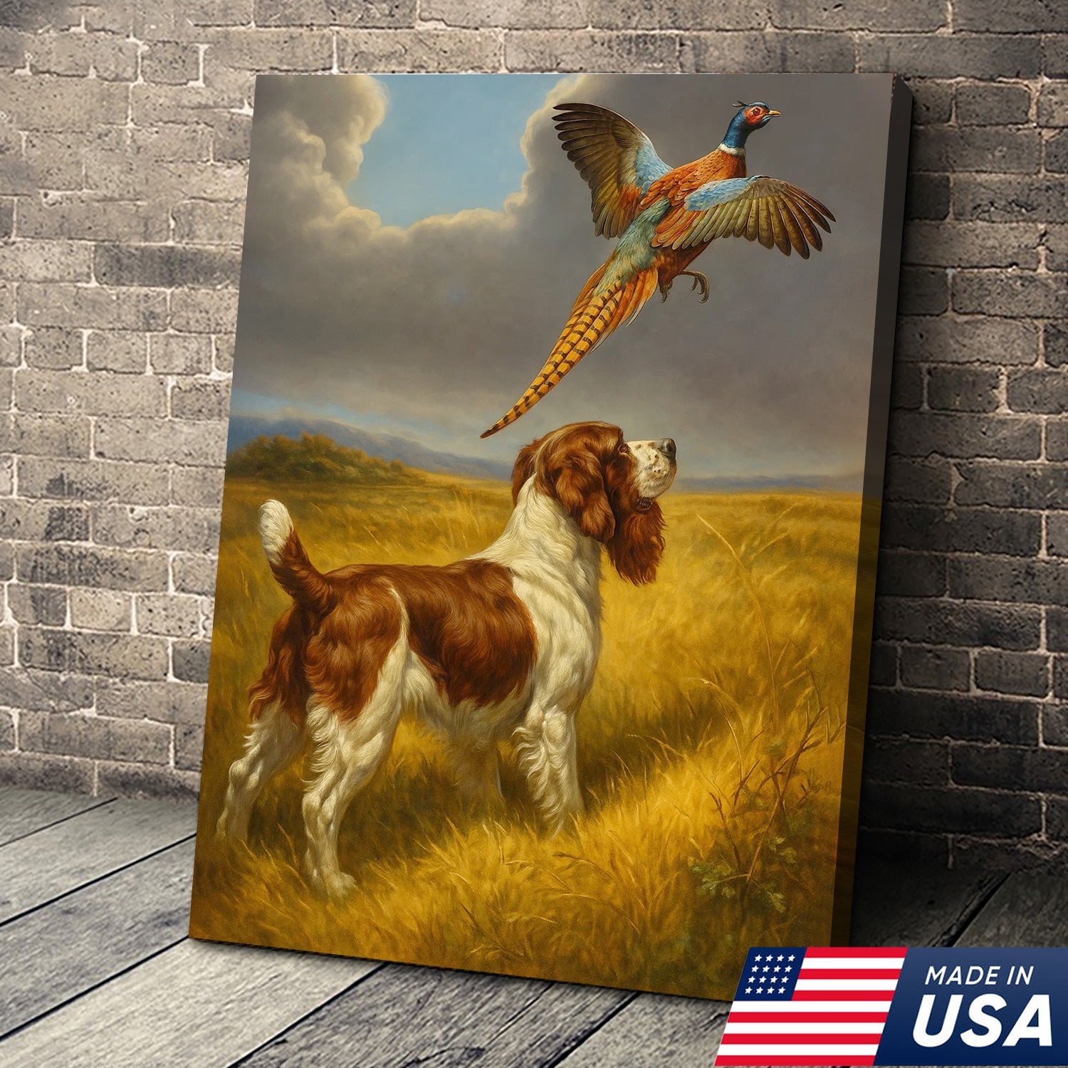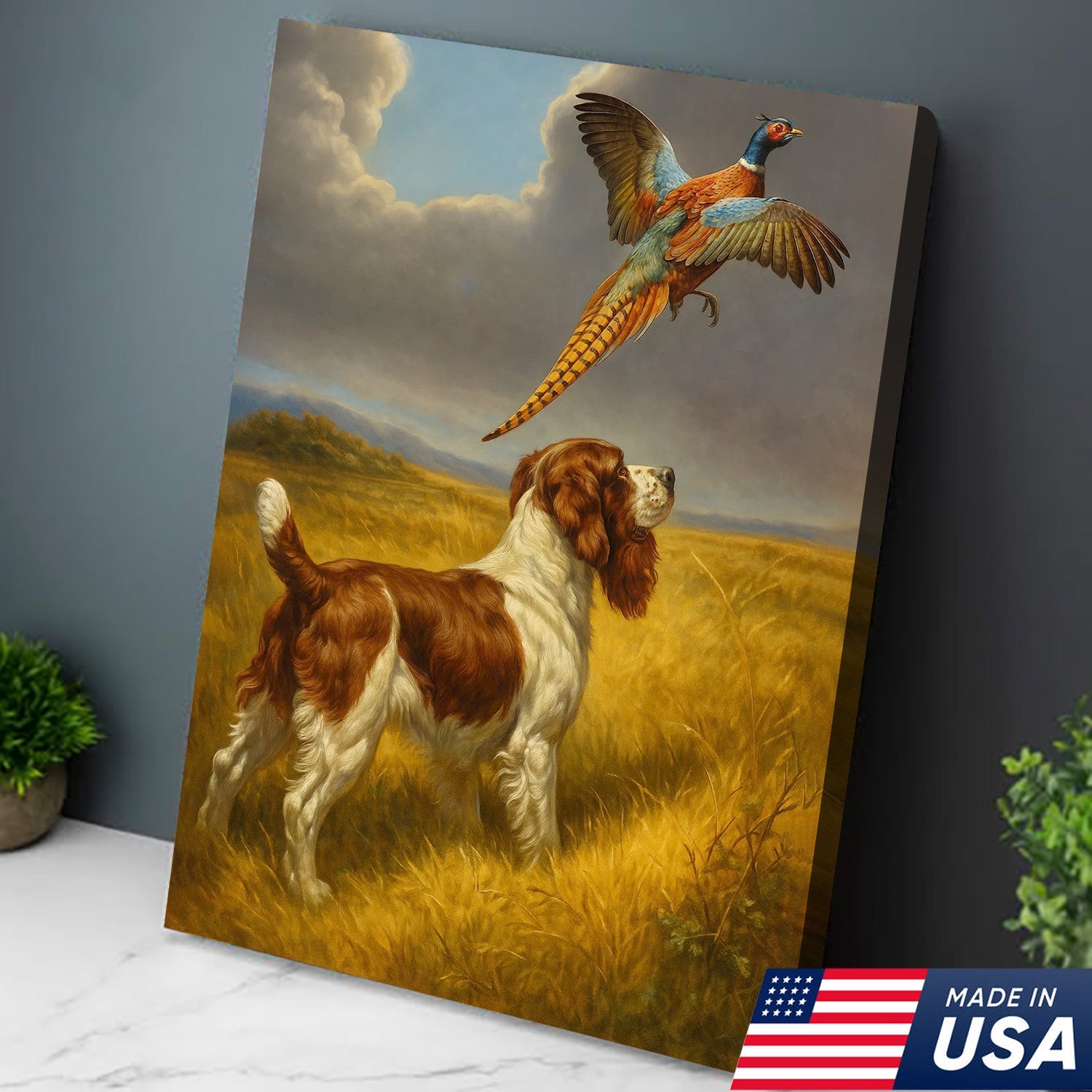 Hunting Dog and Pheasant Canvas Wall Art – Rustic Wildlife Scene – Lodge and Cabin Decor