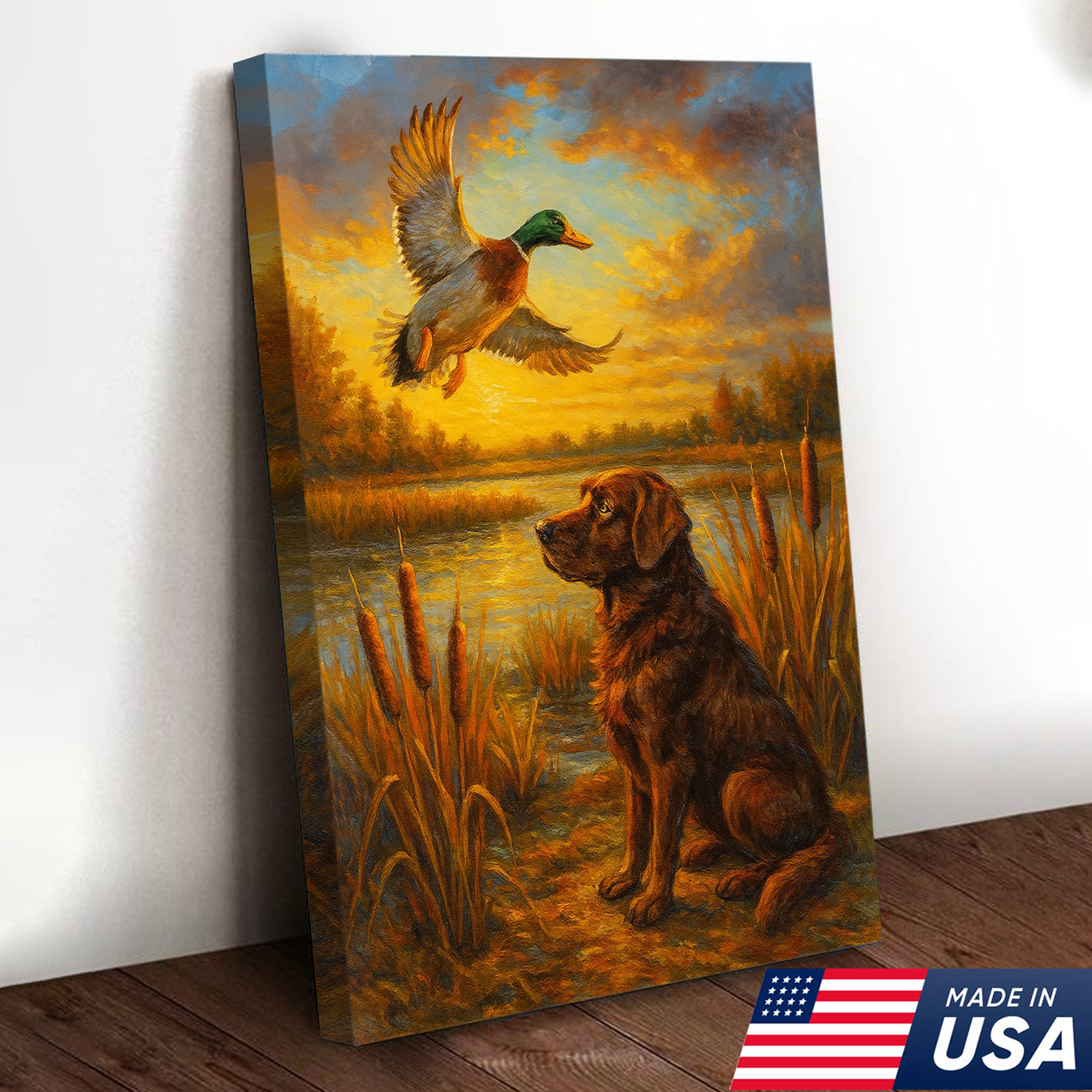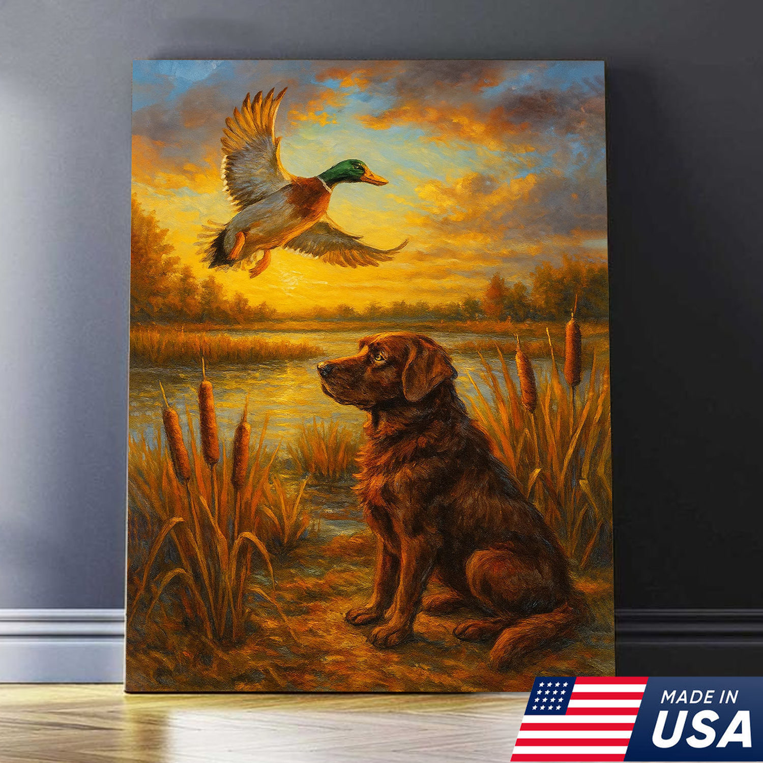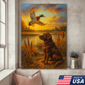 Hunting Dog & Mallard Canvas Wall Art – Rustic Wildlife Painting Made in USA