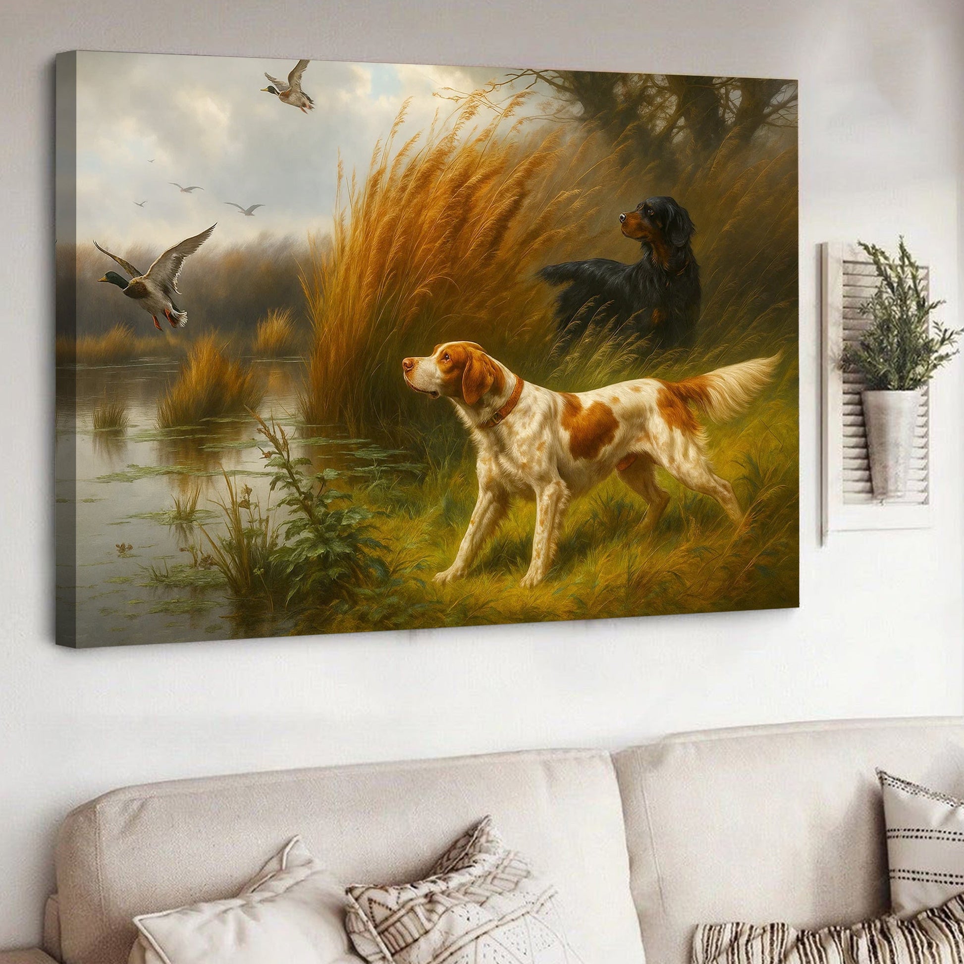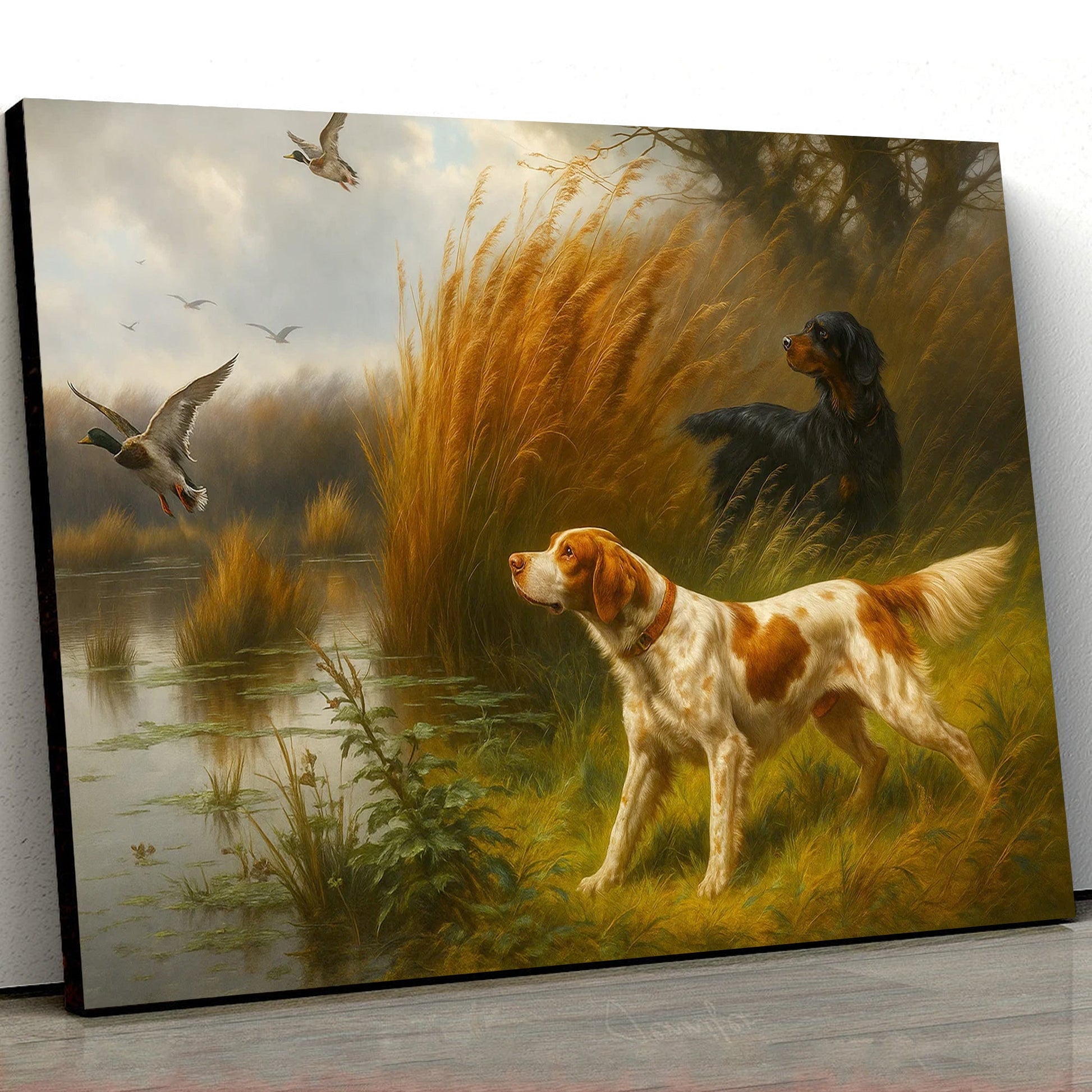 Hunting Dogs and Mallards Canvas Wall Art – Rustic Wildlife Scene – Perfect Lodge or Cabin Decor