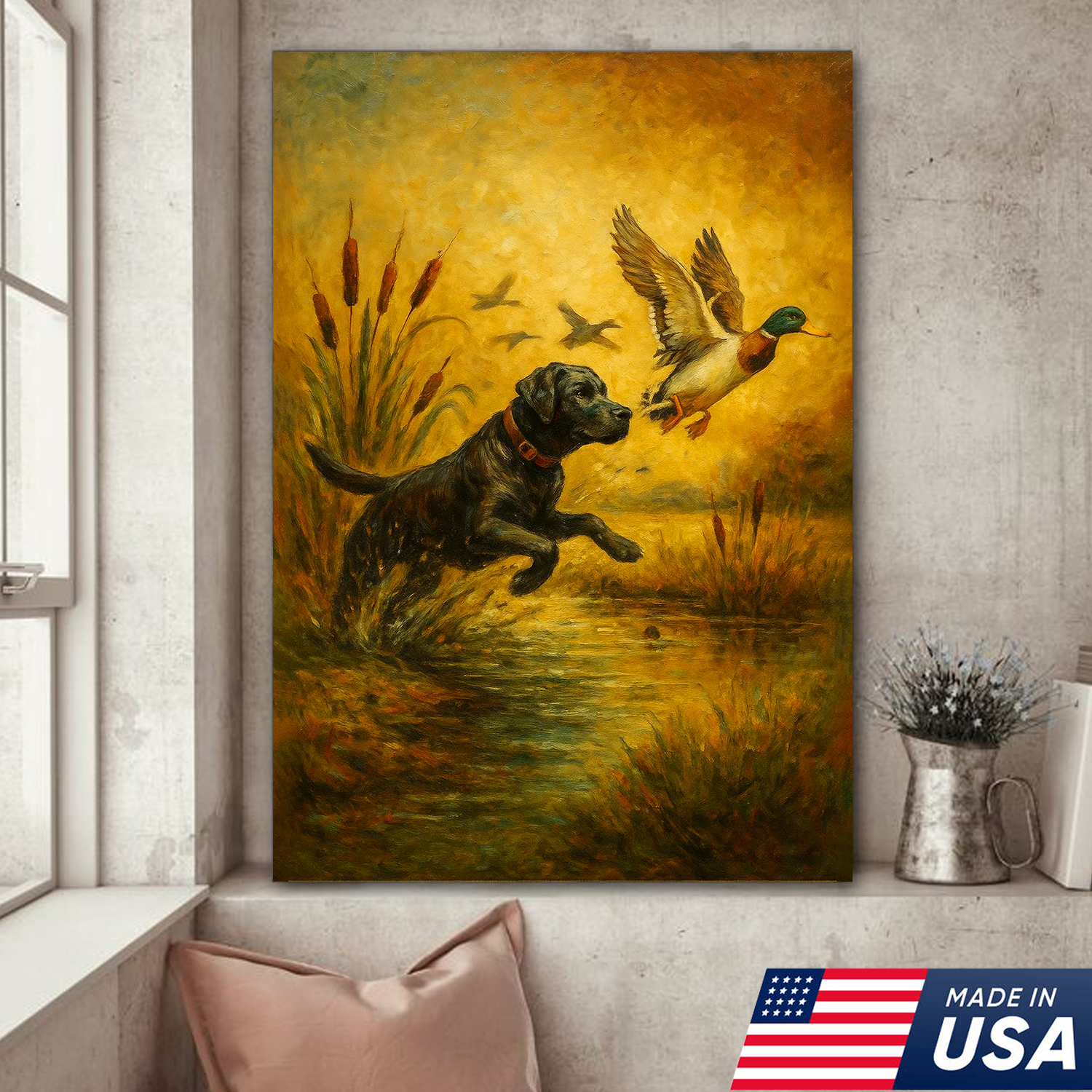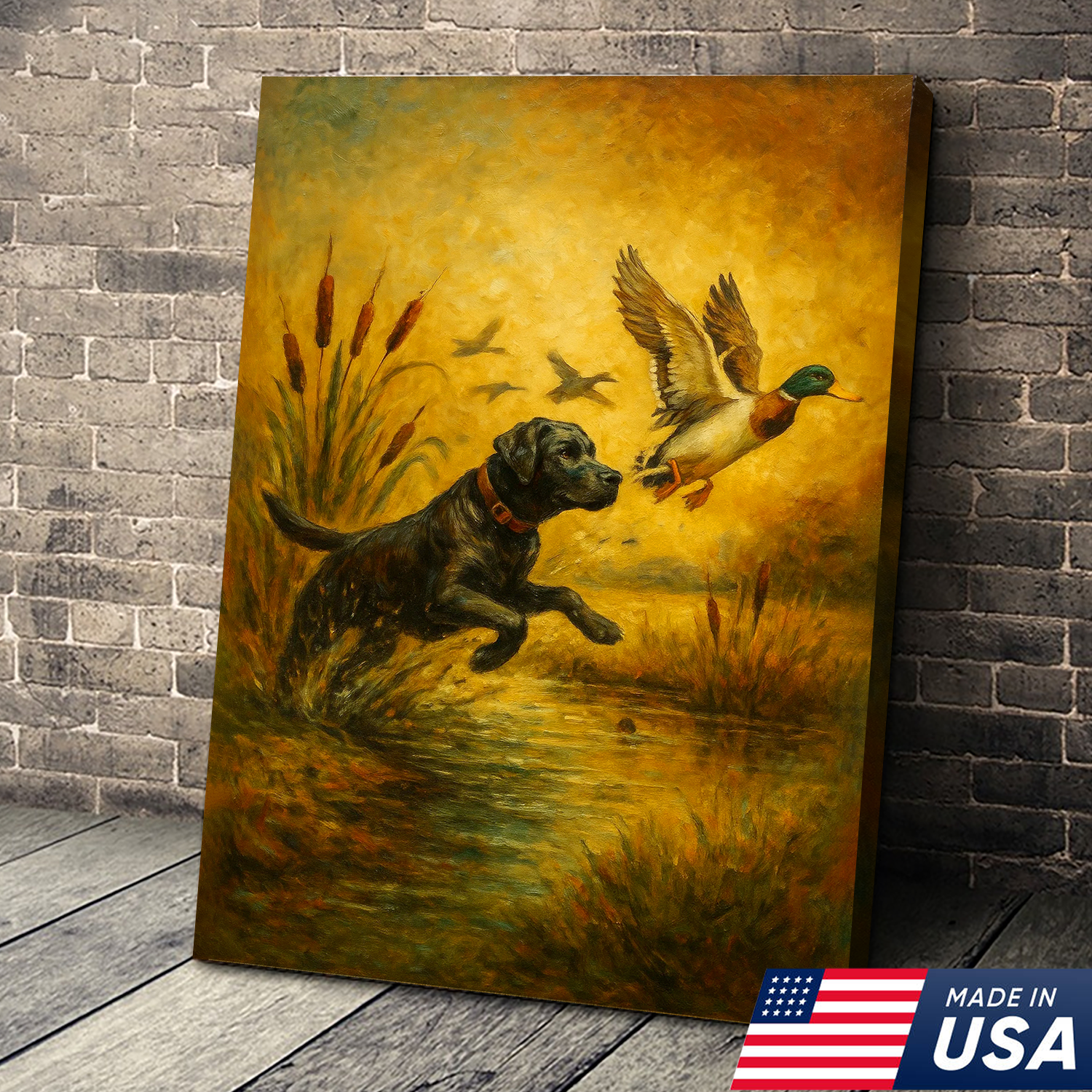 Hunting Labrador Retriever Dog And Duck Canvas Wall Art, Perfect Gift for Hunters & Dog Lovers