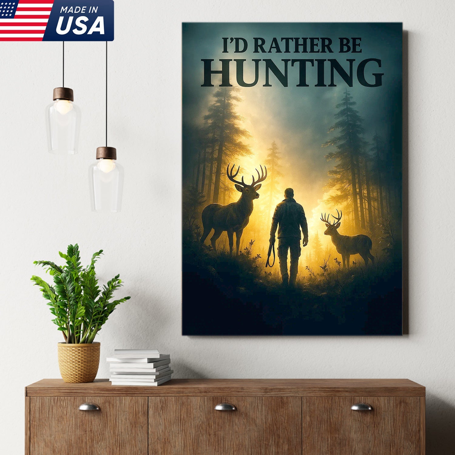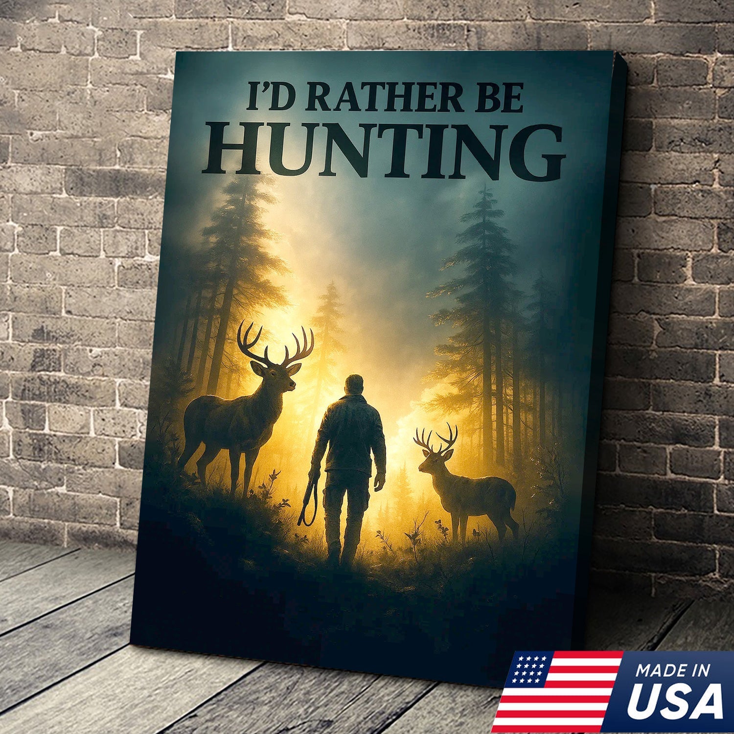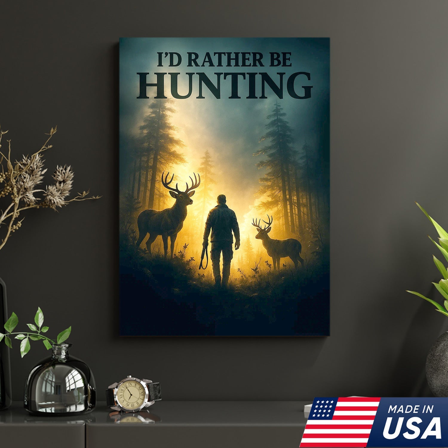 I'd Rather Be Hunting Canvas Wall Art – Rustic Deer and Hunter Scene – Cabin Lodge Outdoor Decor