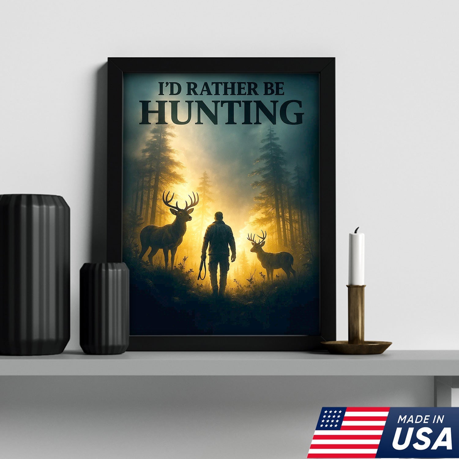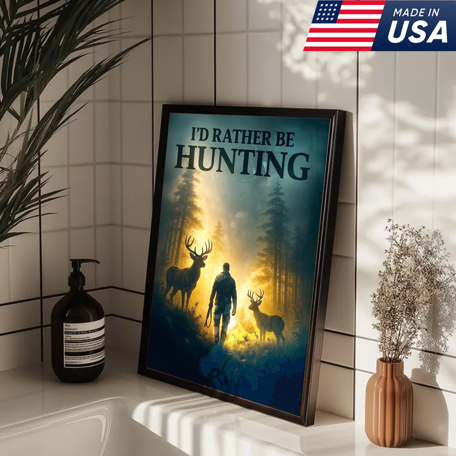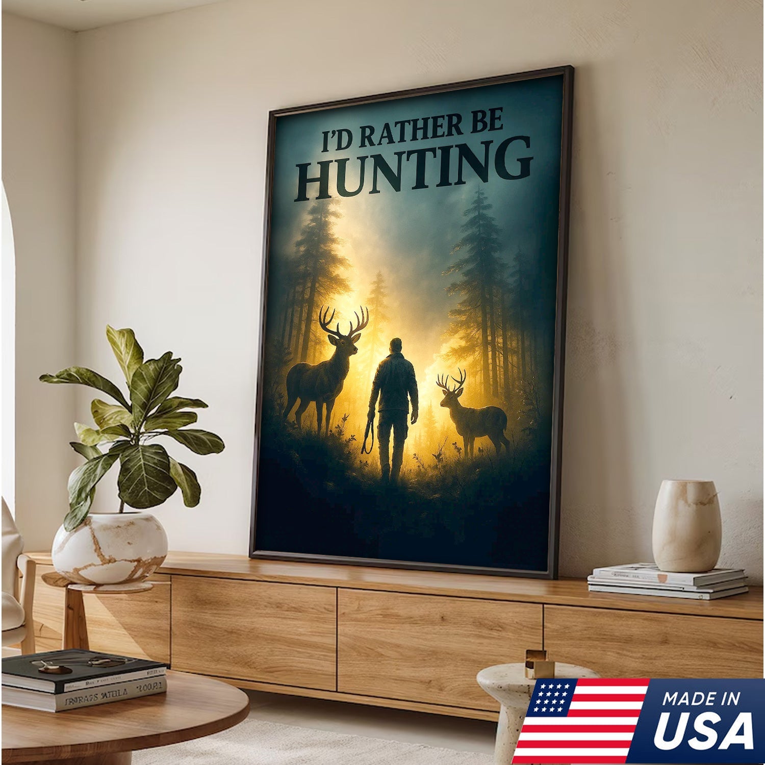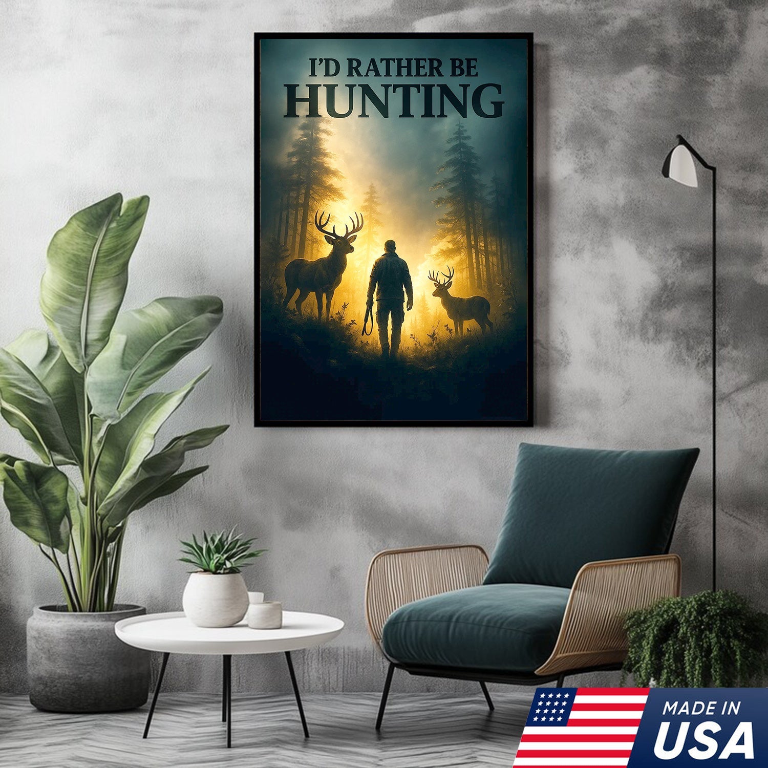 I'd Rather Be Hunting Canvas Wall Art – Rustic Deer and Hunter Scene – Cabin Lodge Outdoor Decor
